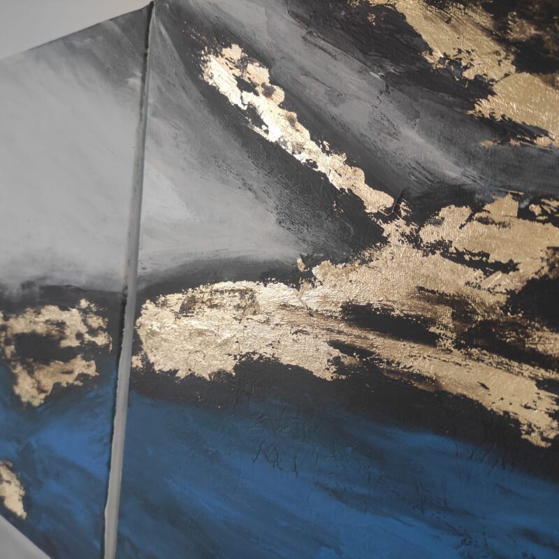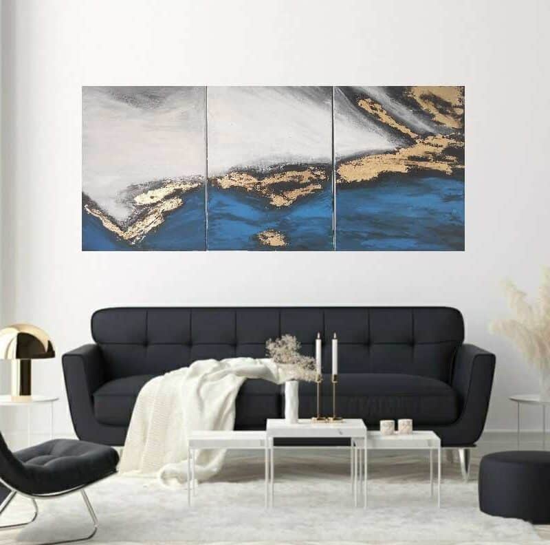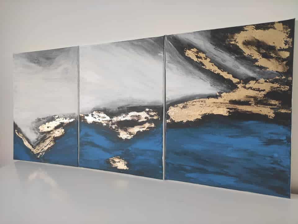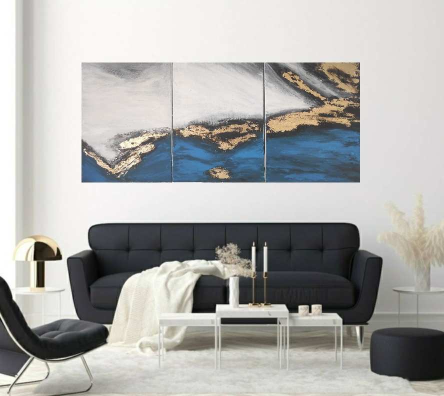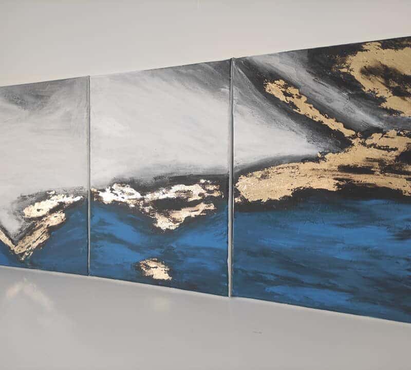 Oryginalny obraz triptych z bogatą teksturą i złotem 'Nowoczesna abstrakcja’ – na zamówienie w każdym rozmiarze