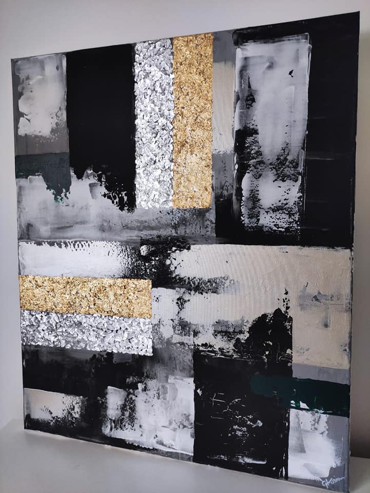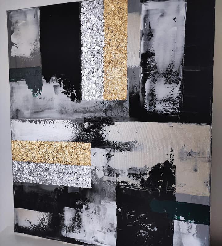 🌿Medium: Farby akrylowe/olejne, złoty i srebrny sztagmetal