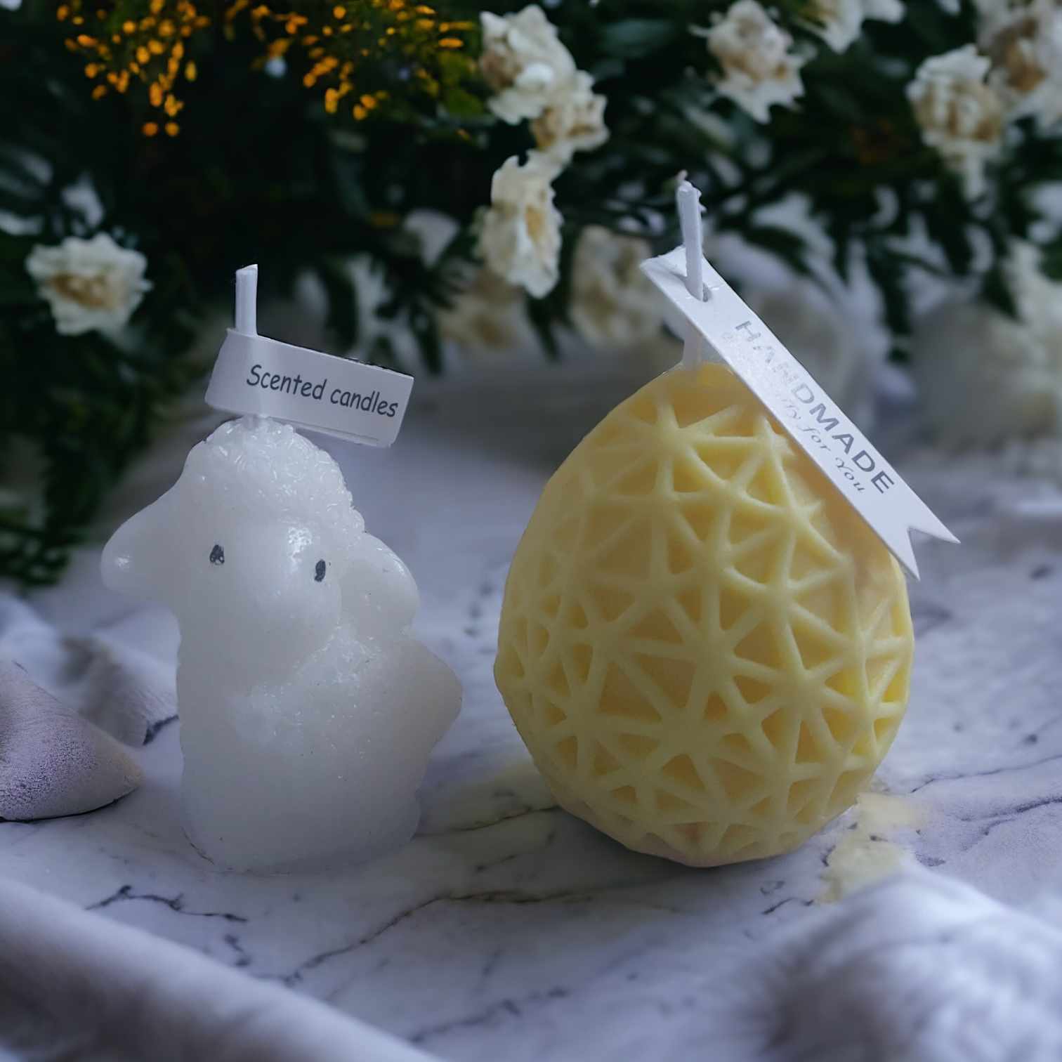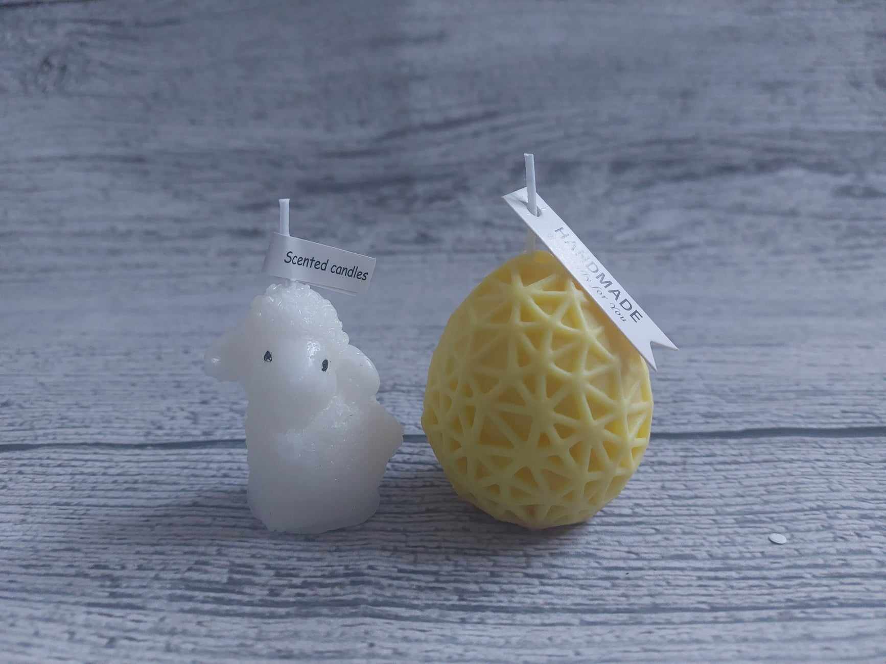🌿Soy Wax Organic Scented Candle in  Egg shape 5cm height and white candle sheep -5cm height