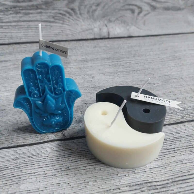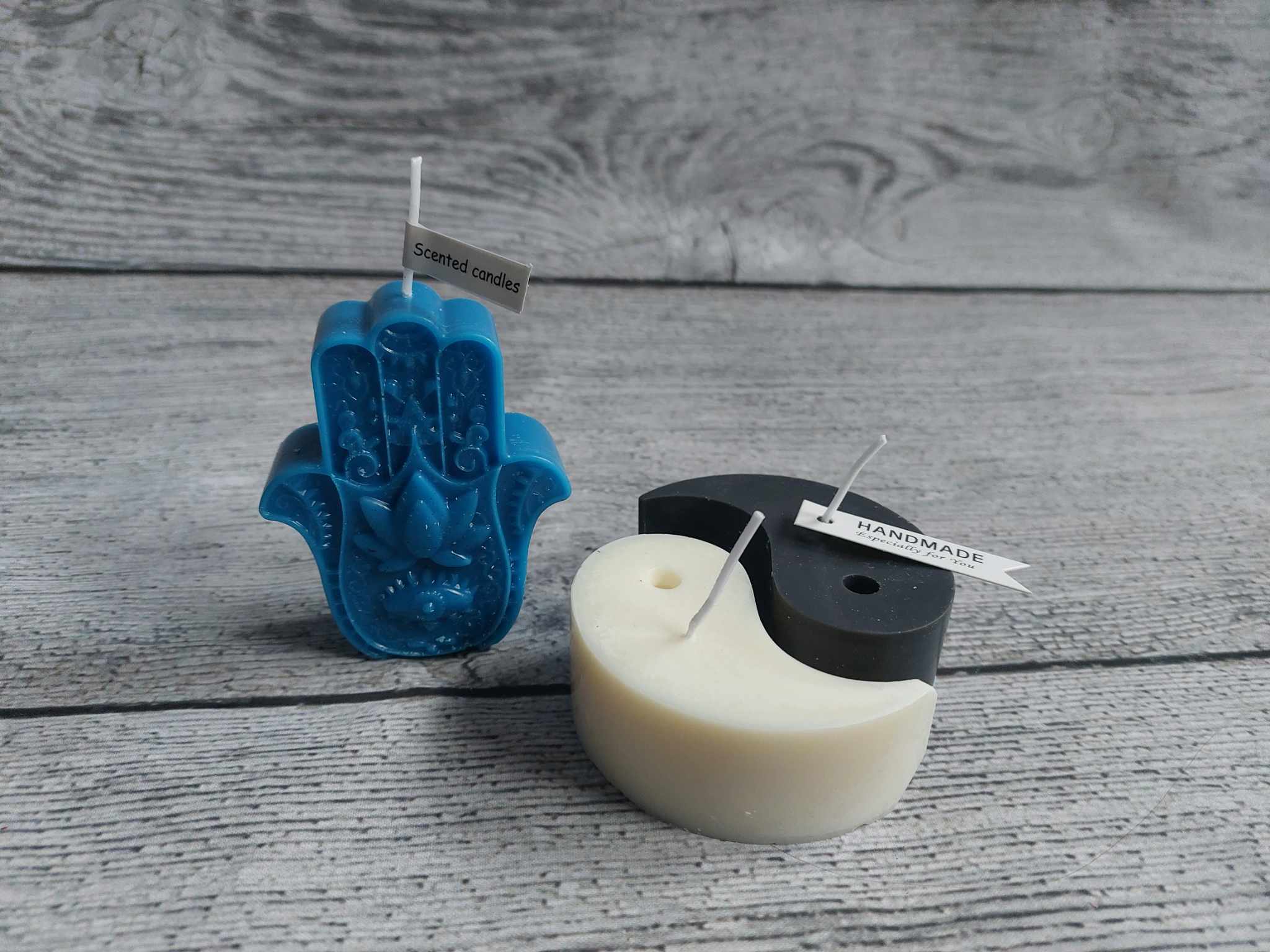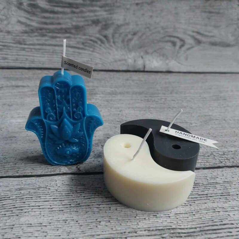 🌿Include 2 eco soy wax candles _ TAI CHI YIN YANG set 2 x 5x5x10cm and peace hand 10cm height height safe to burn