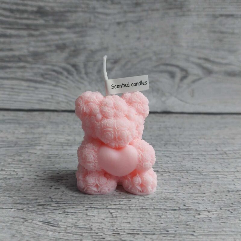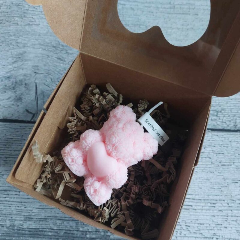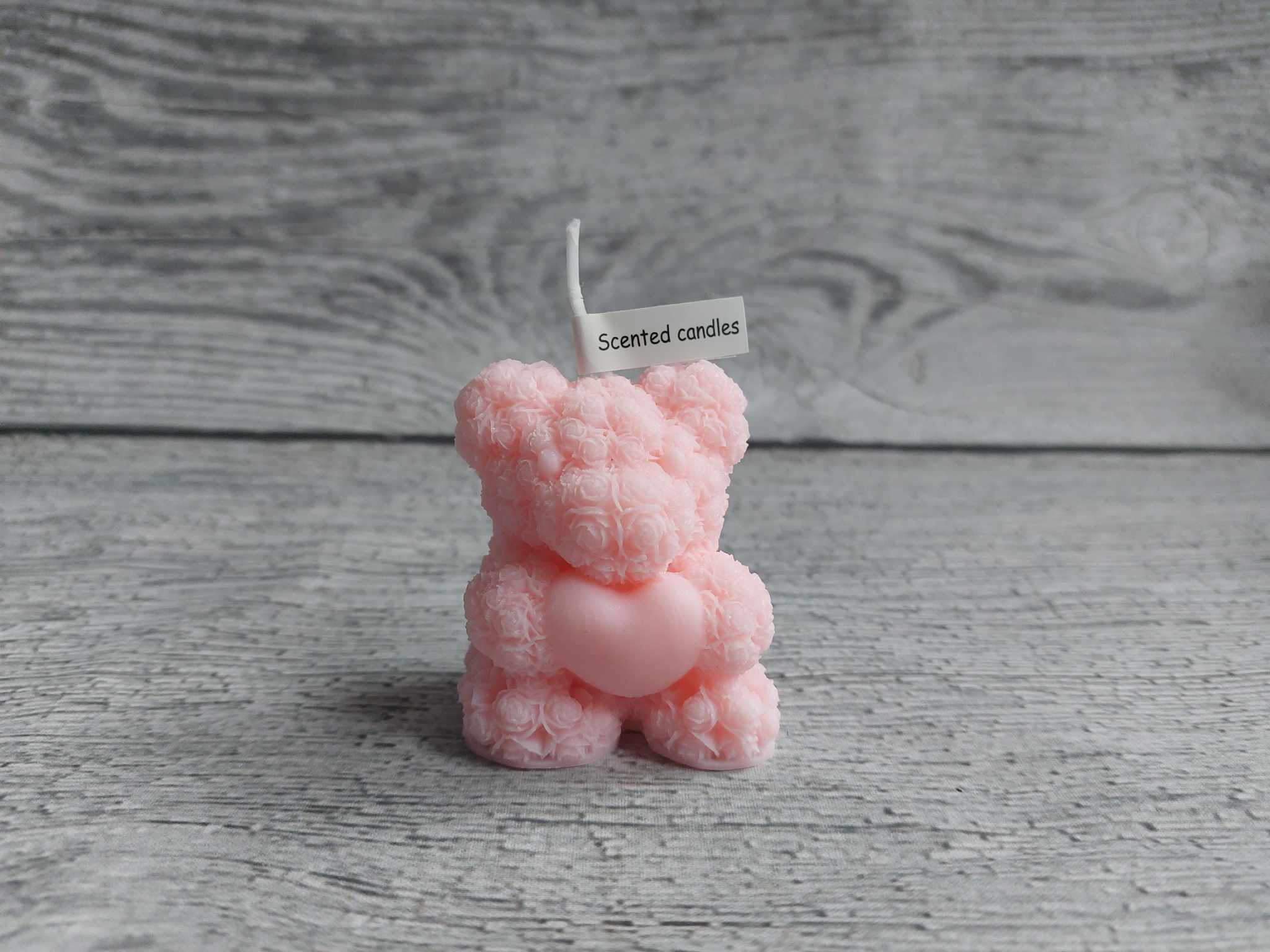 🌿 eco soy wax candle _ bear 10cm height scented with flowers ( rose, peony, bergamot, freesia). safe to burn