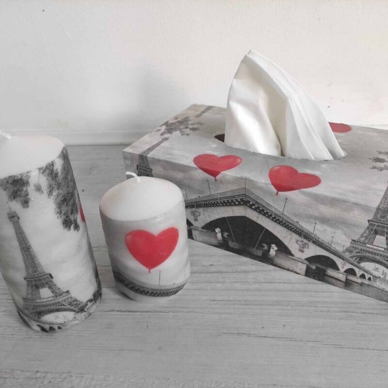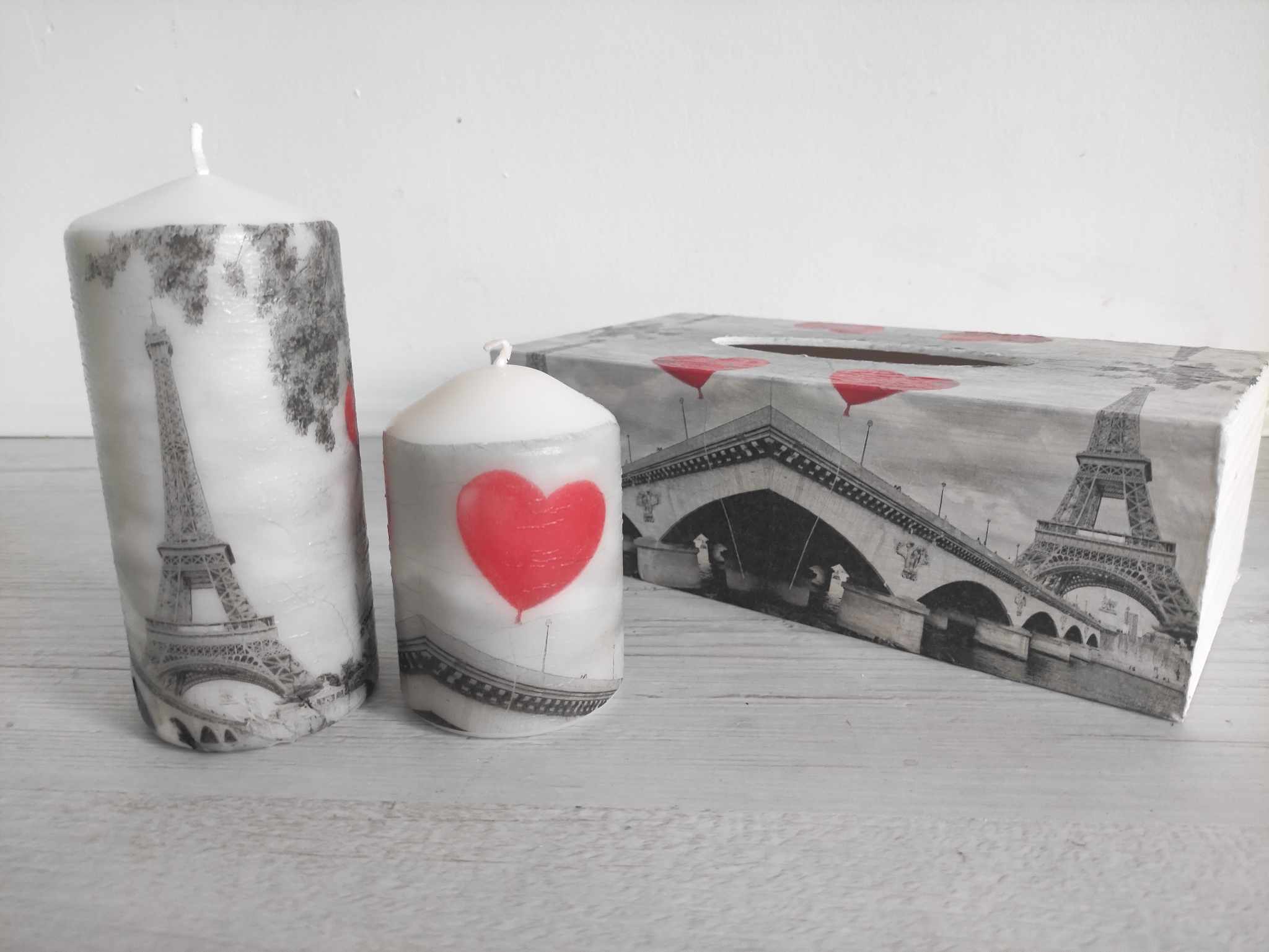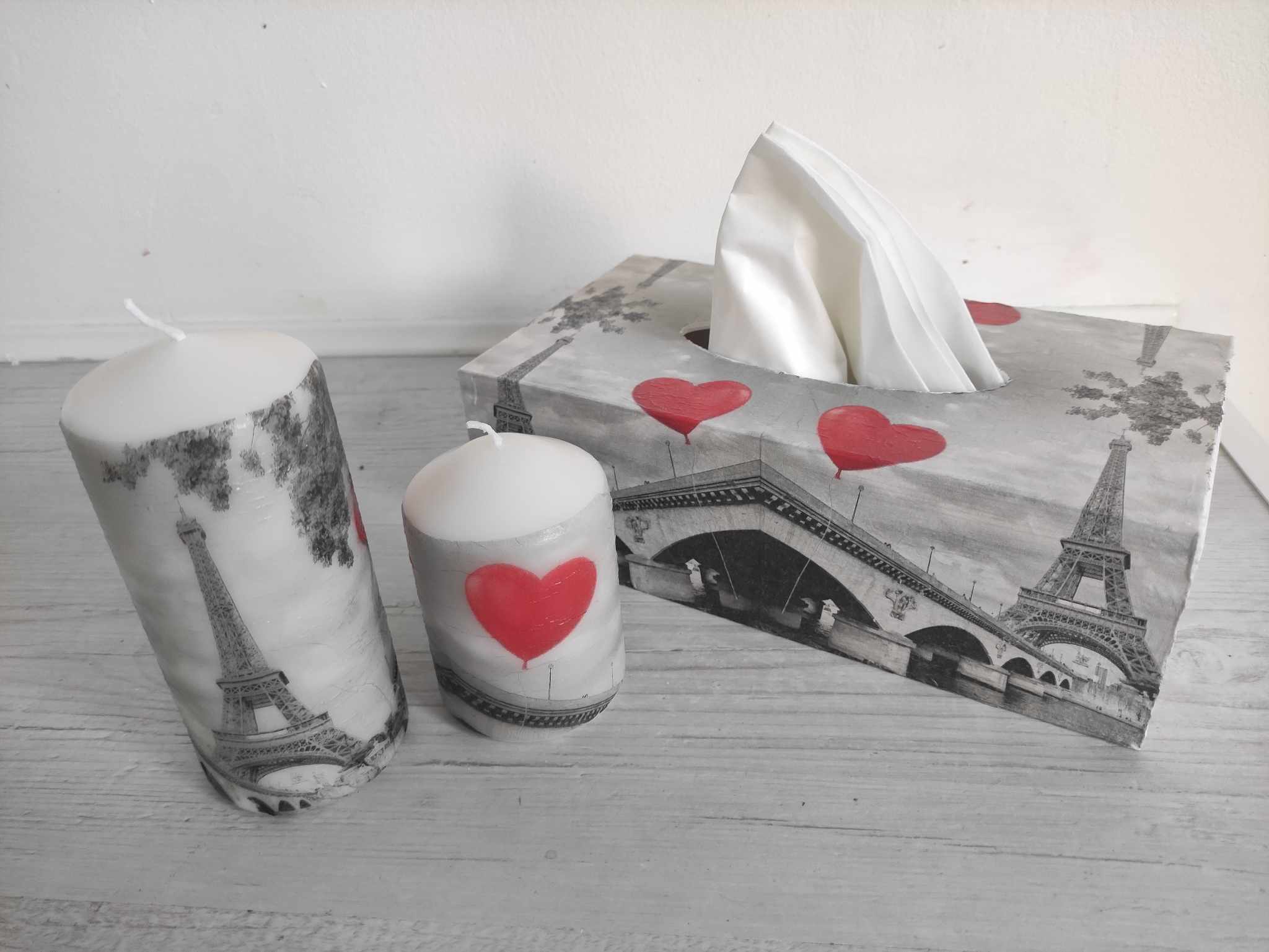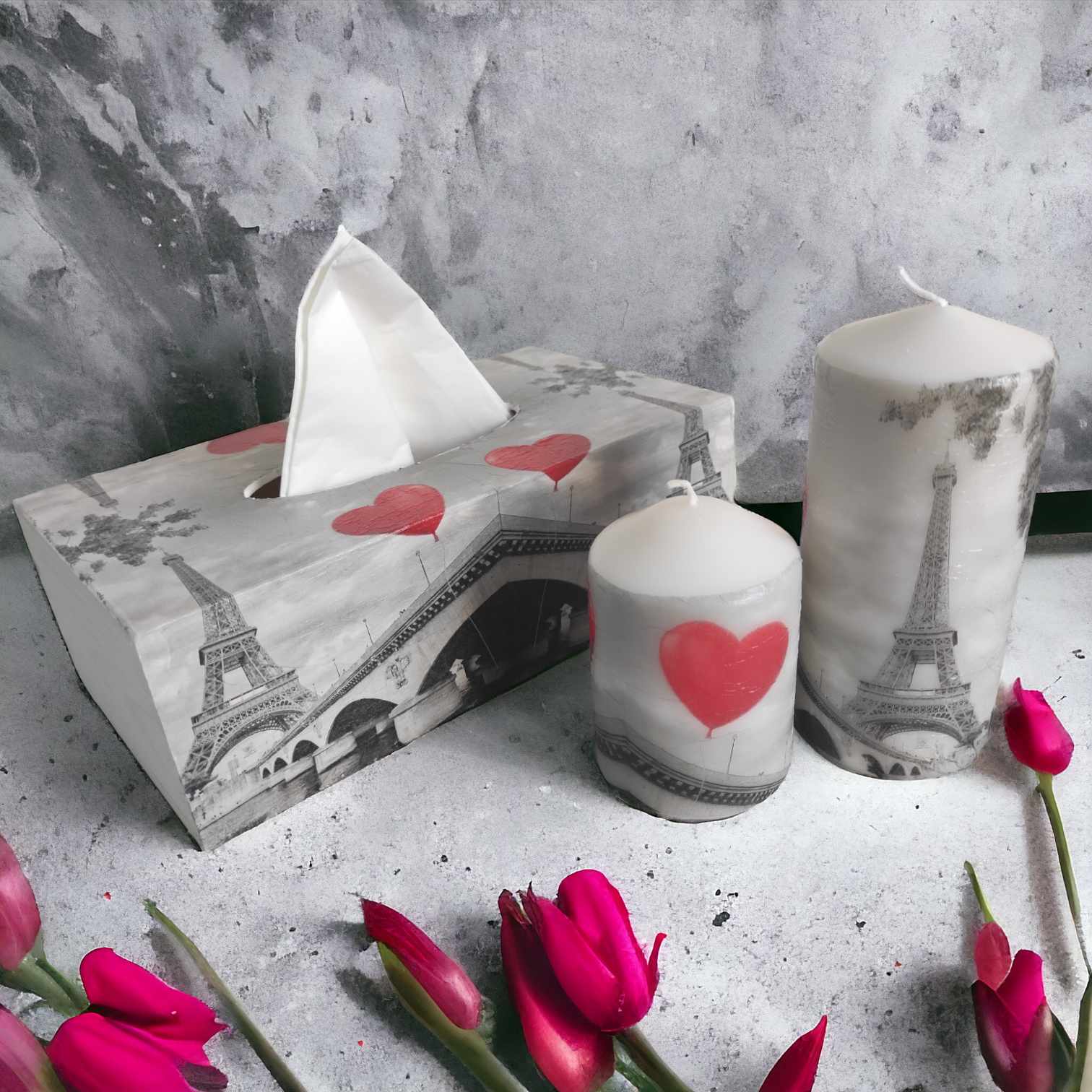 🌿Eiffel Tower Paris wooden tissue box & candles gift set