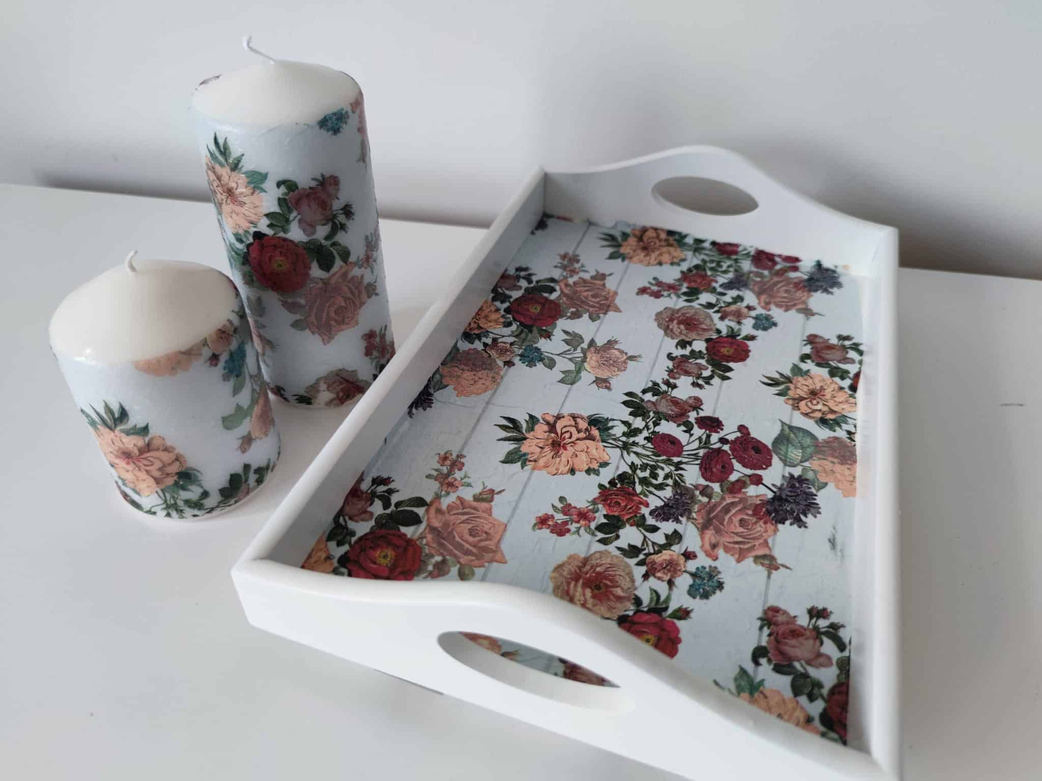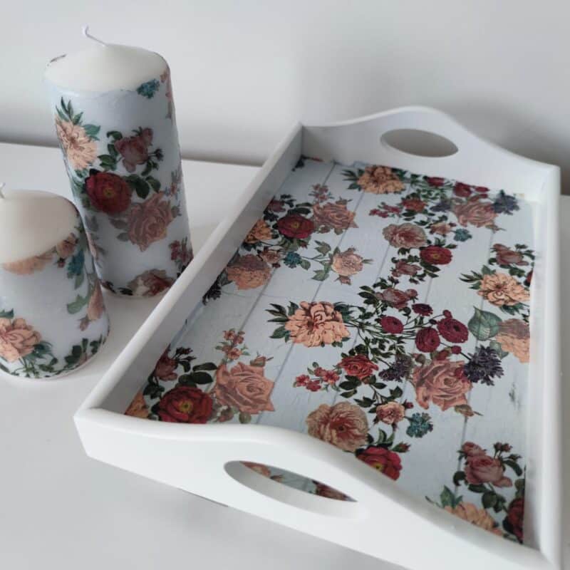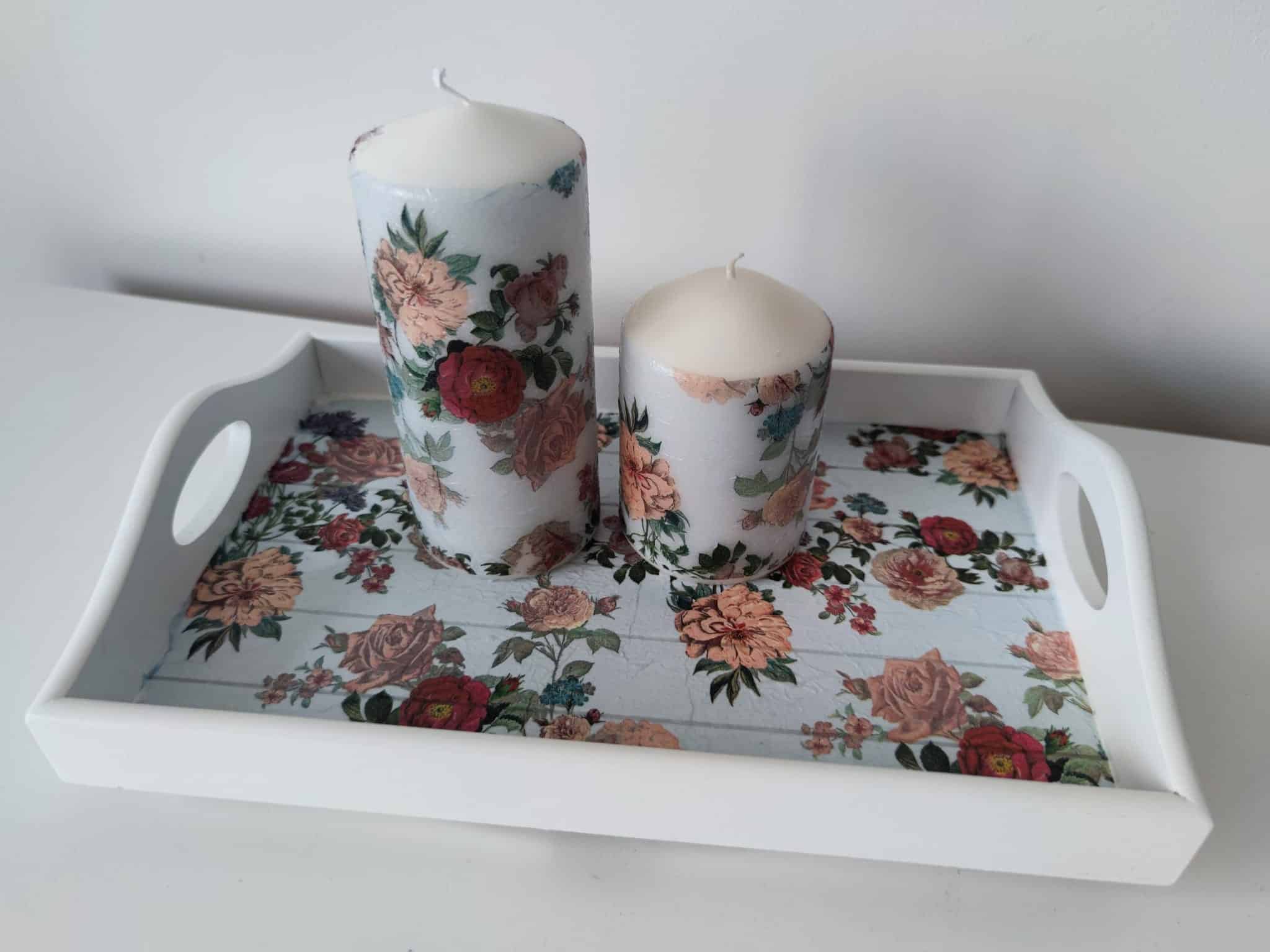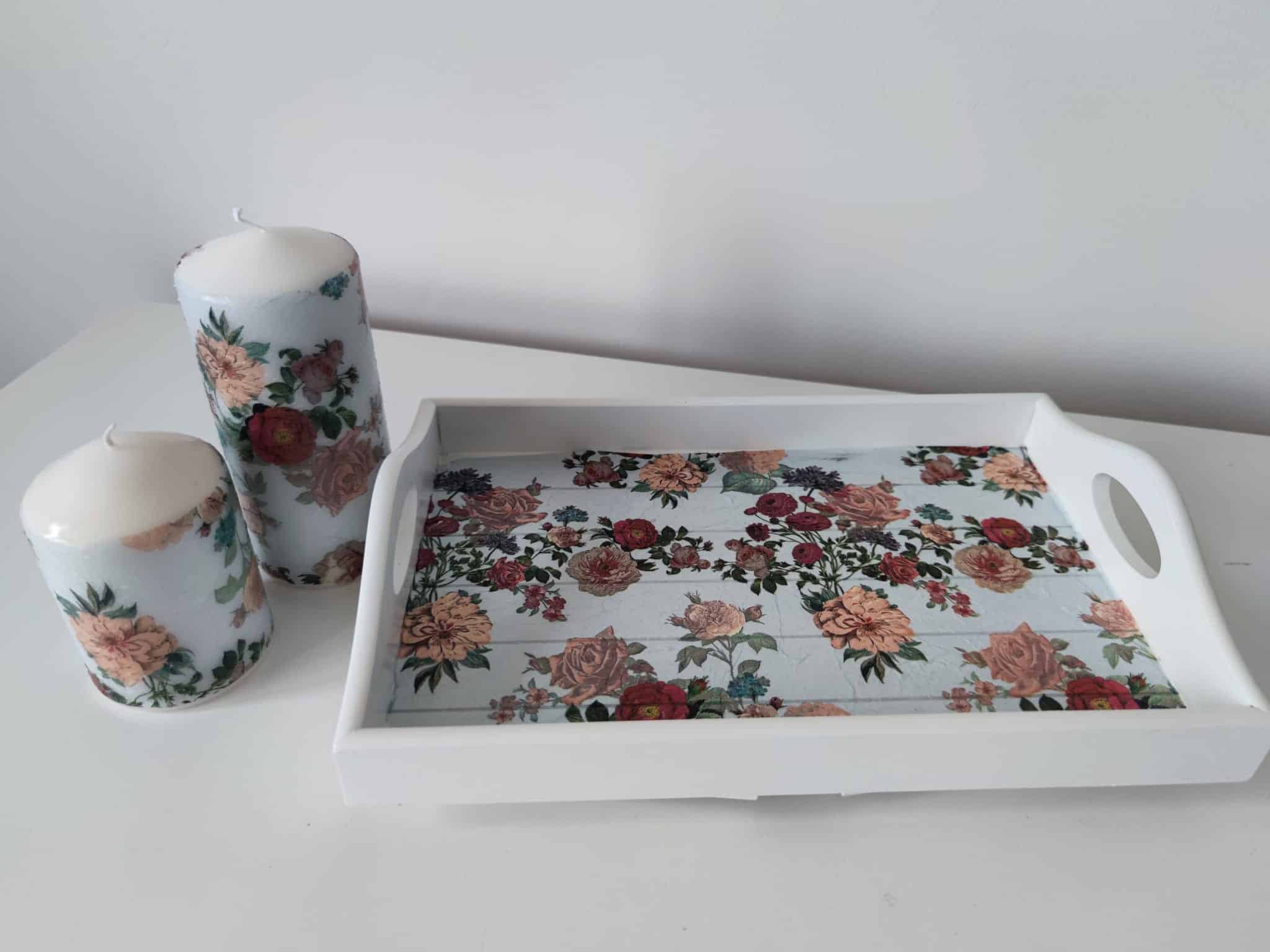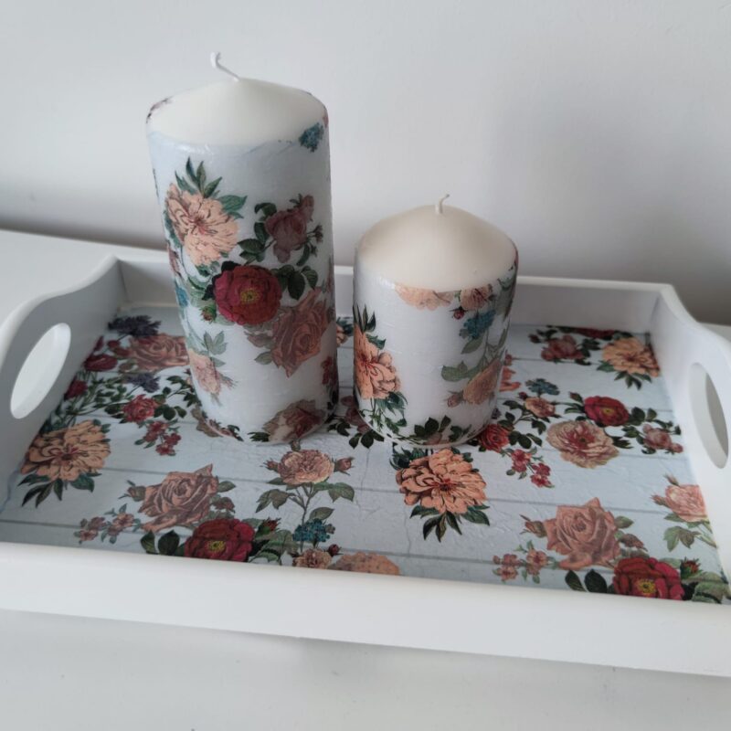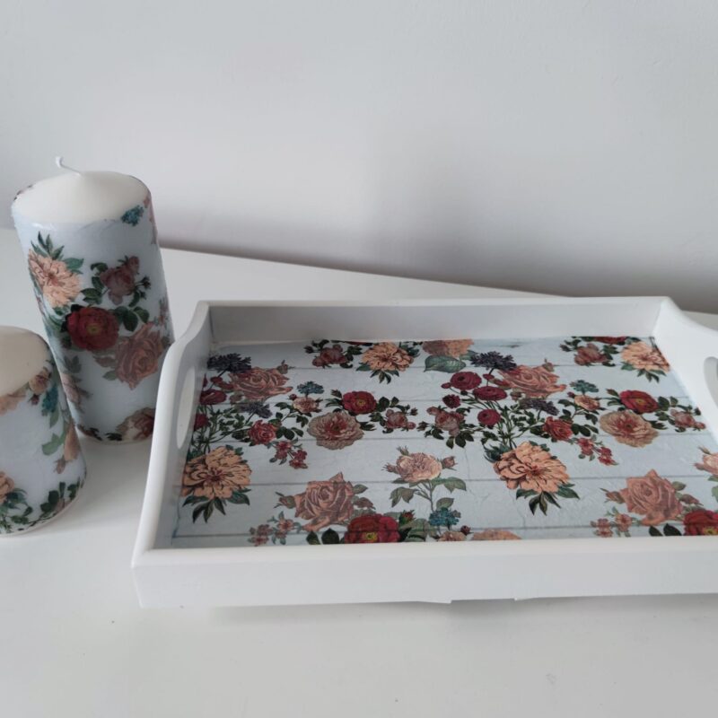 🌿Floral lovely wooden tray & candles gift set