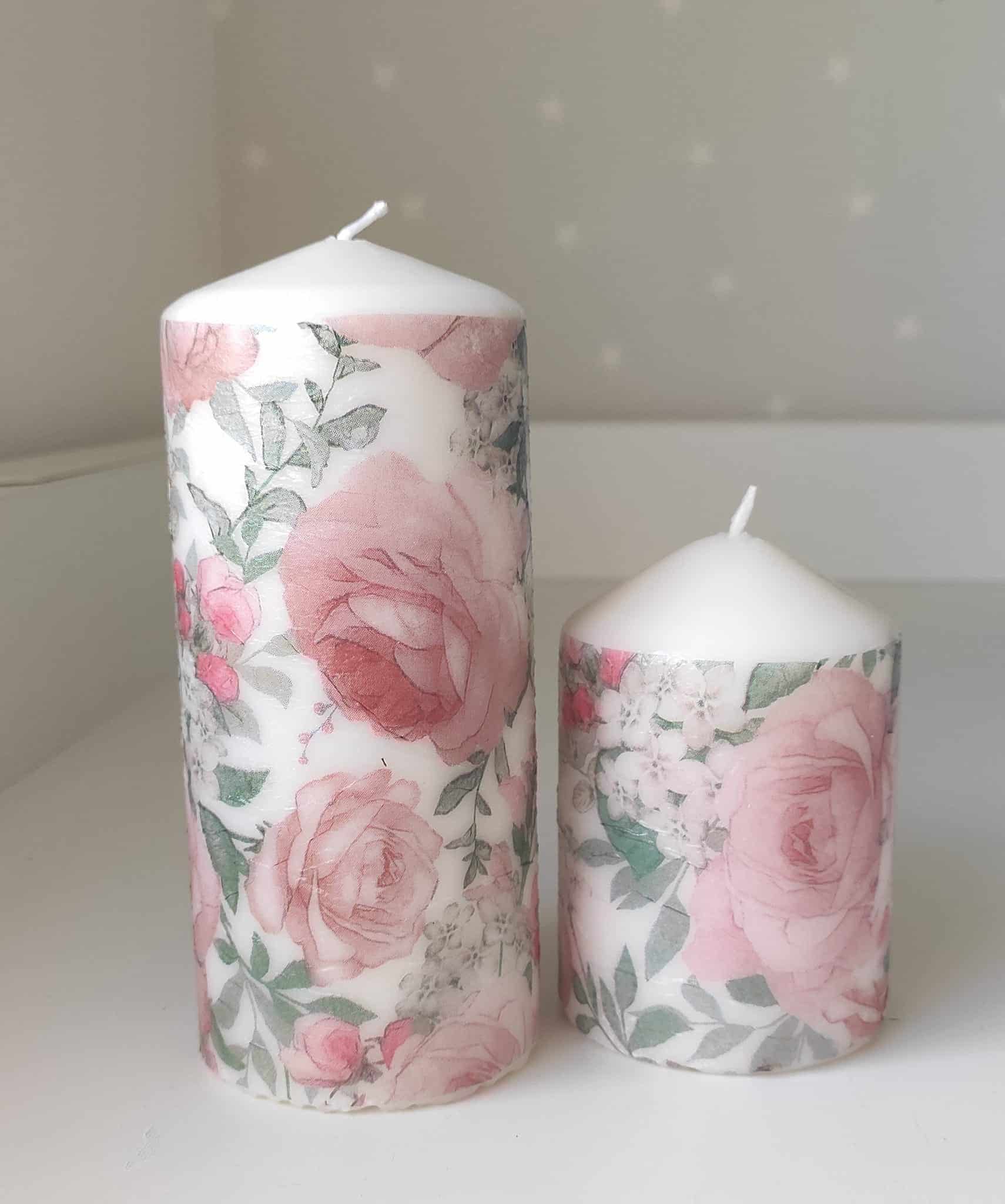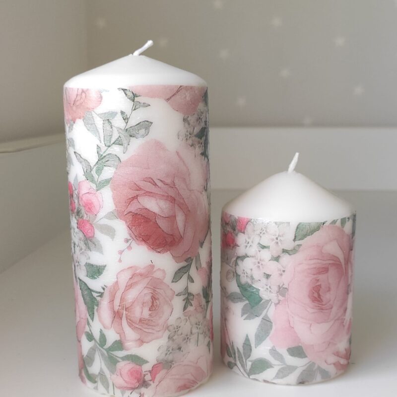 Candle: Large -15cm height X 8cm diameter, small- 10 cm height X 8 cm diameter. Candles are safe to burn