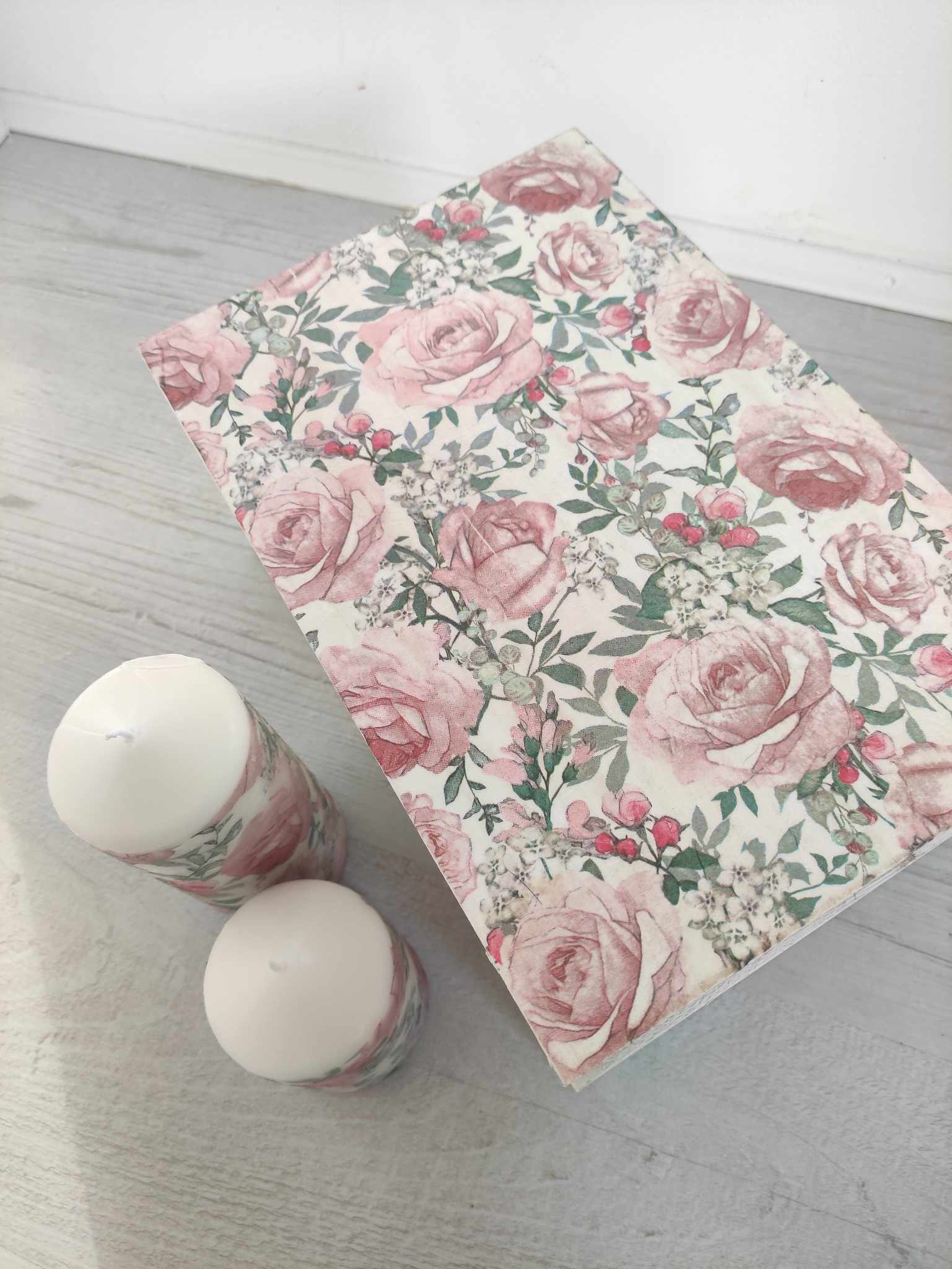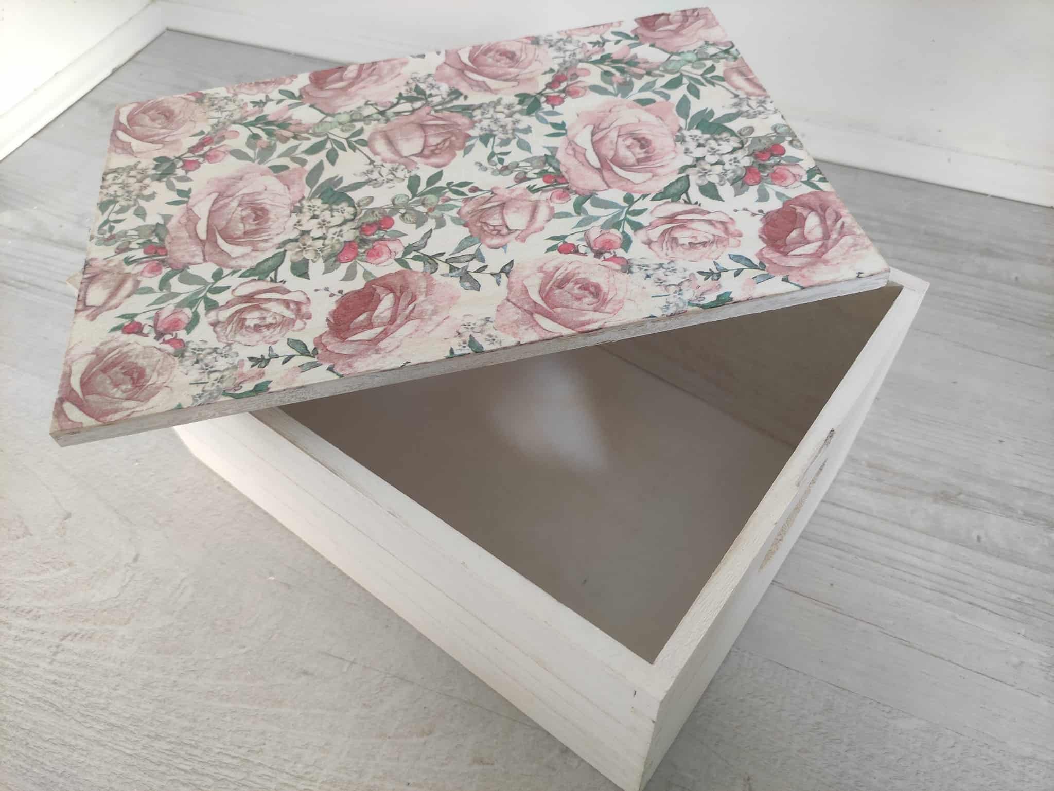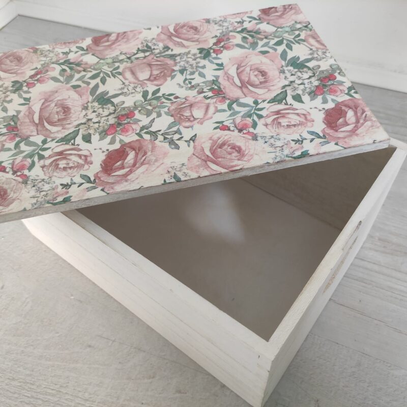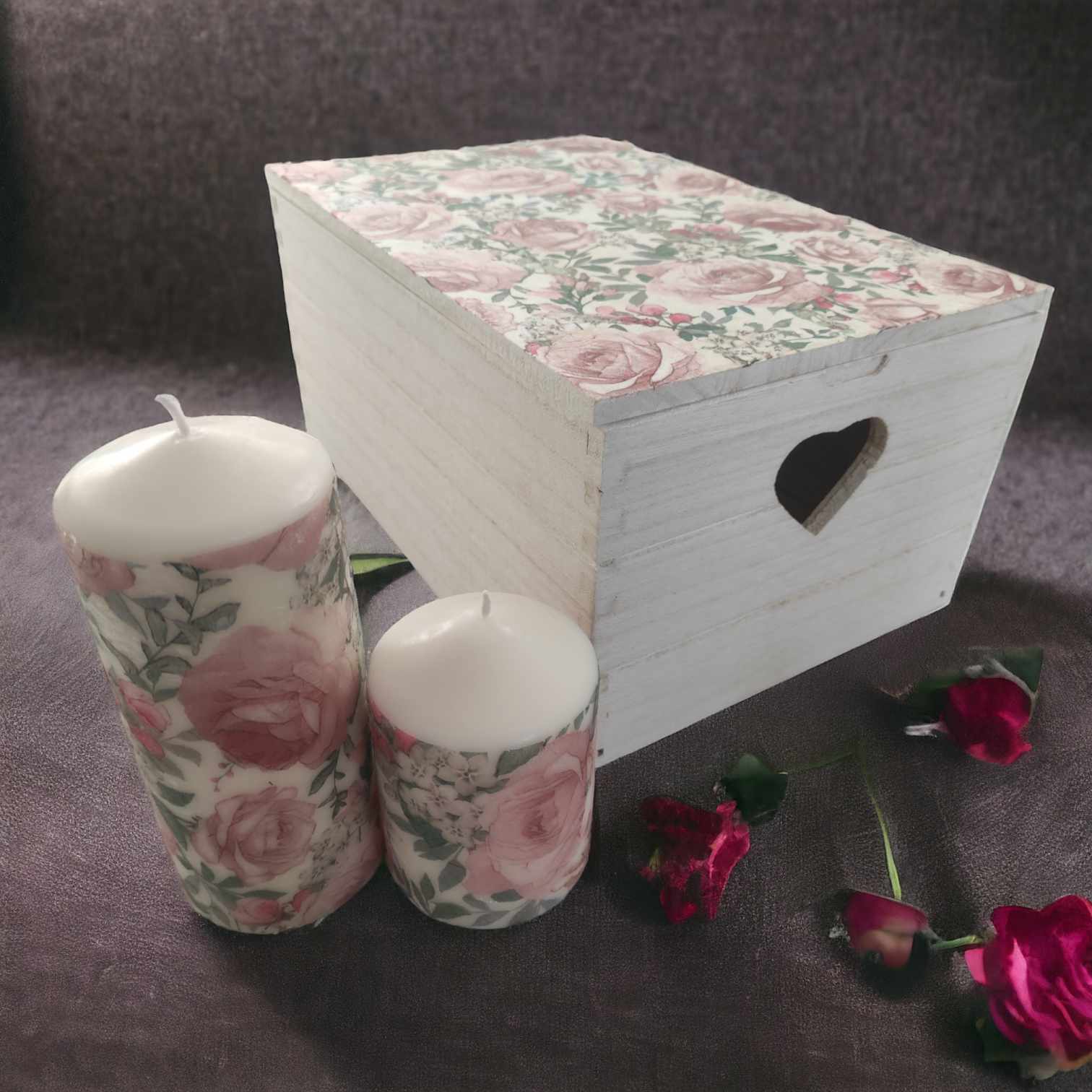 🌿Floral roses large wooden storage box-keepsake & candles gift set