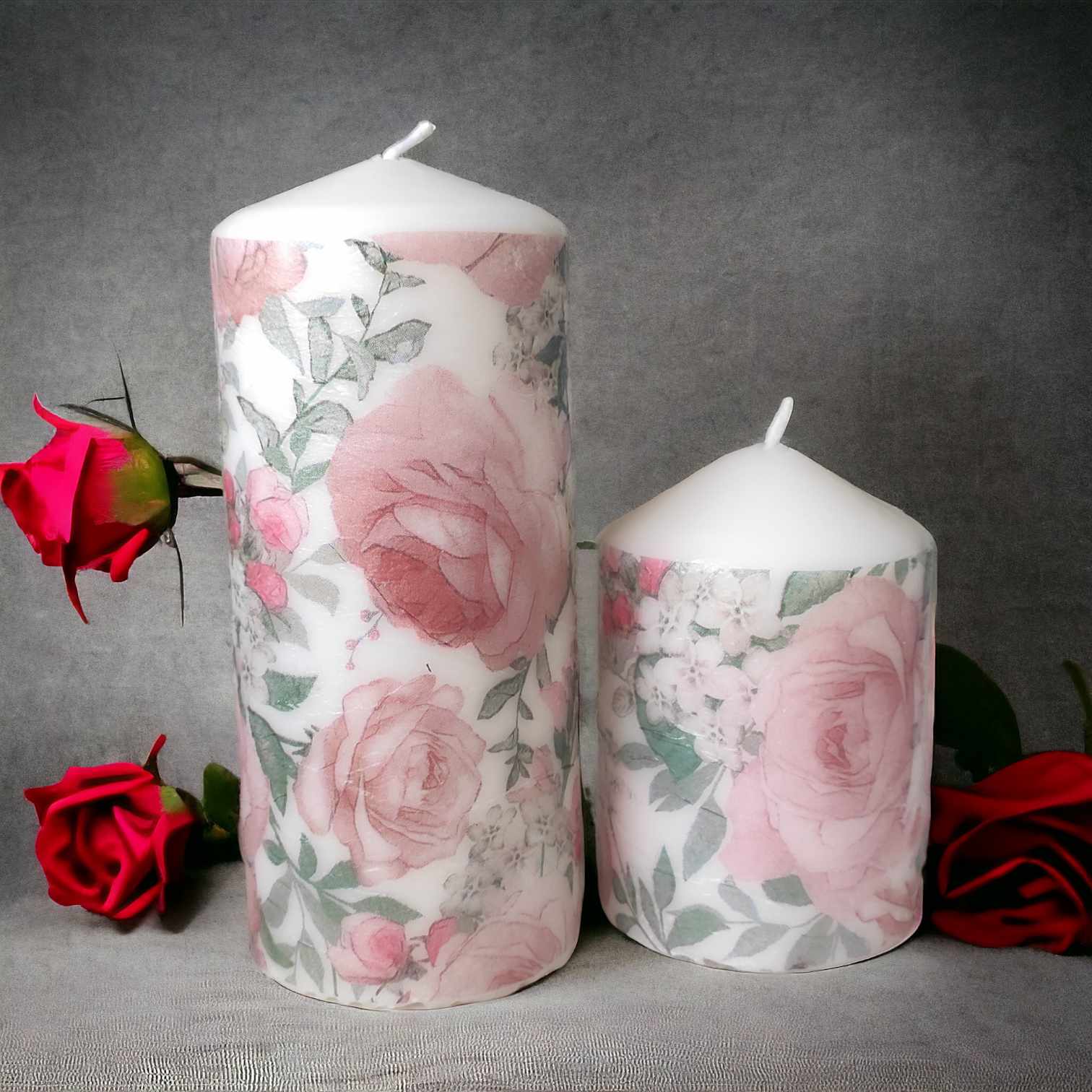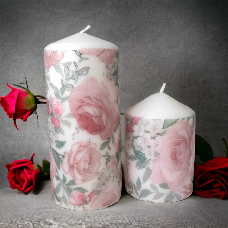 Candle: Large -15cm height X 8cm diameter, small- 10 cm height X 8 cm diameter. Candles are safe to burn