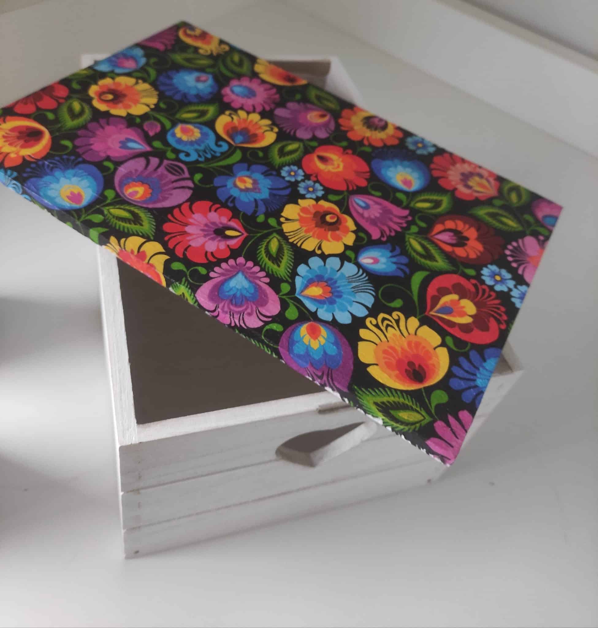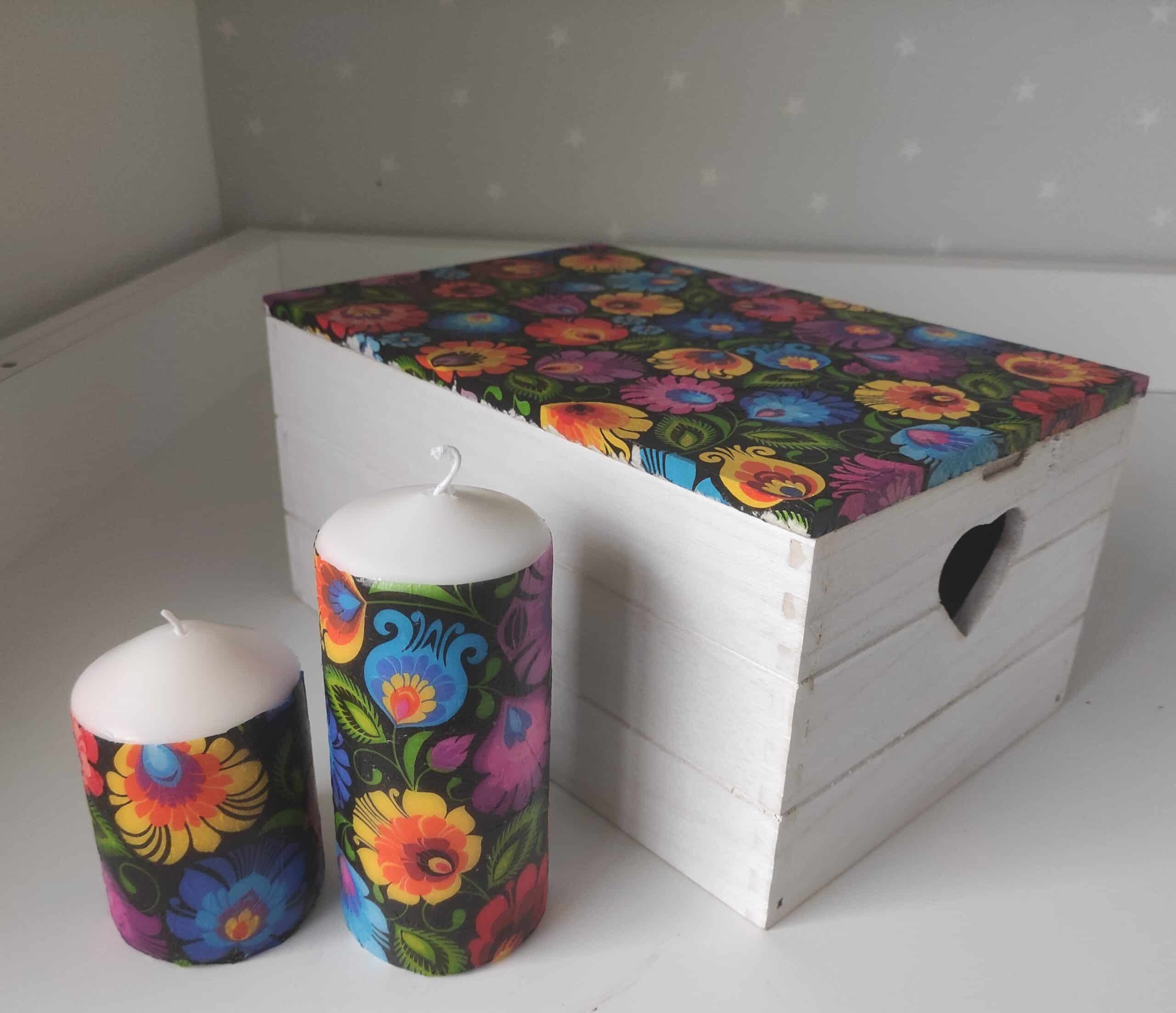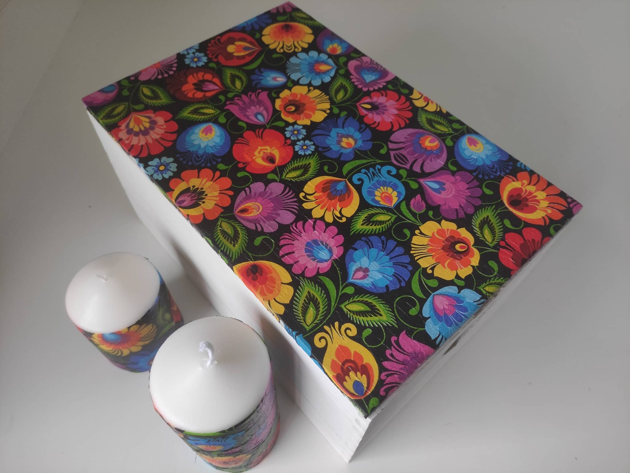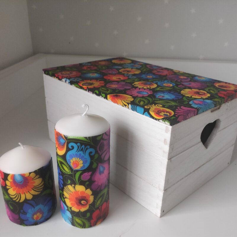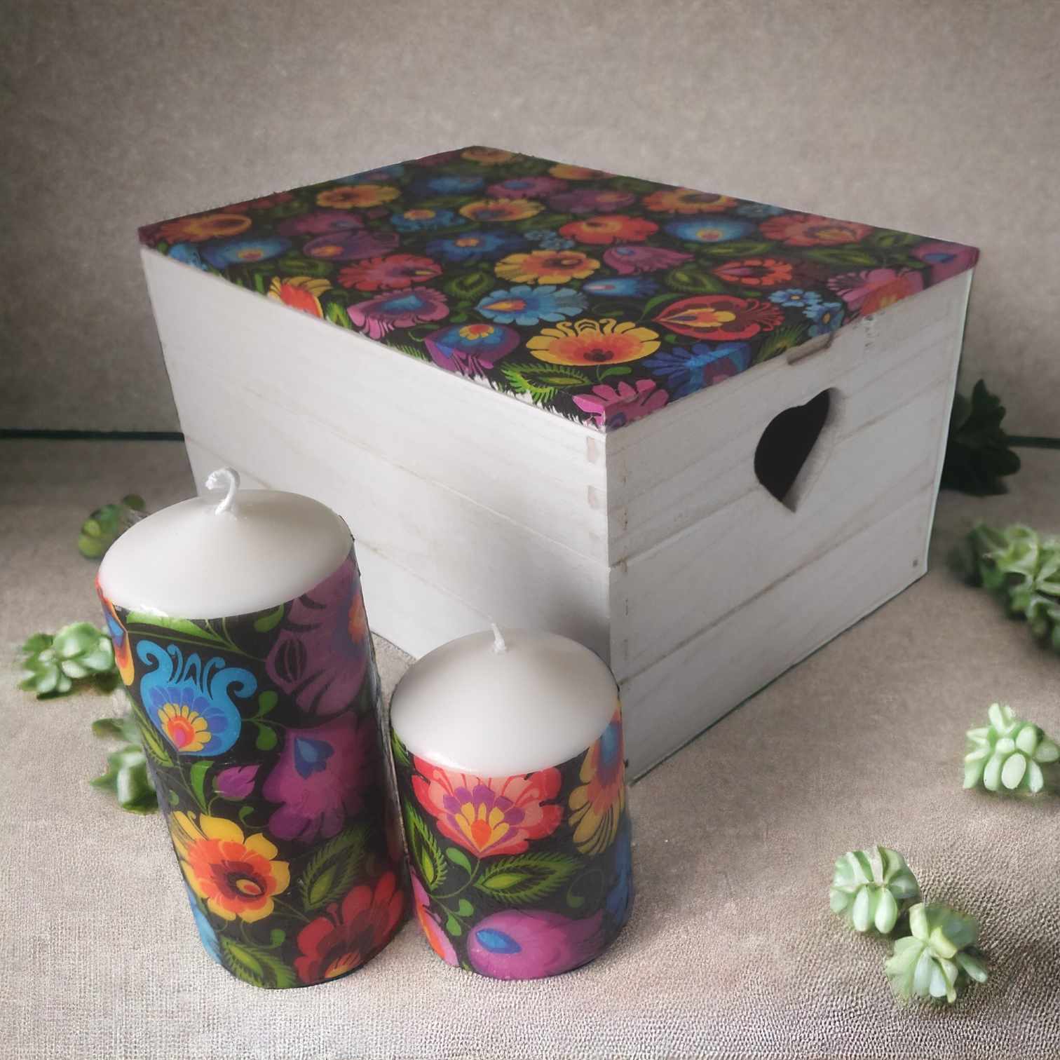 🌿Folk floral pattern colourful lovely large wooden storage box-keepsake & candles gift set