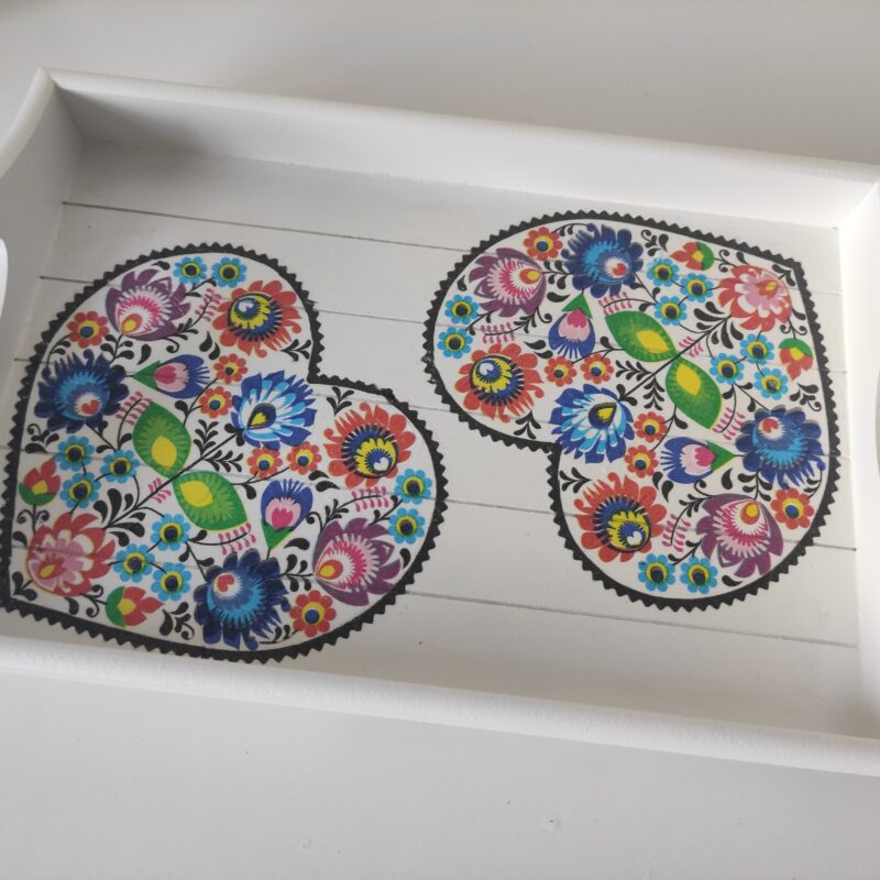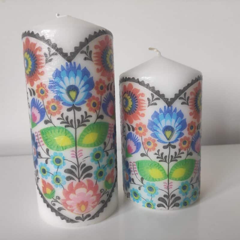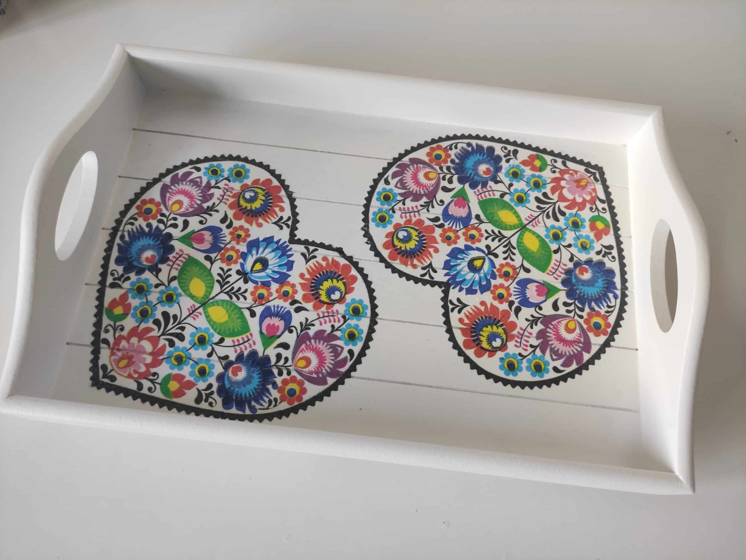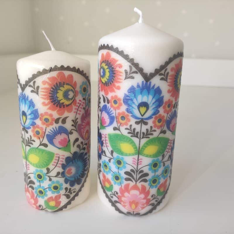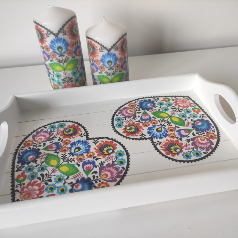 Folk floral lovely wooden tray & candles gift set