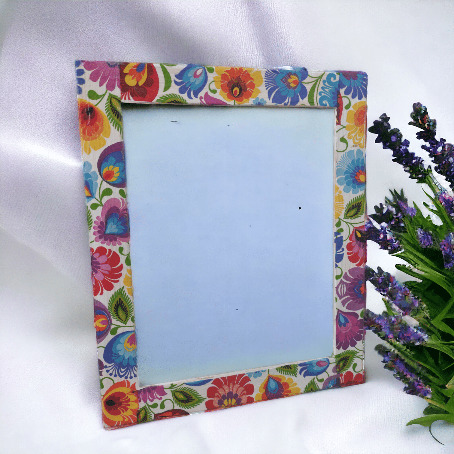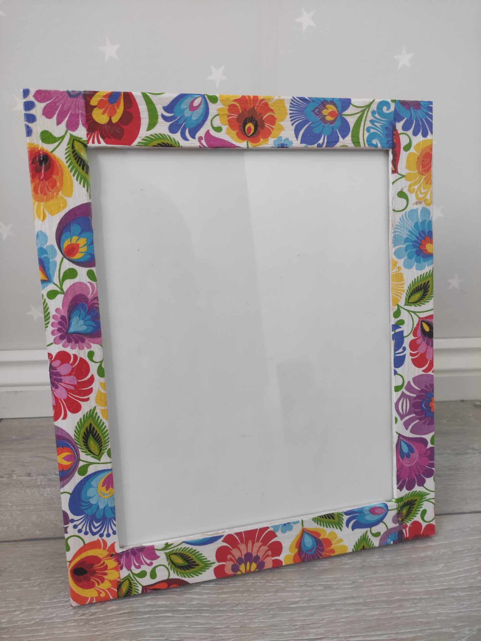 Folk floral style photo wooden frame A4 A5 sizes stand or hang