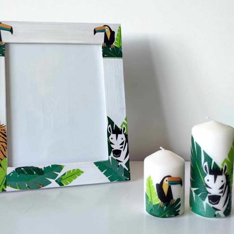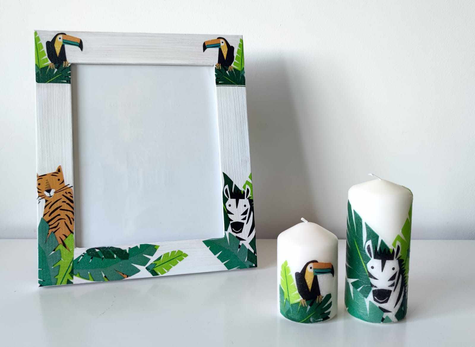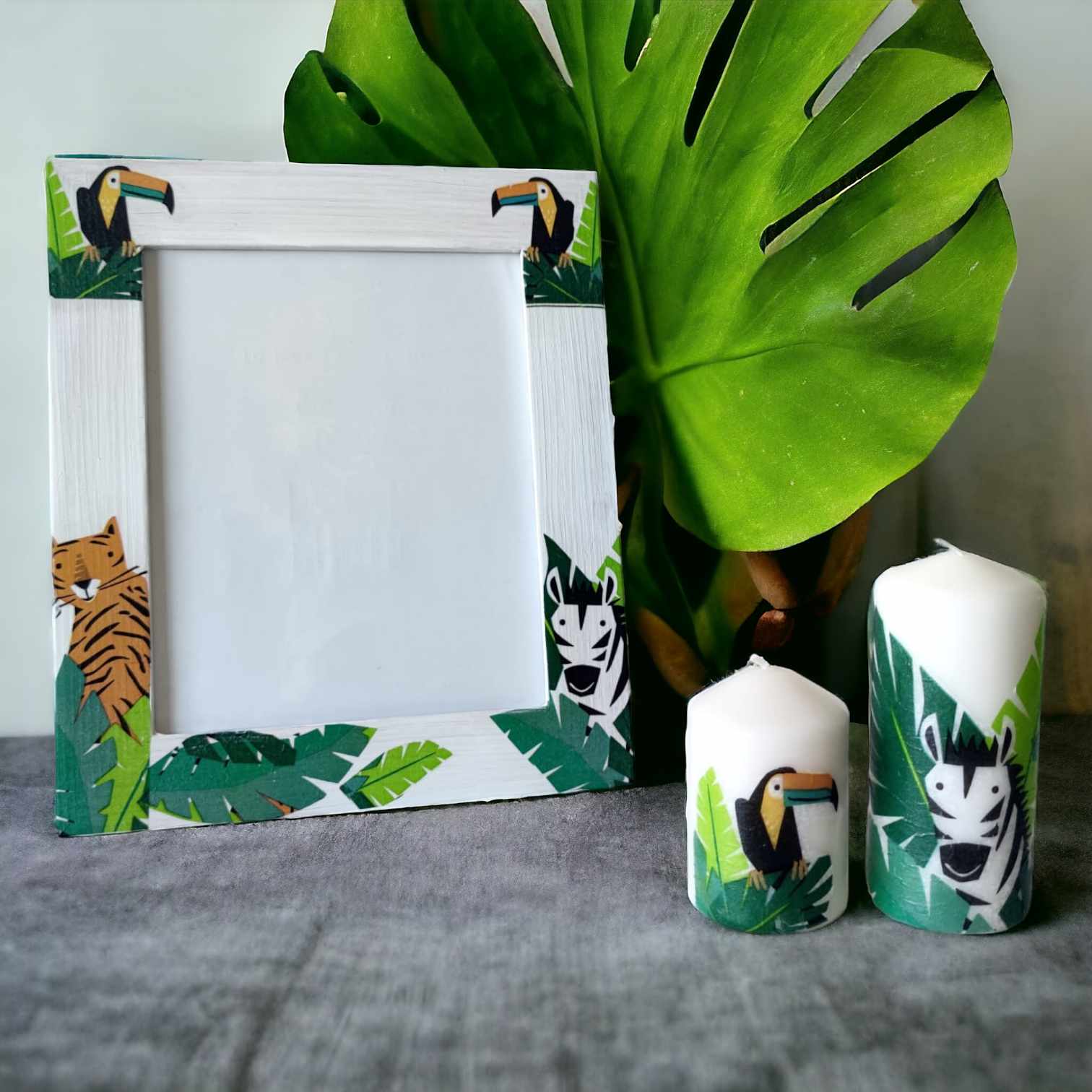🌿Jungle Lion King photo wooden frame A4 A5 sizes & candles gift set