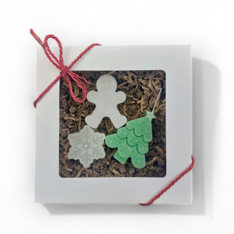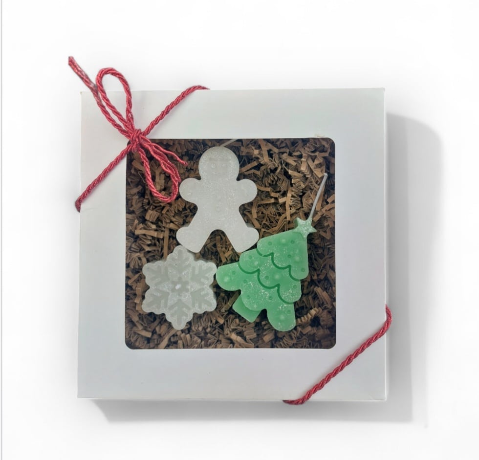 🌿Luxury Eco Soy Wax Scented 3 x Candles : Christmas Tree- 10cm, Gingerbread man 8cm, Snowflake 4cm