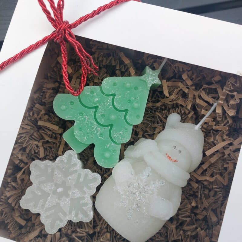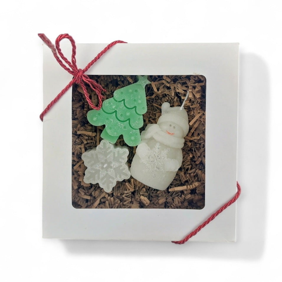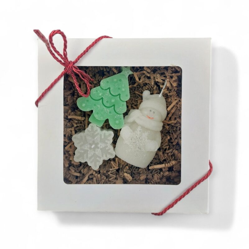🌿Luxury Eco Soy Wax Scented 3 x Candles : Christmas Tree- 10cm, Snowman 10cm, Snowflake 4cm