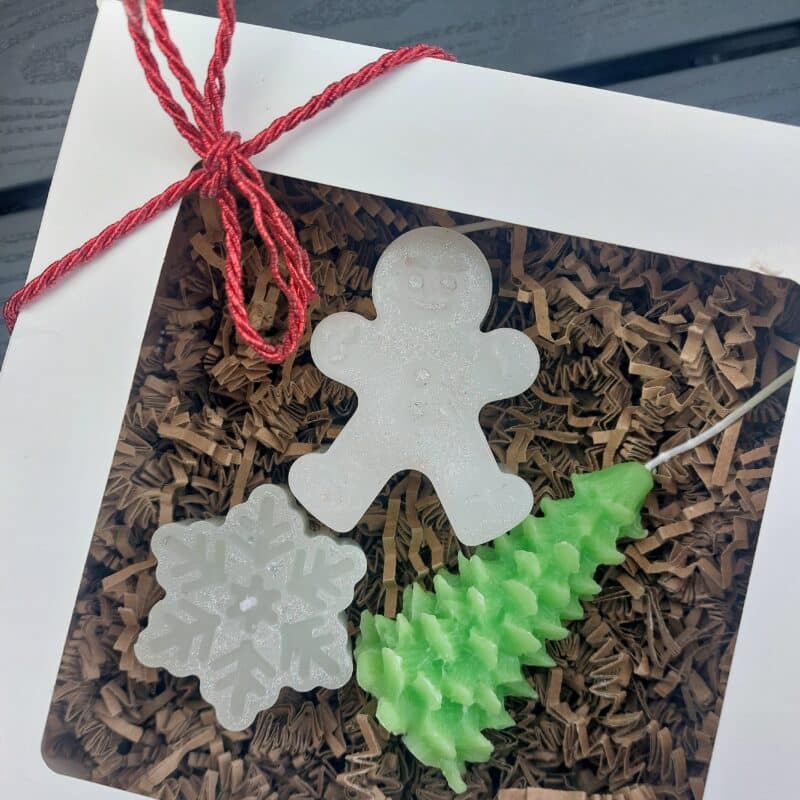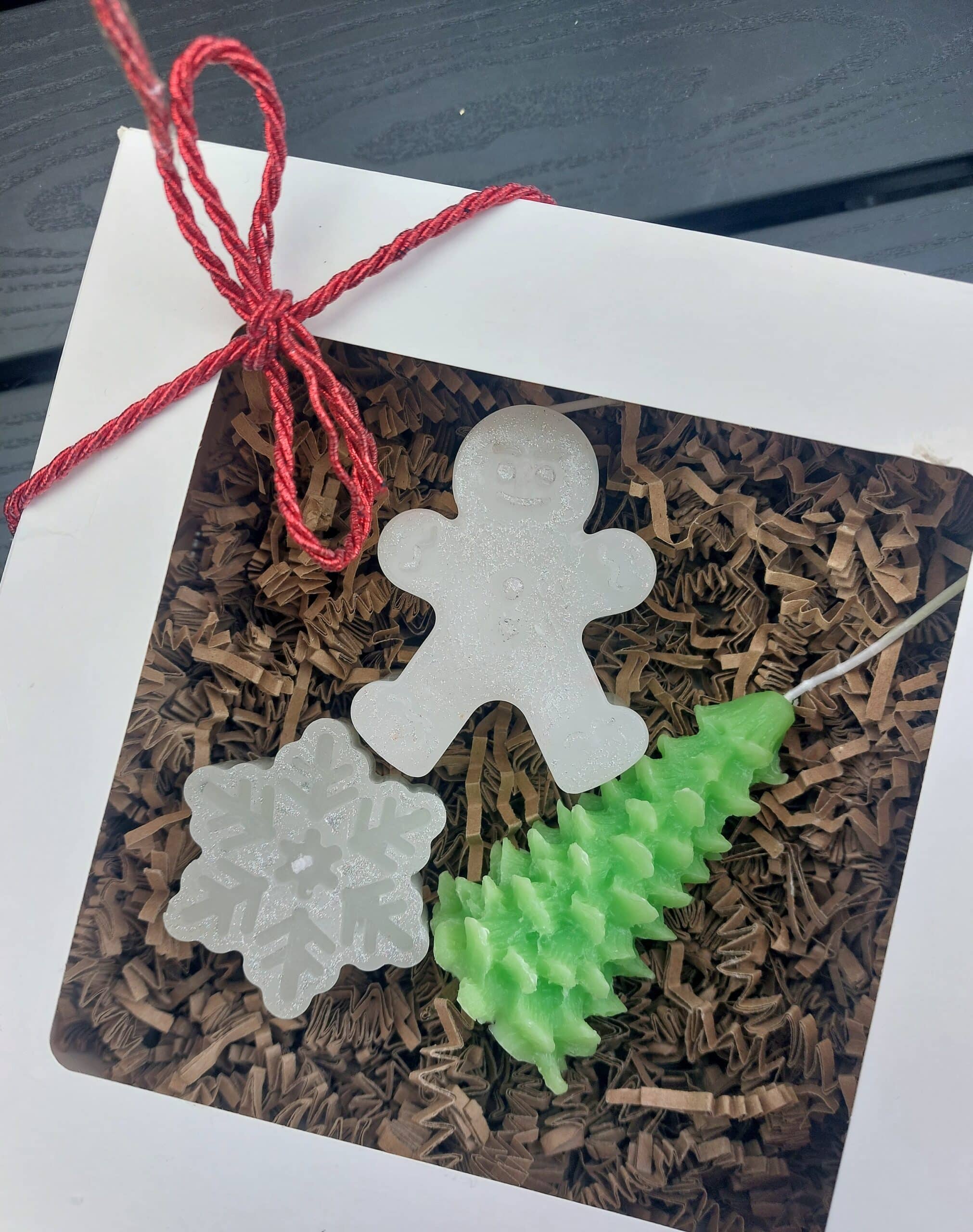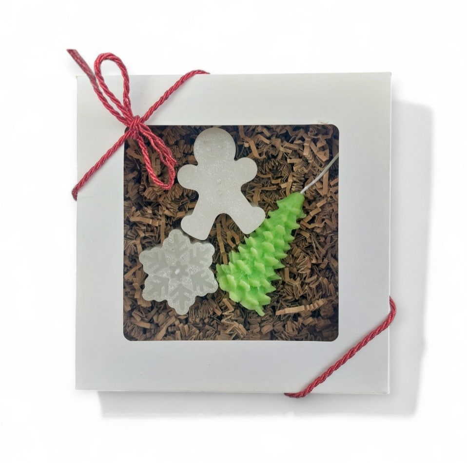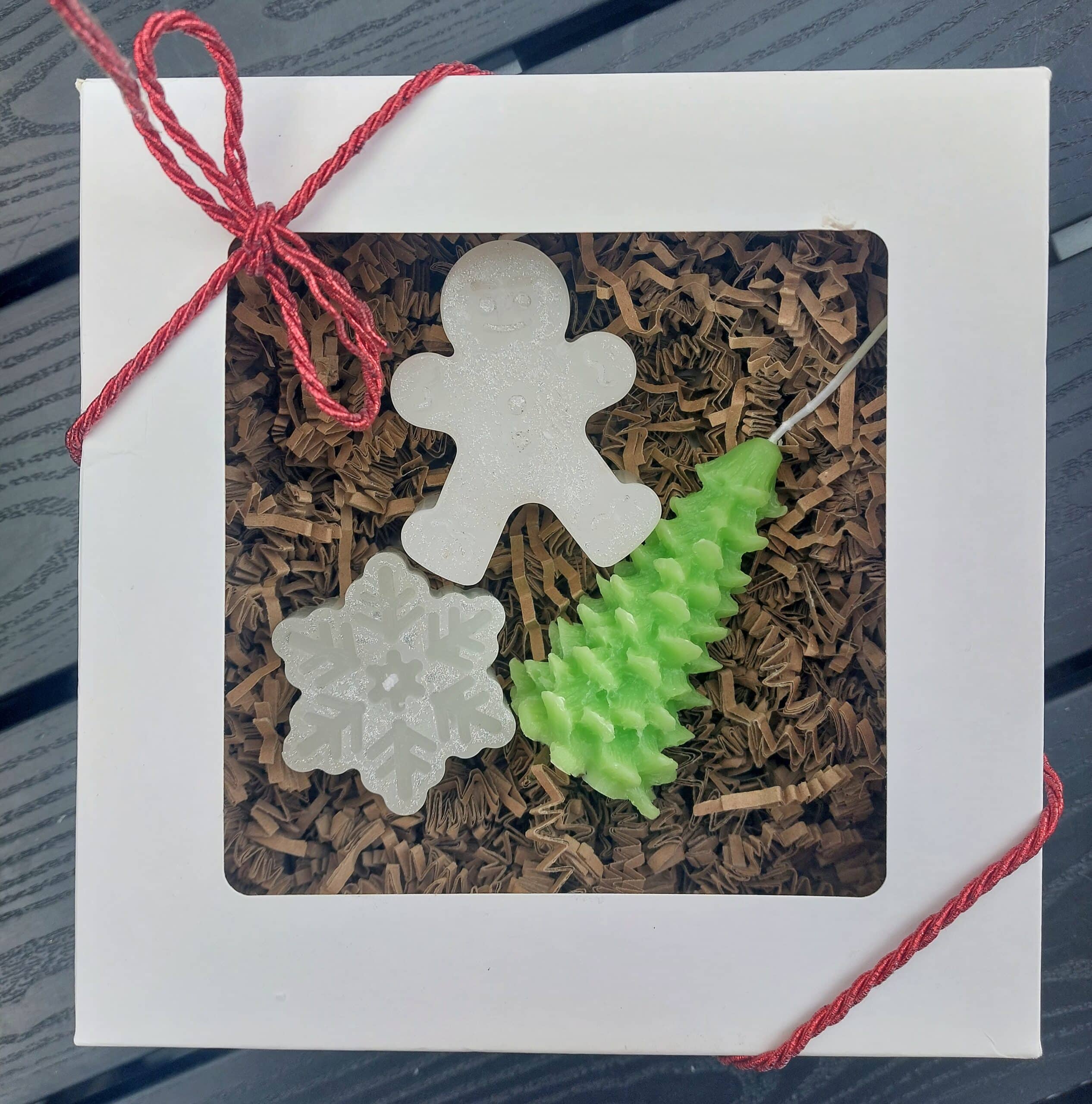 🌿Luxury Eco Soy Wax Scented 3 x Candles : Christmas Tree- 12cm, Gingerbread man 8cm, Snowflake 4cm