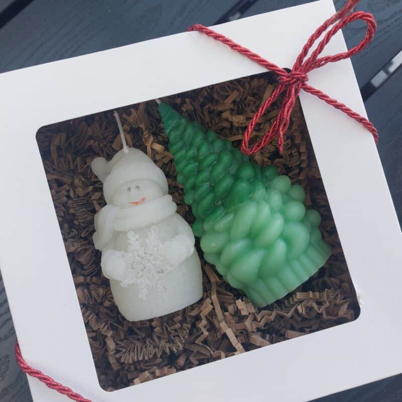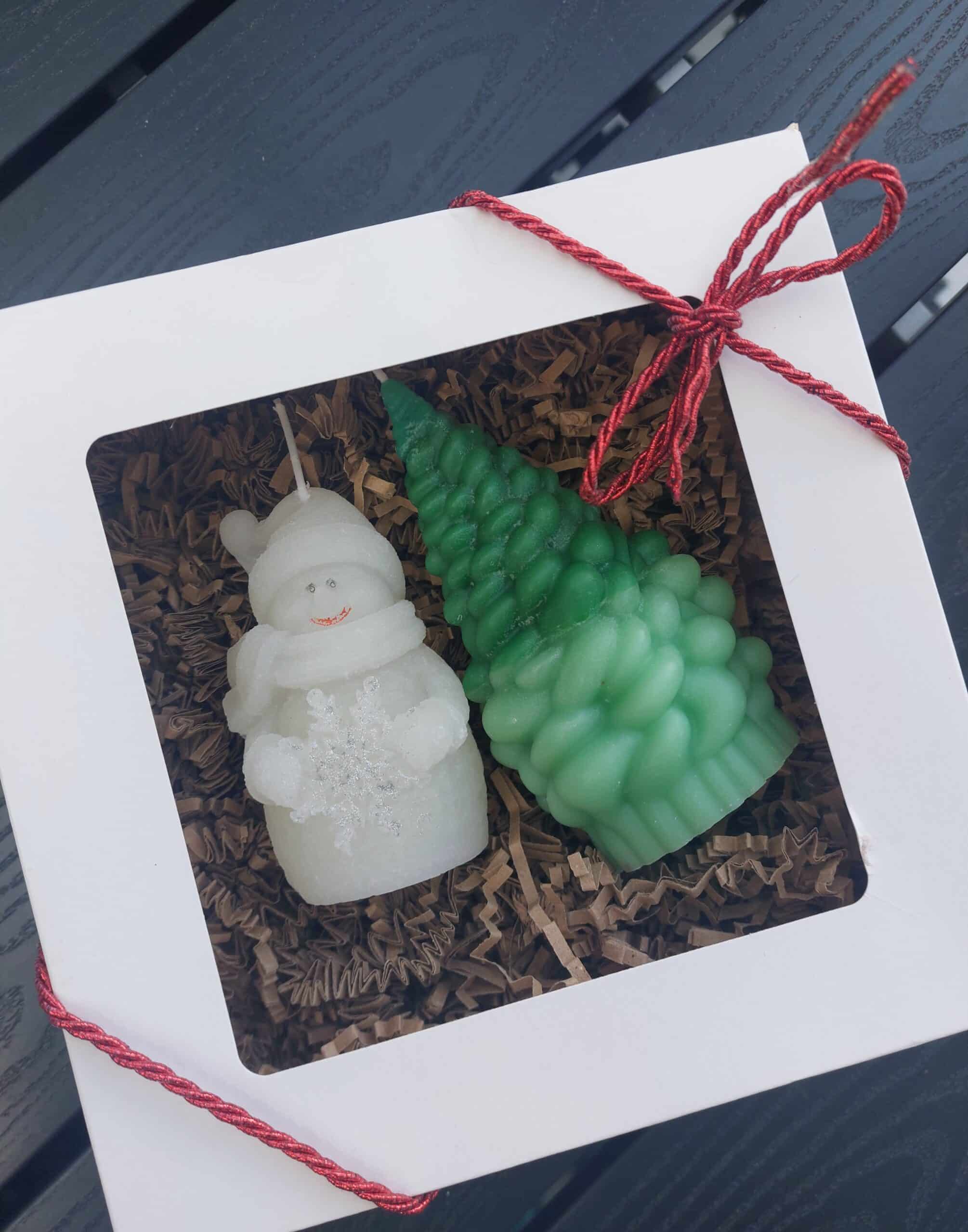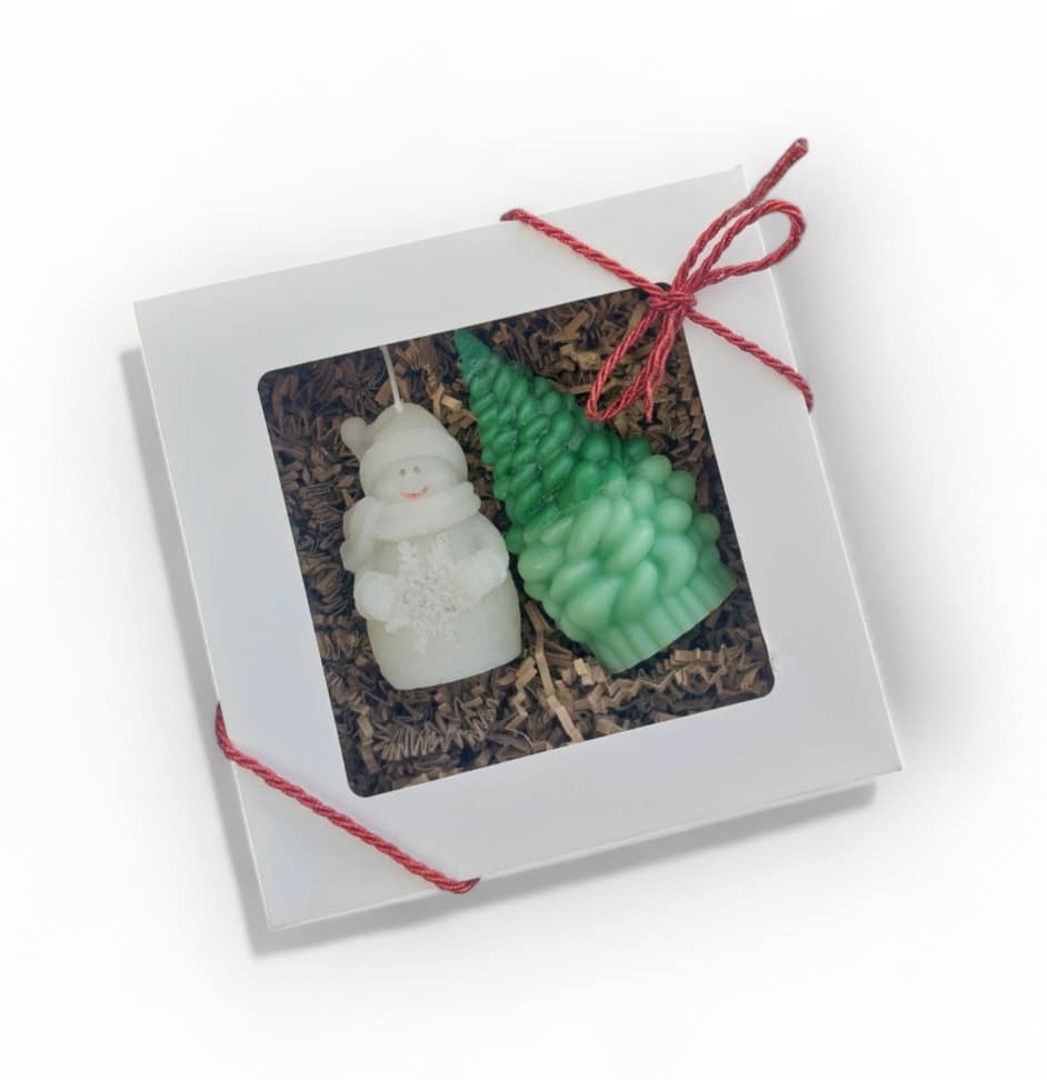 🌿Luxury Eco Soy Wax Scented 2 x Candles : Christmas Tree- 13cm, Snowman 8cm