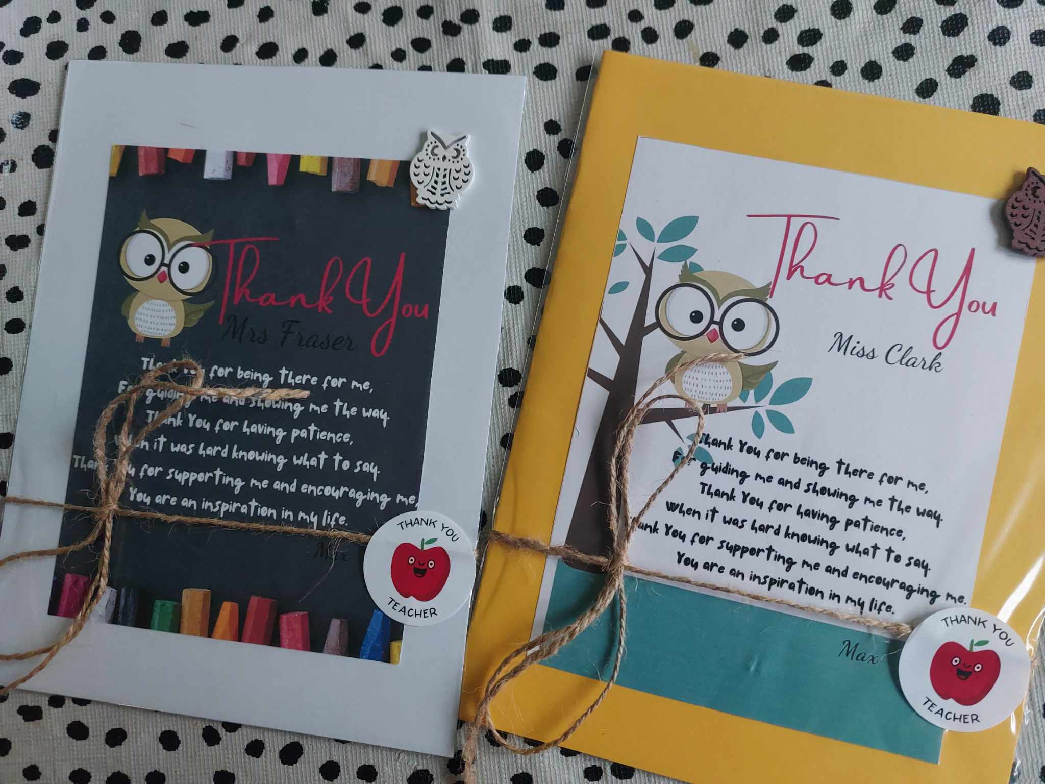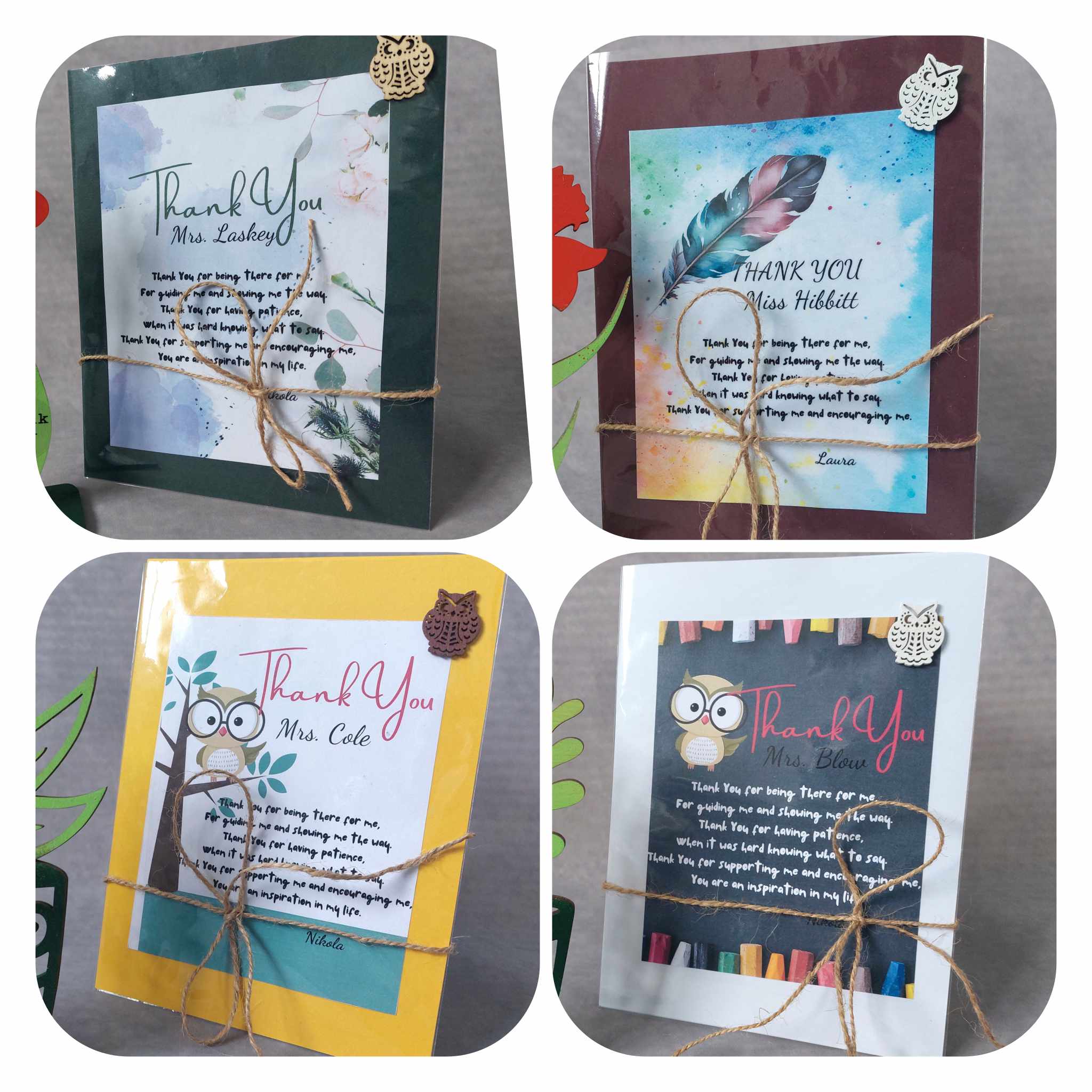 🌿Little wooden owl + Thank you teacher sticker added on the front.