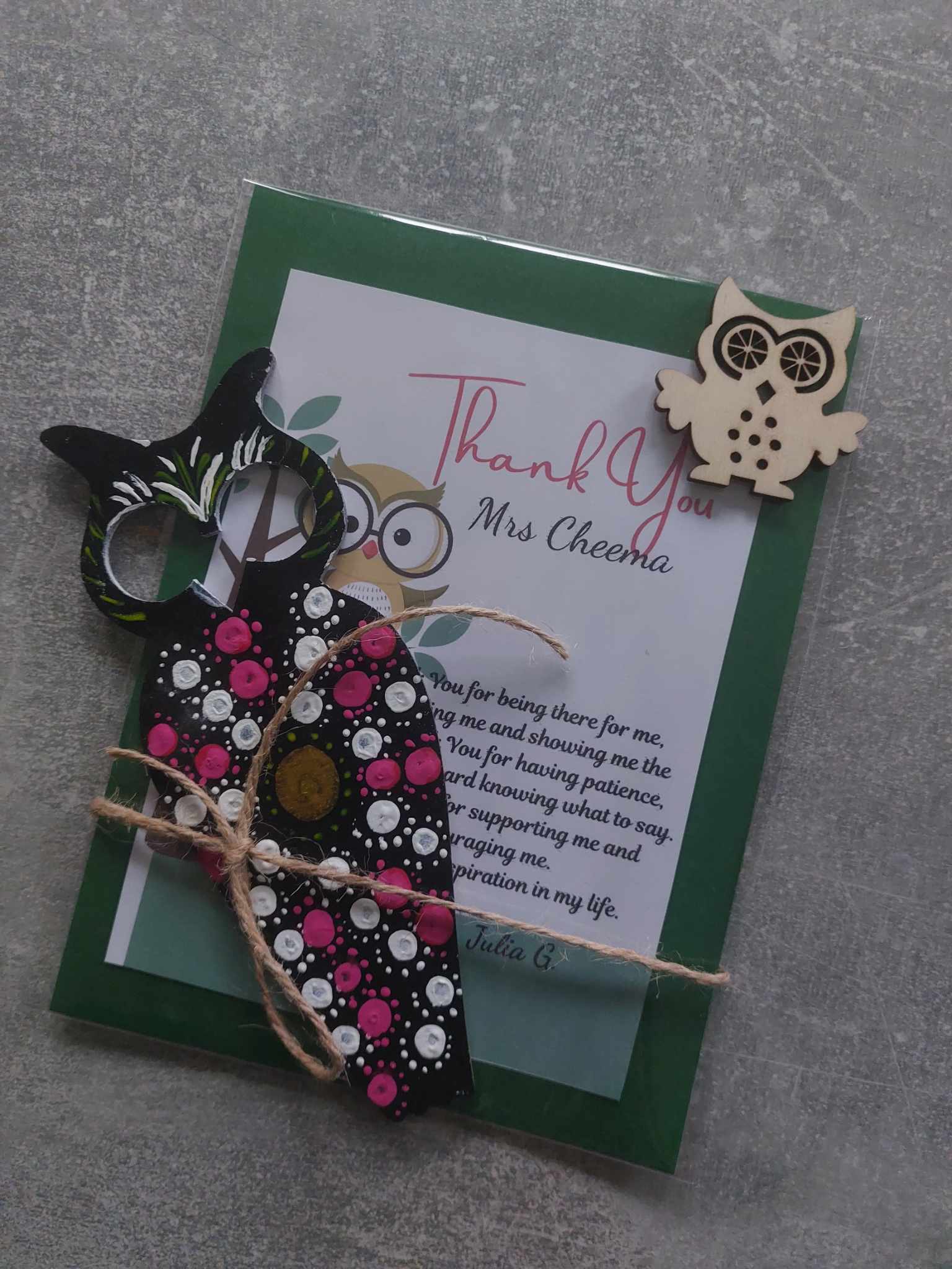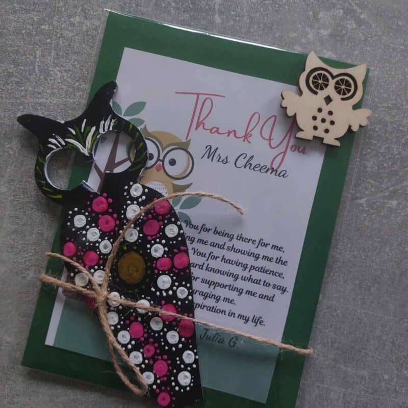 🌿Little wooden owl + Thank you teacher sticker added on the front.