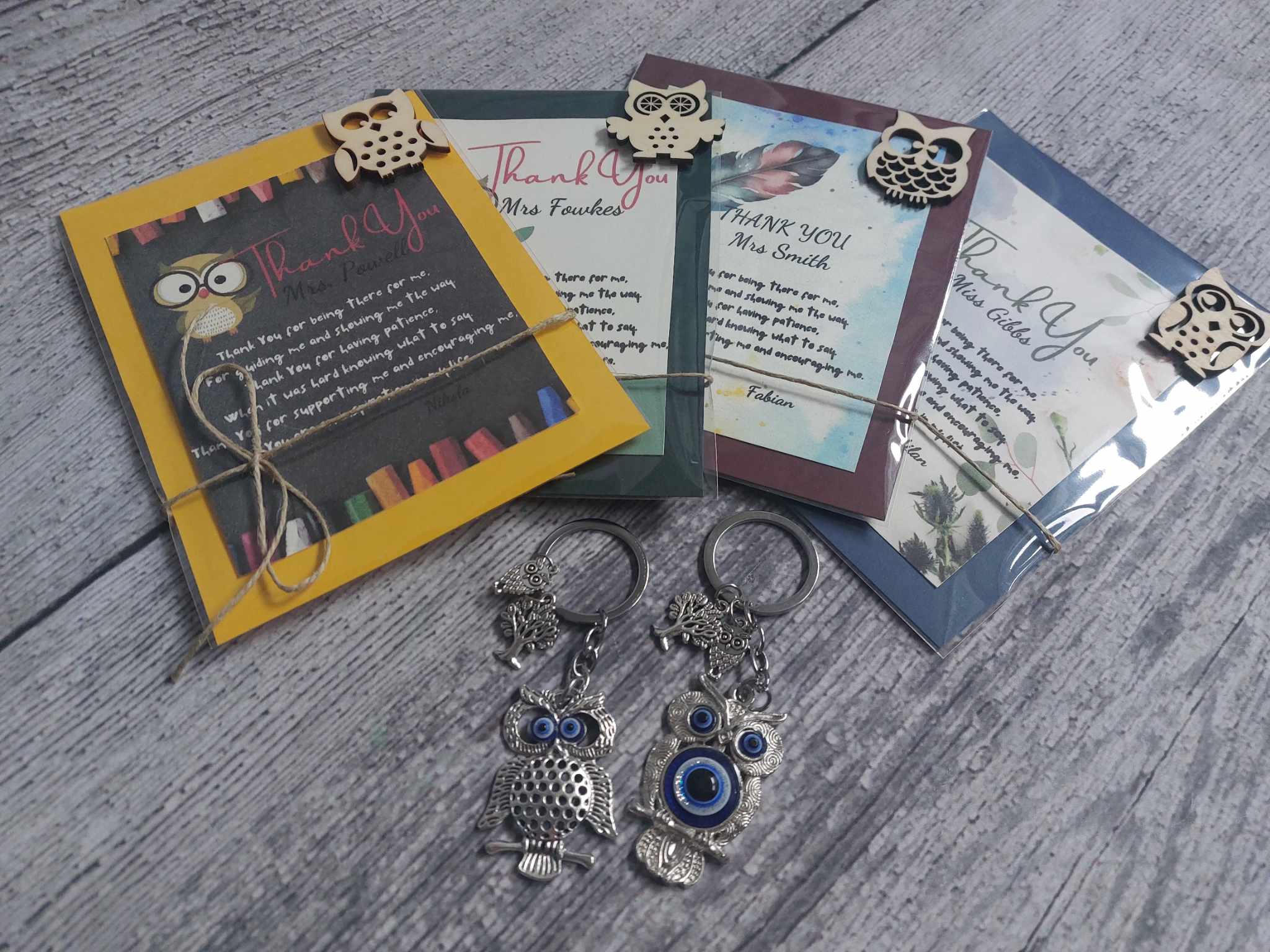 🌿Little wooden owl + Thank you teacher sticker added on the front.