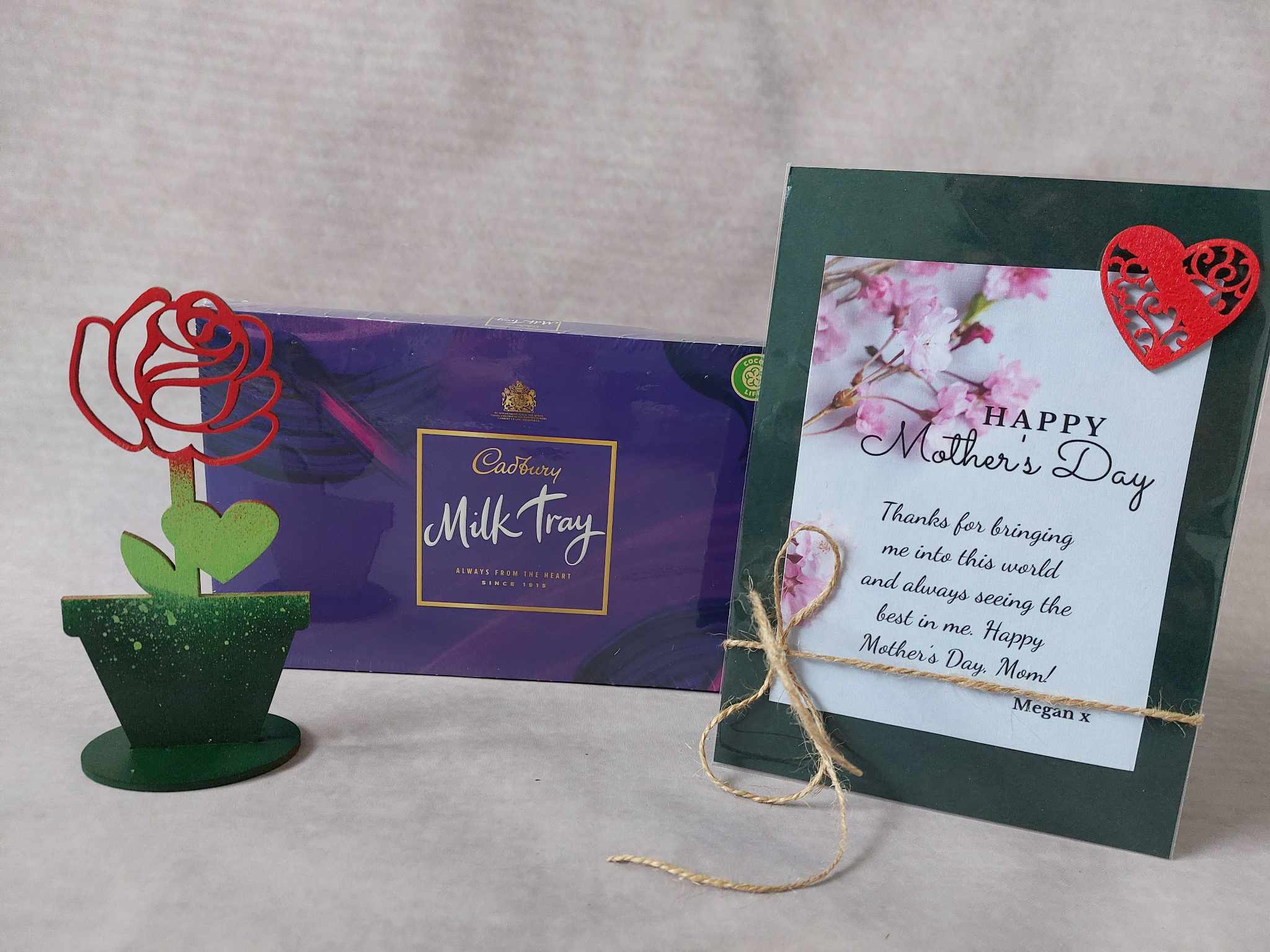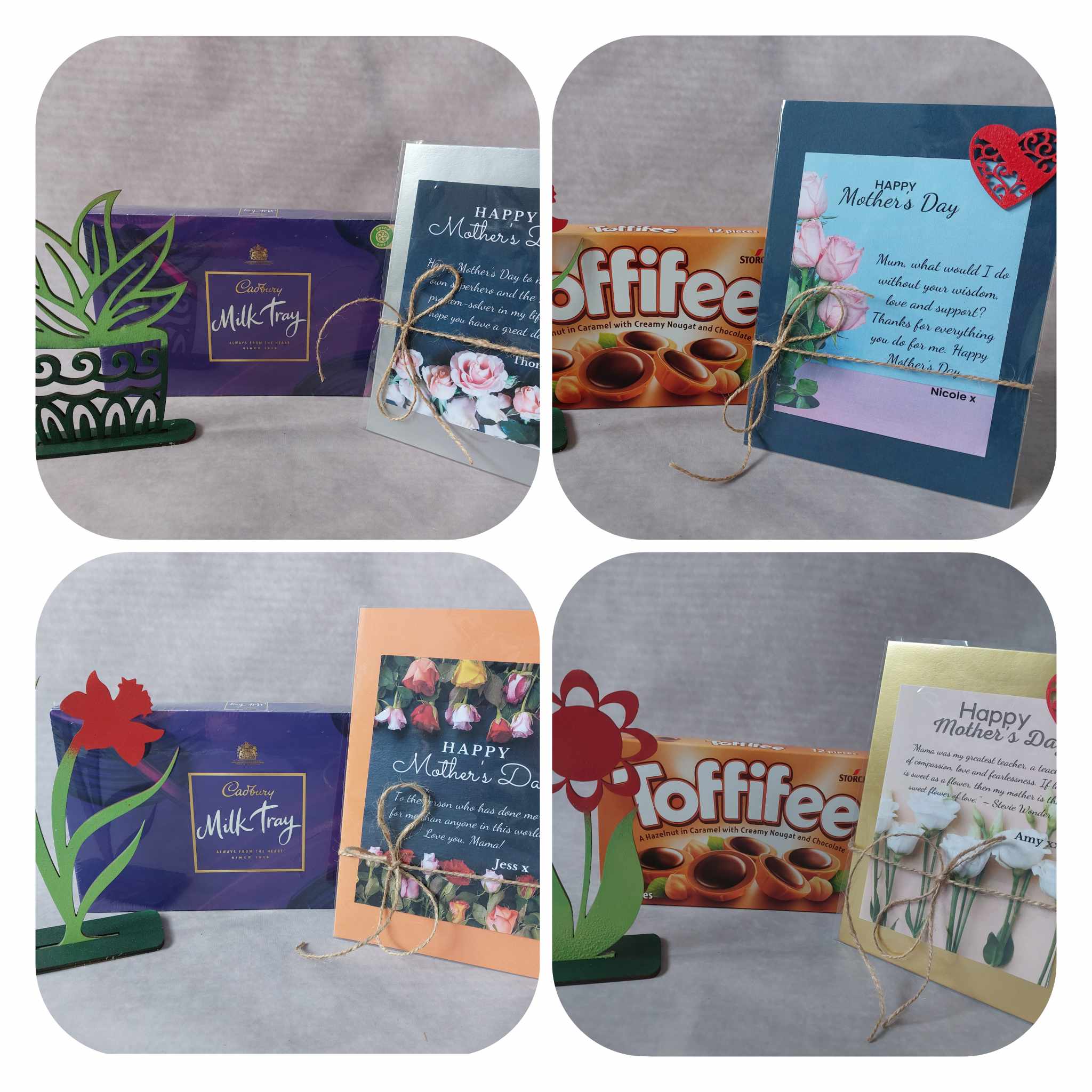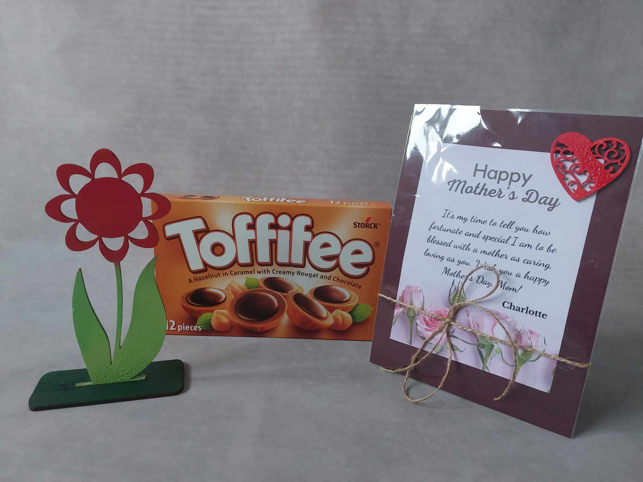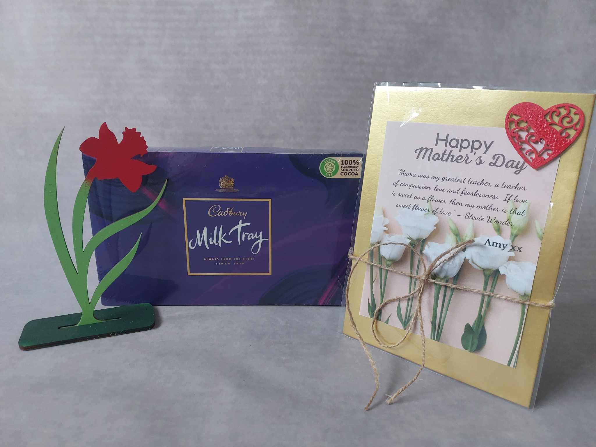 Luxury Personalized Mother’s Day gift set *Card + Wooden Flower Stand + Cadbury Milk Tray / Toffifee