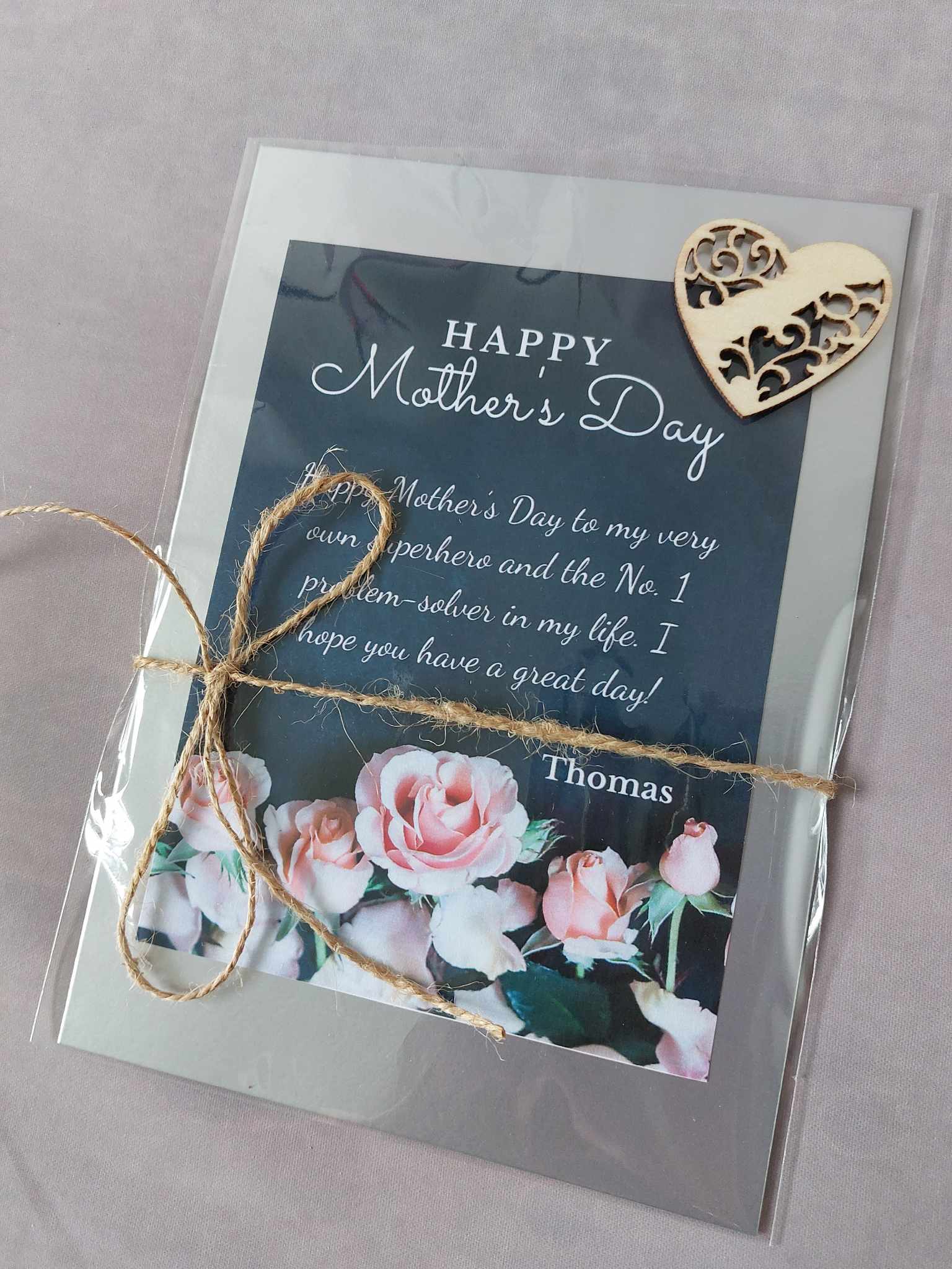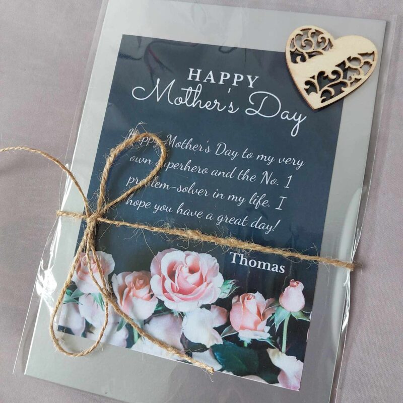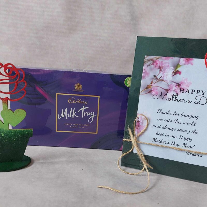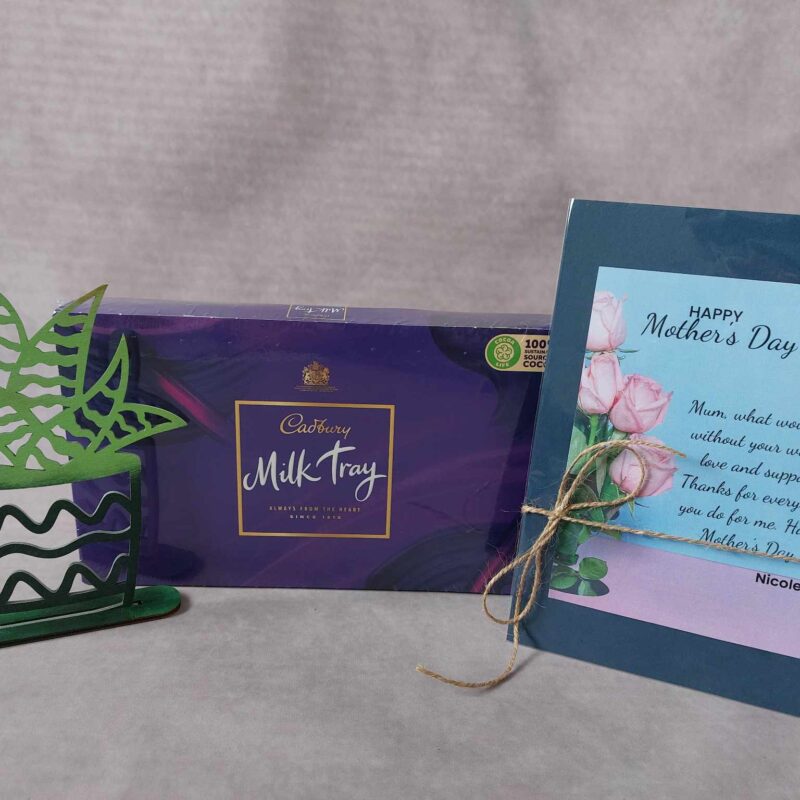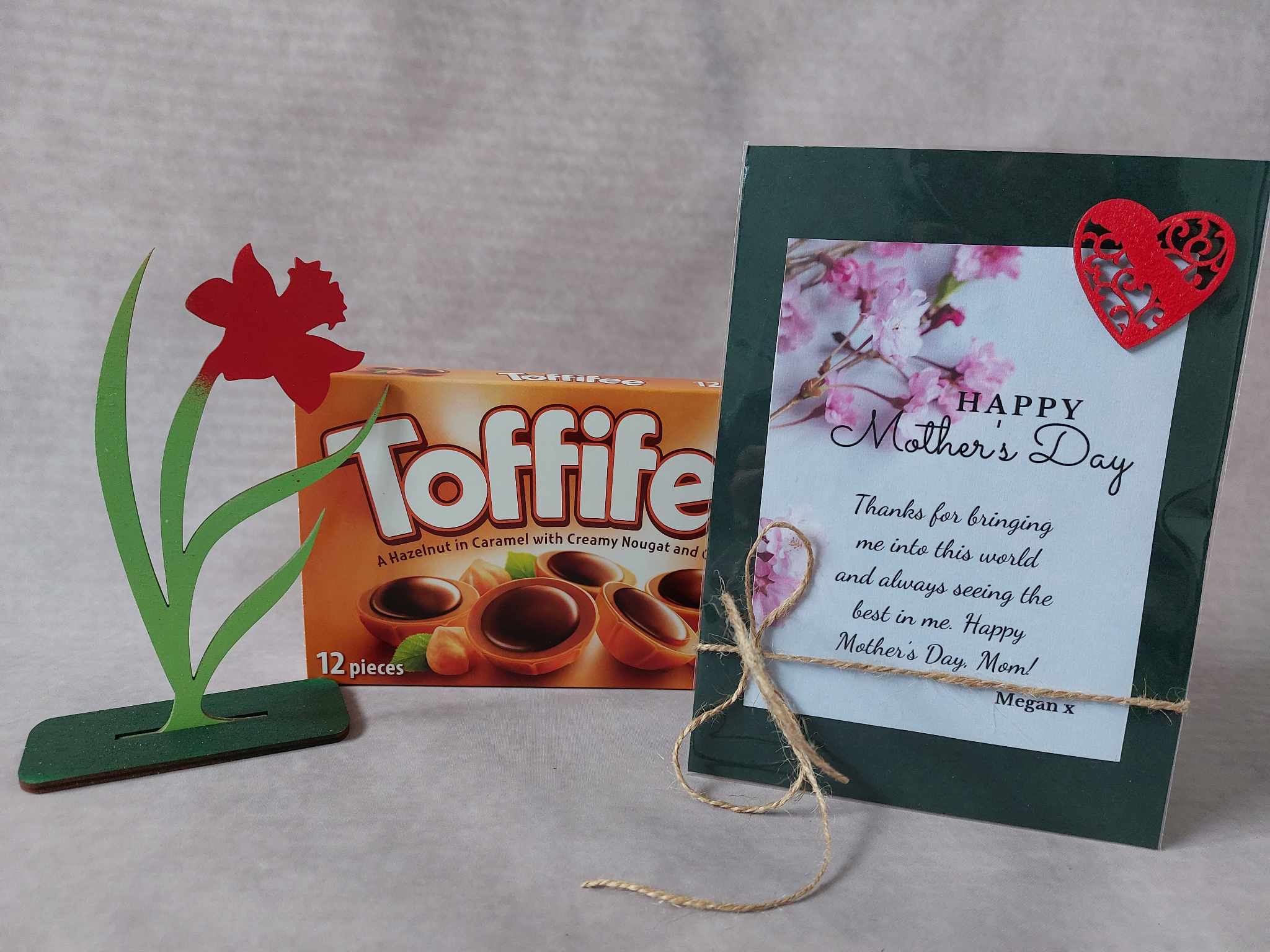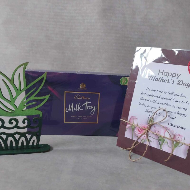Luxury Personalized Mother’s Day gift set *Card + Wooden Flower Stand + Cadbury Milk Tray / Toffifee