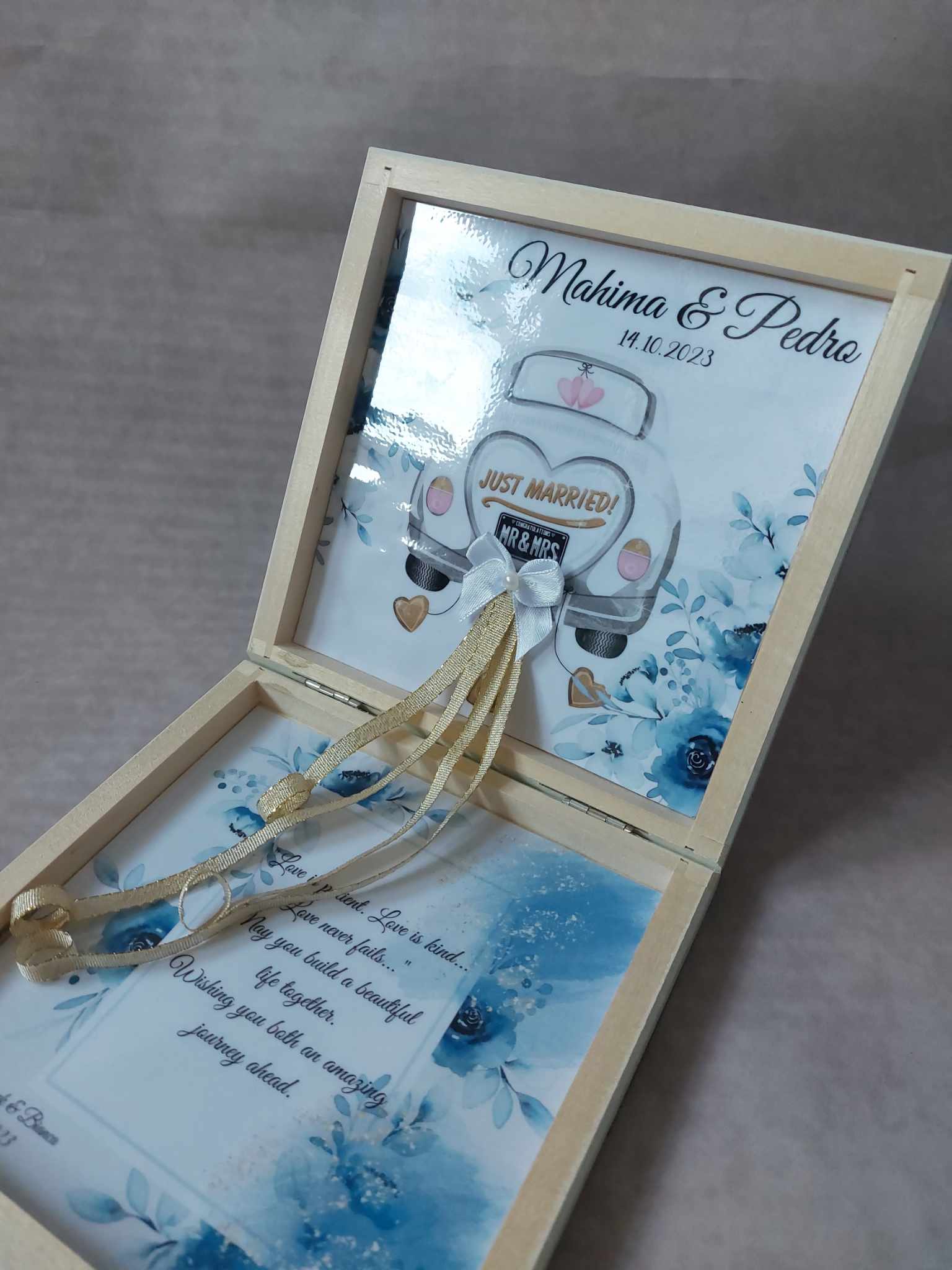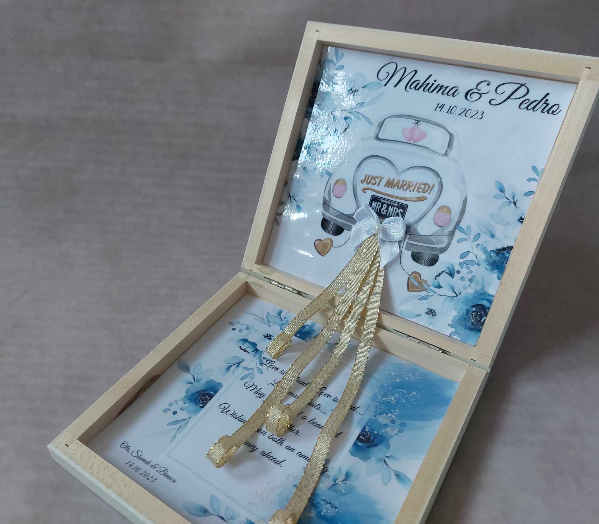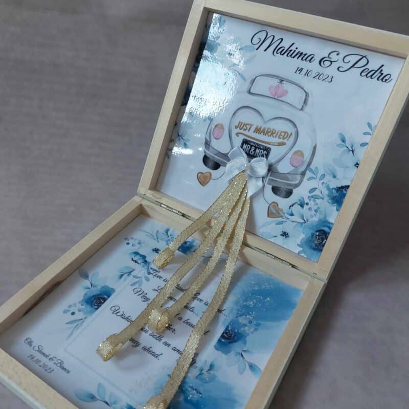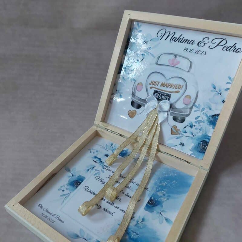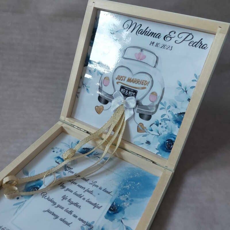 Luxury Personalized Wedding Gift for couple flat wooden money box keepsake