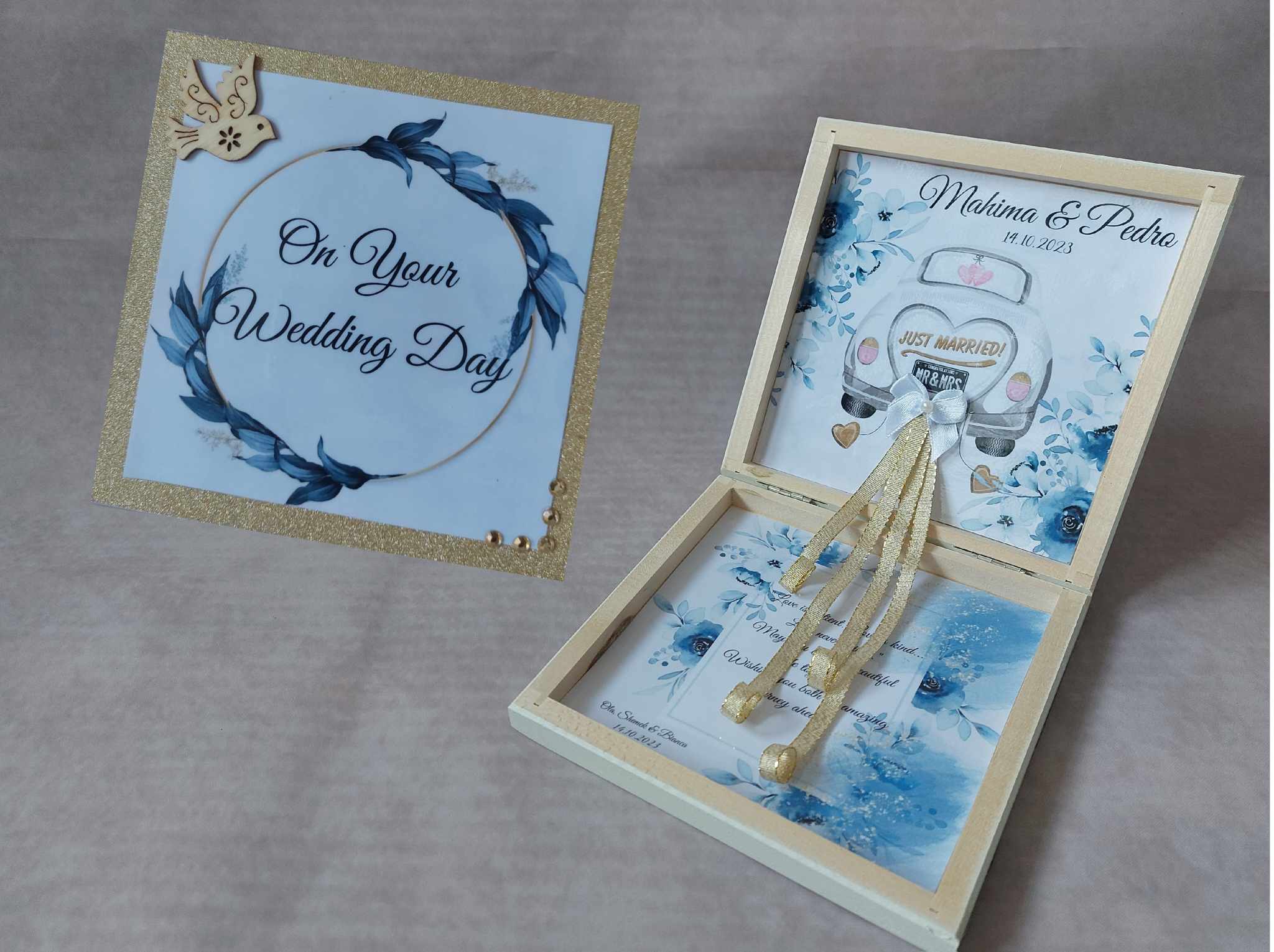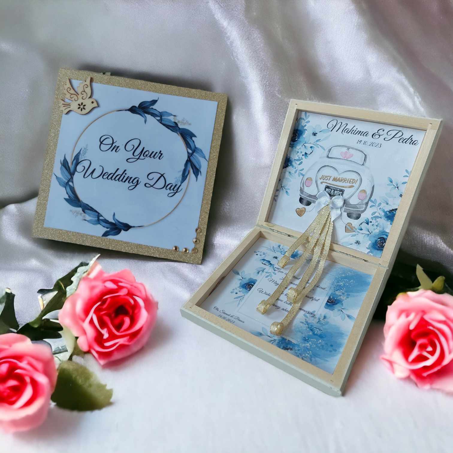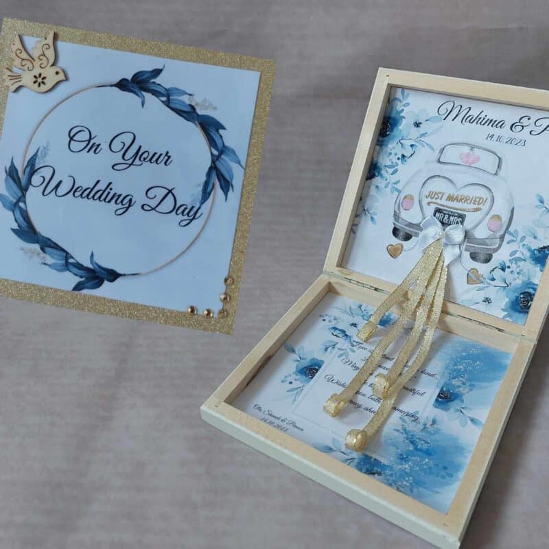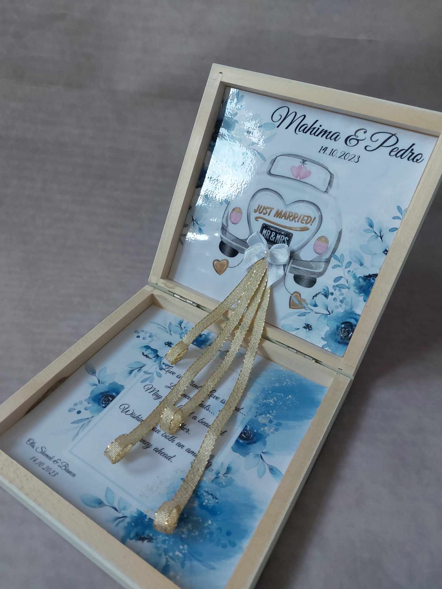 Luxury Personalized Wedding Gift for couple flat wooden money box keepsake