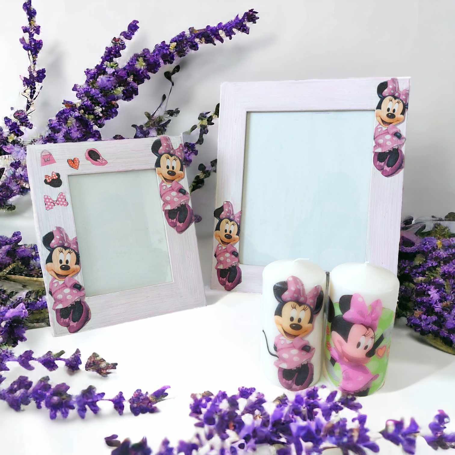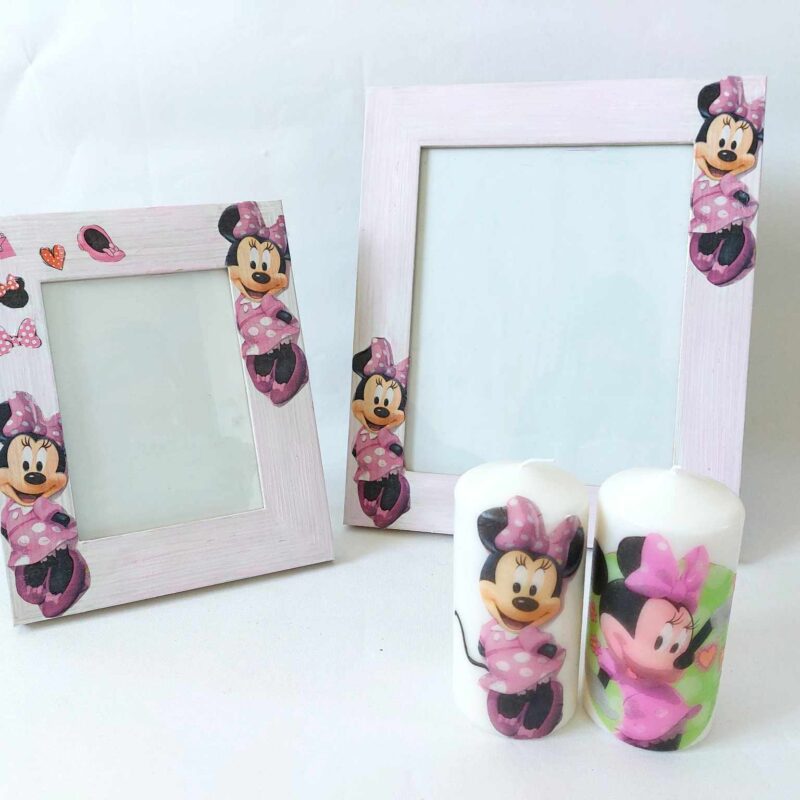 🌿Minnie Mouse photo wooden frame A4 A5 sizes & candles gift set