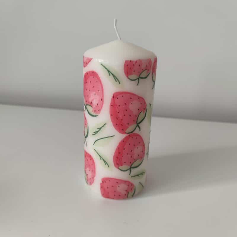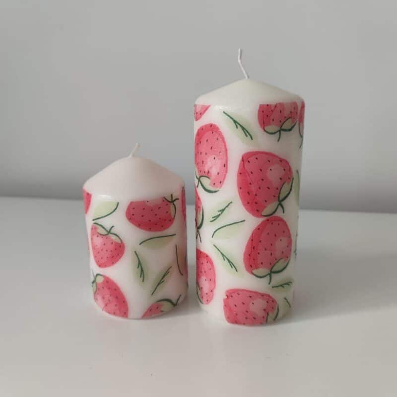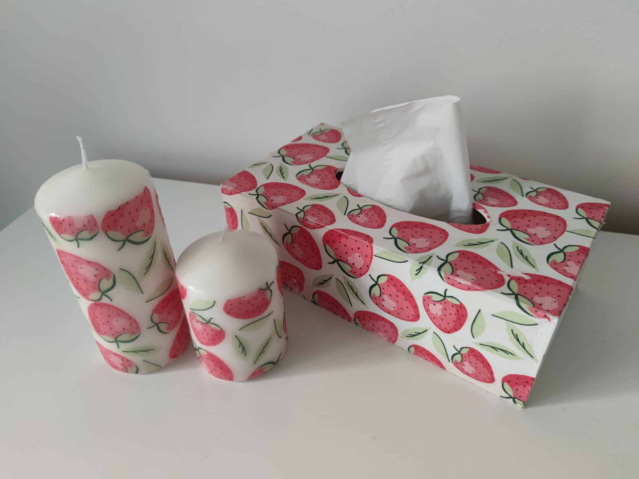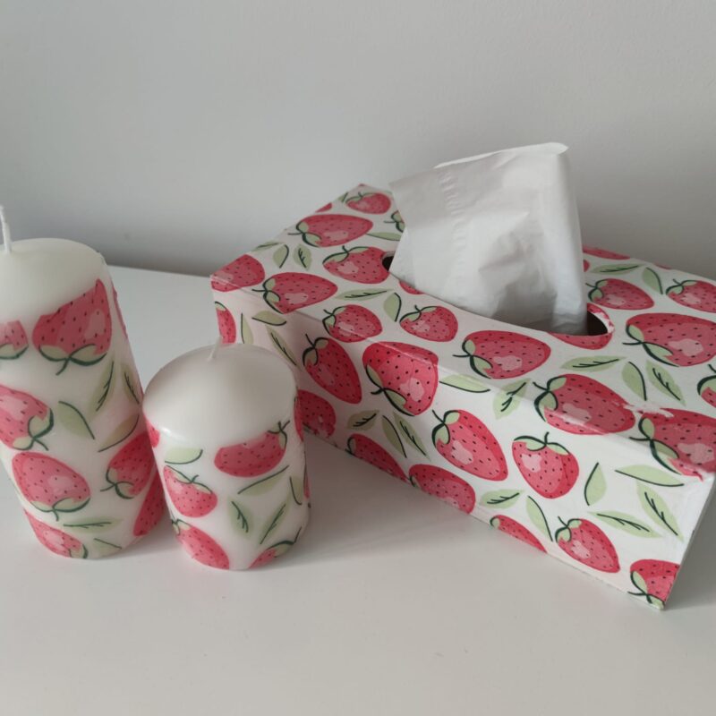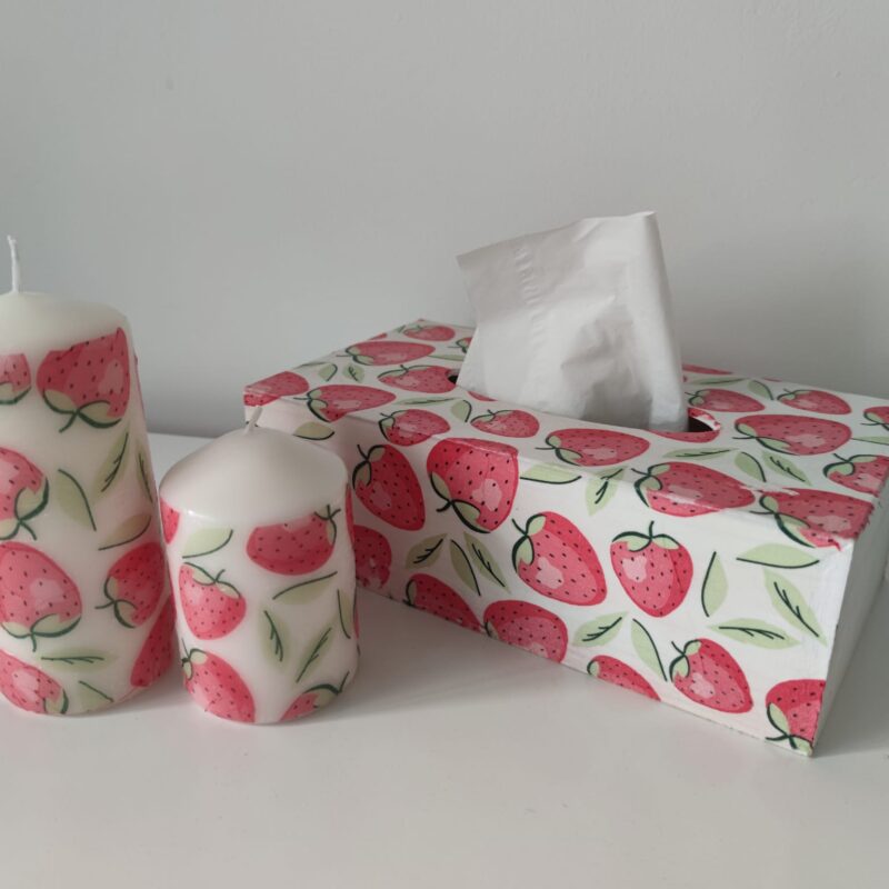 Nature strawberry wooden tissue box & candles gift set