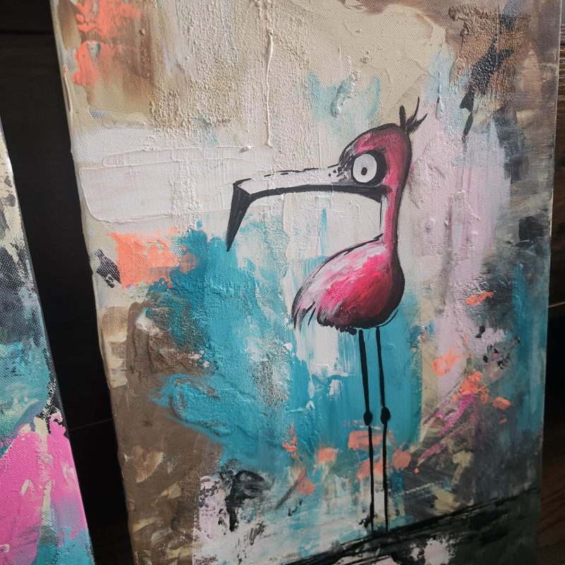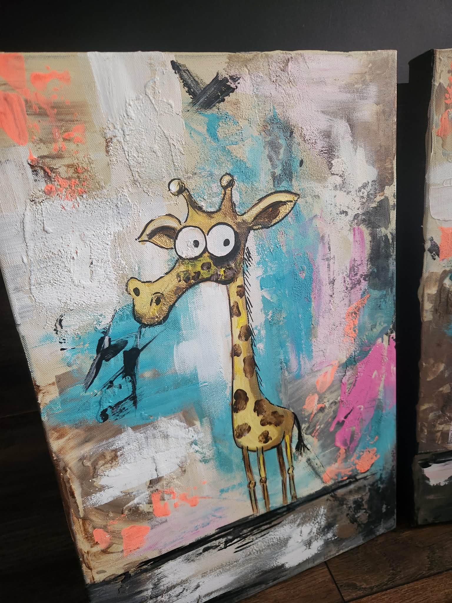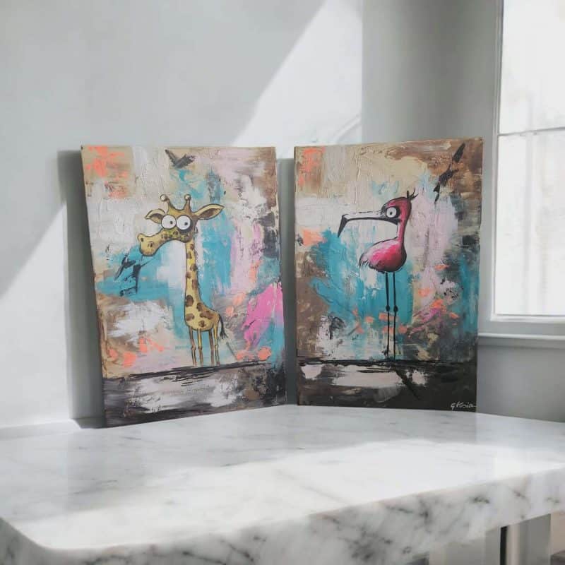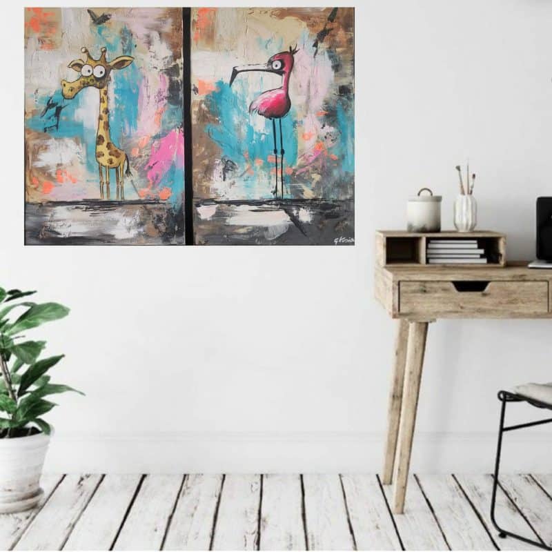 The price include painting on stretched canvas, ready to hang. There is an option to enquire floating frame in different colours and designs with additional cost. Please drop me a message 😉