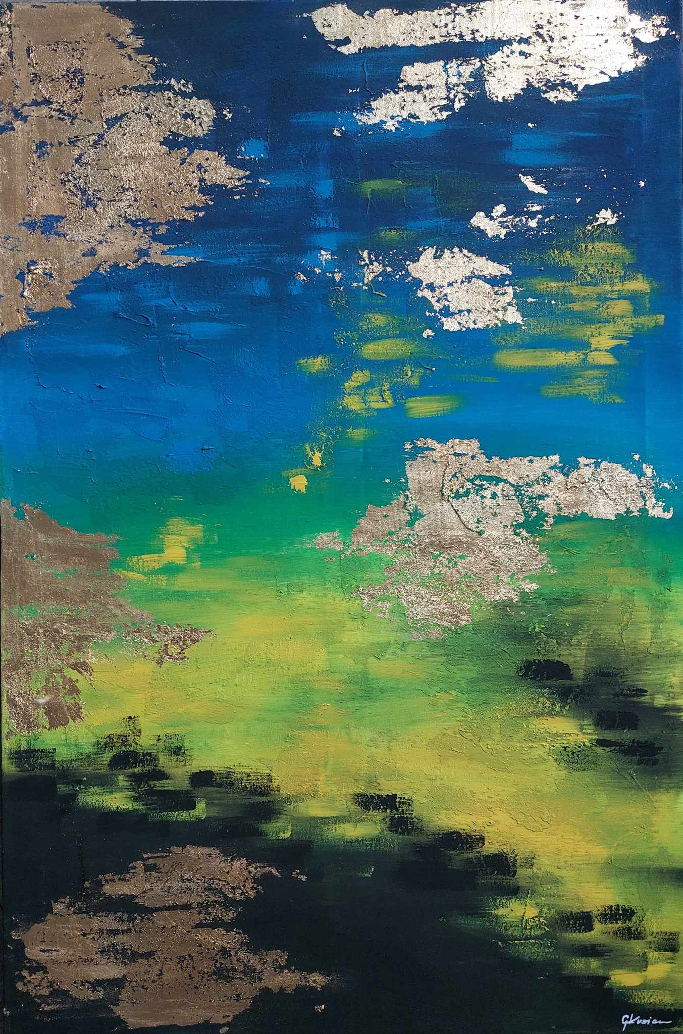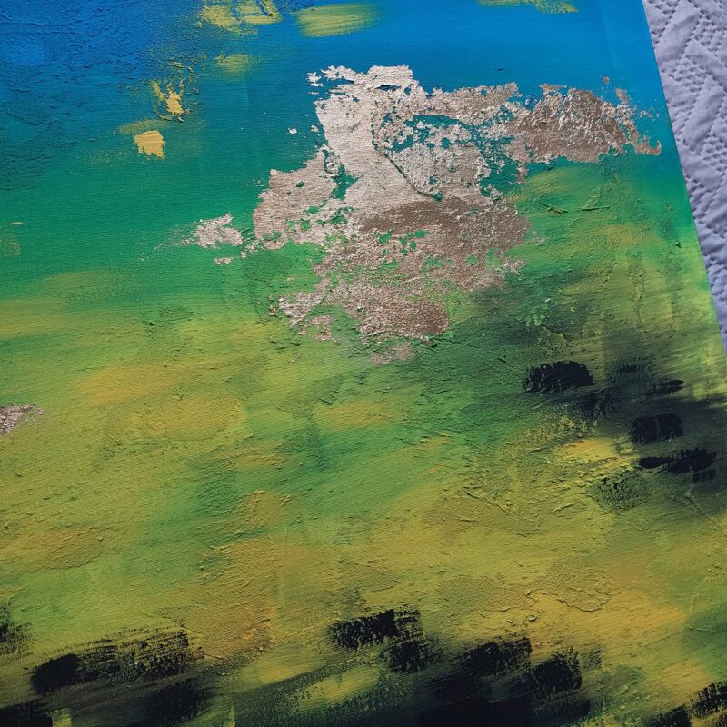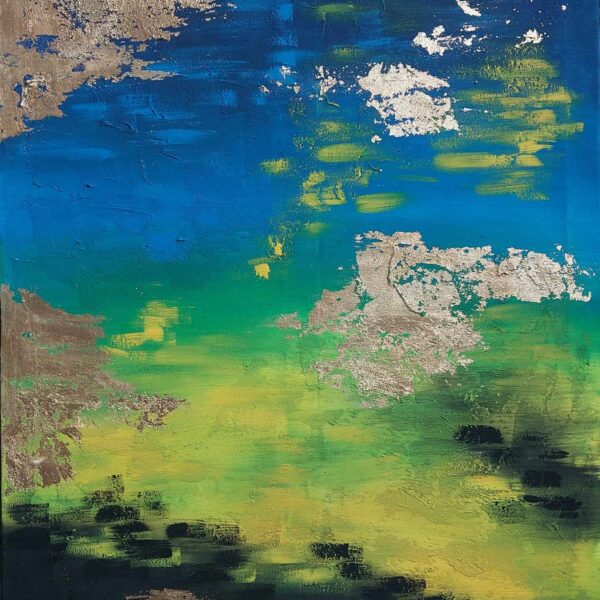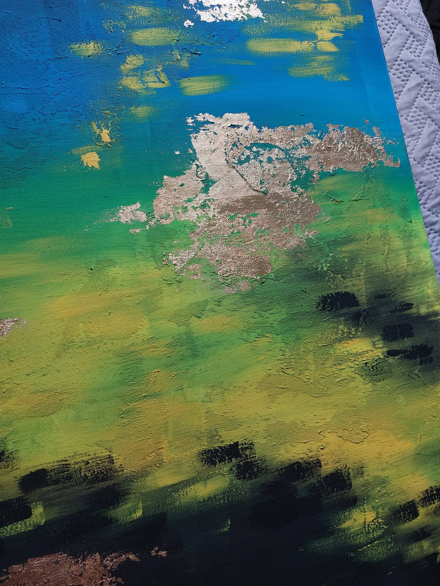 🌿Medium: Acrylic paints, gold leaf, texture paste