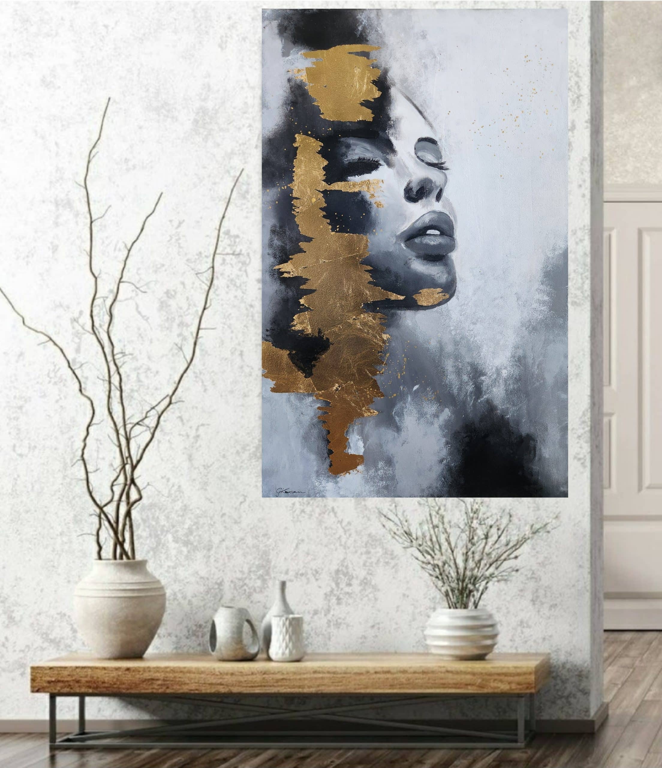 🌿Medium: Acrylic/oil paints, gold leaf