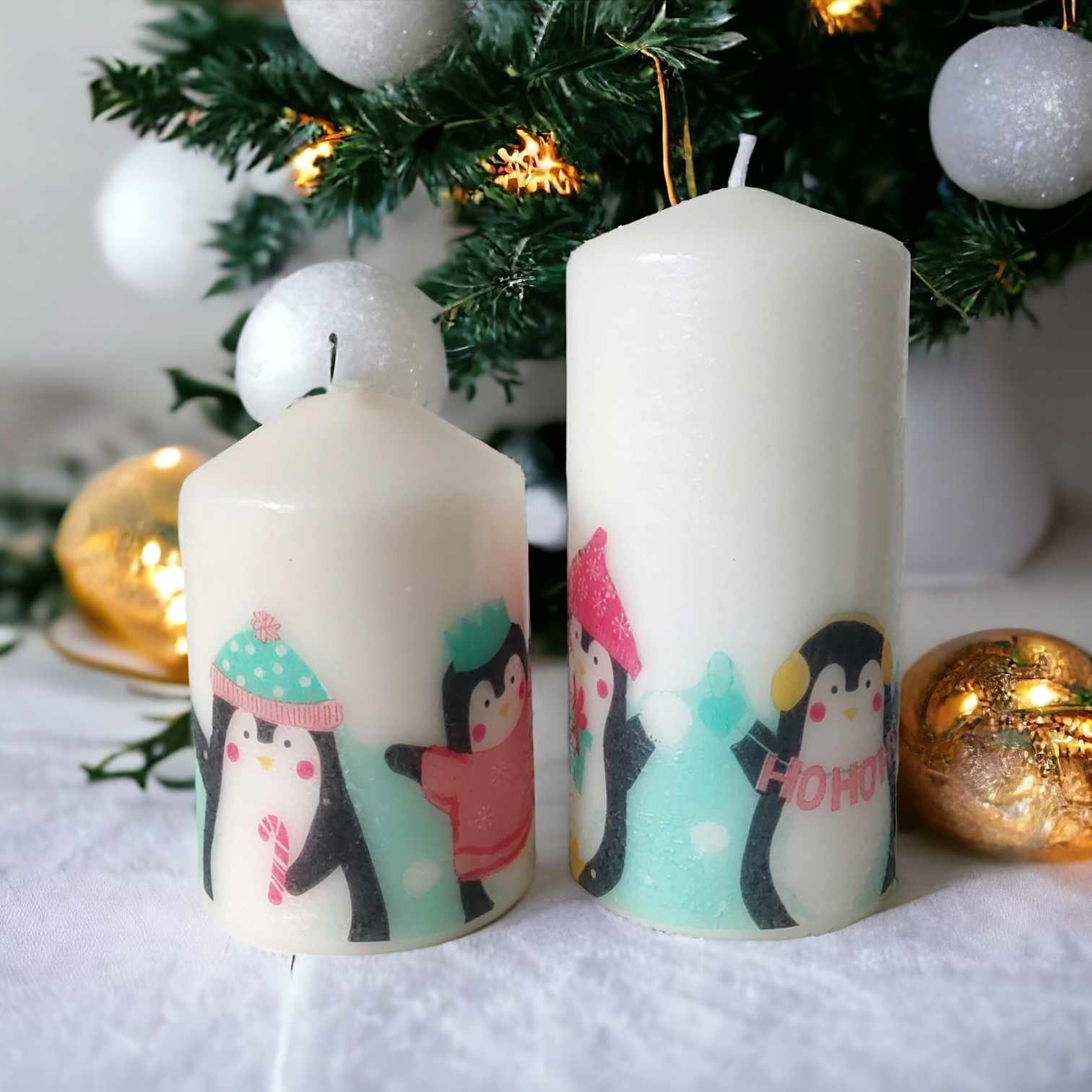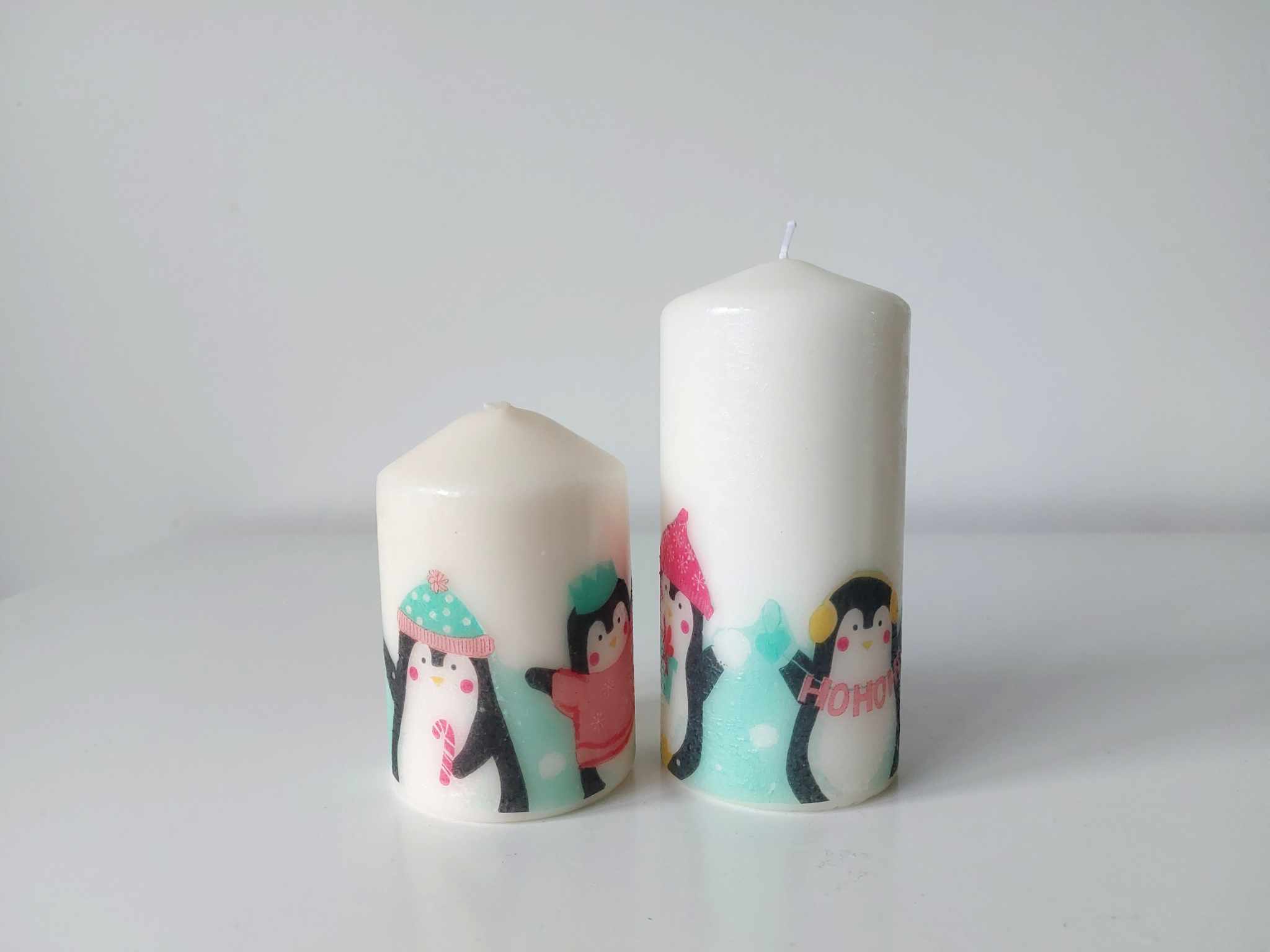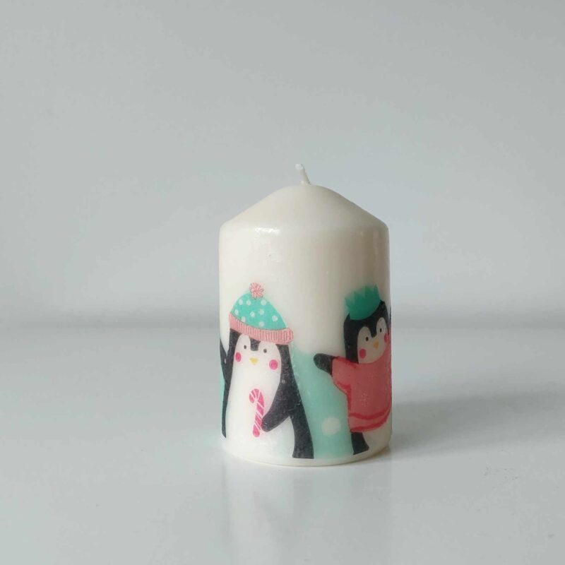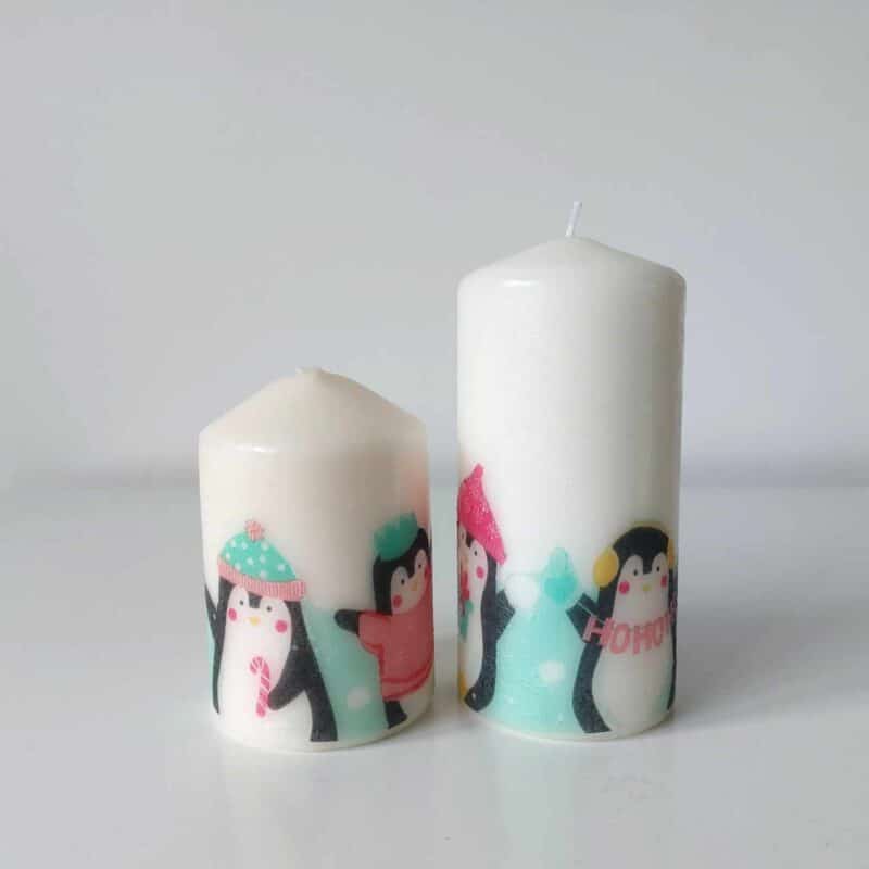 Personalized Christmas Penguins gift set Candles