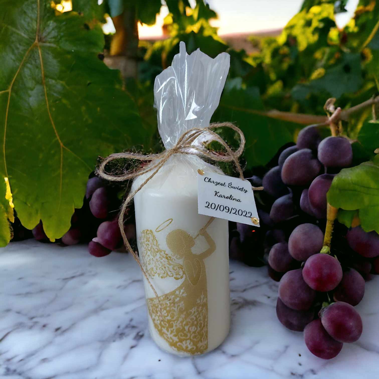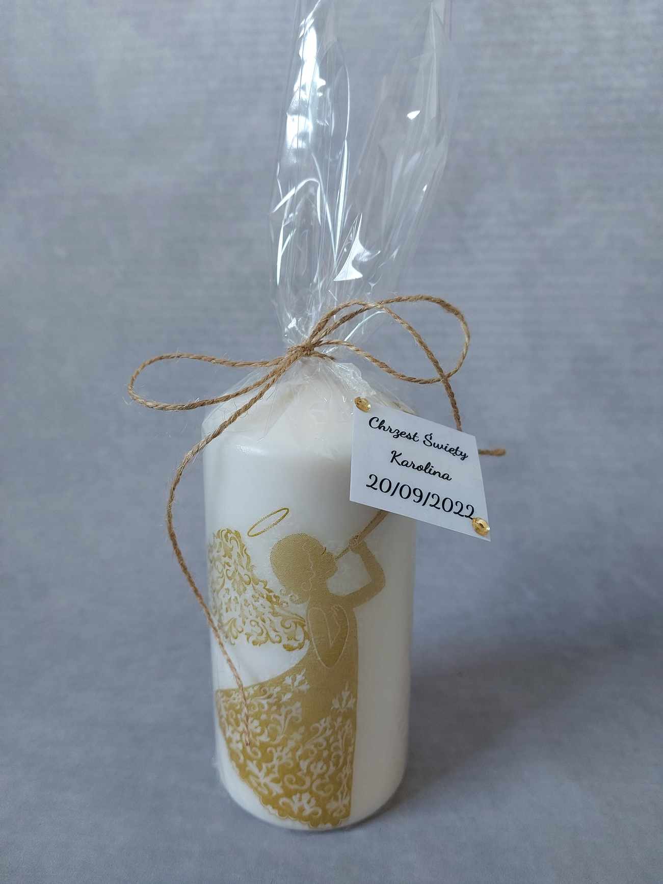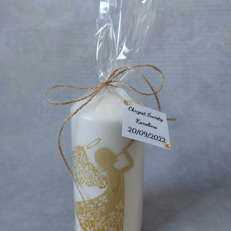 POLISH VERSION Luxury gift present Baptism Christening Candle 16cm Angel