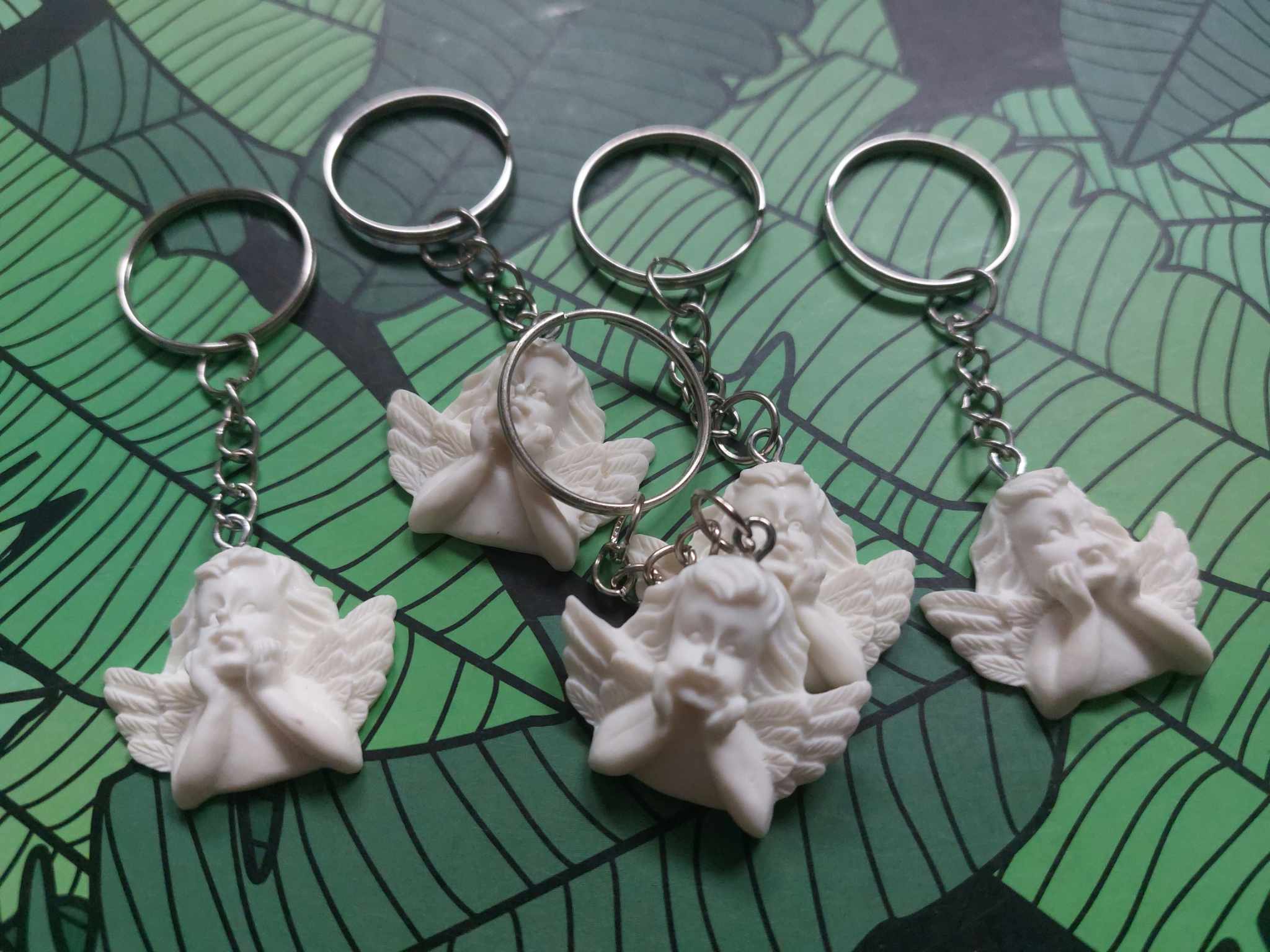 🌿Carefully made using ecological paper card with message (9x6cm) – 4 different variants and wooden,  resin angel keyring ( 8x4cm)