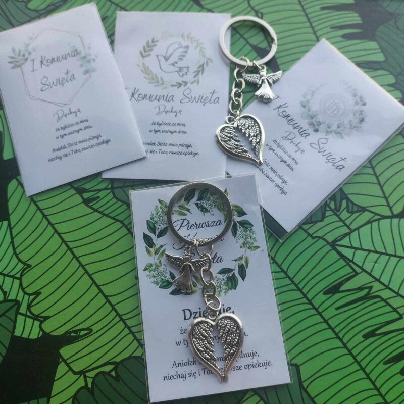 🌿Carefully made using ecological paper card with message (9x6cm) – 4 different variants and wooden, stainless steel angel keyring (9x3cm)