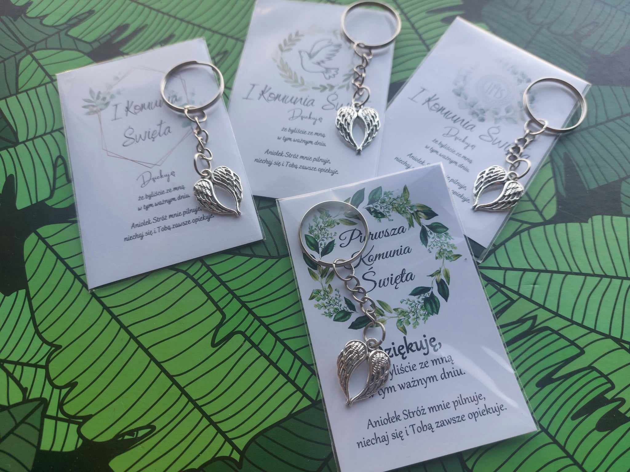 POLISH VERSION Thank you gift for guests 1st Holy Communion – card & stainless steel angel’s wings keyring