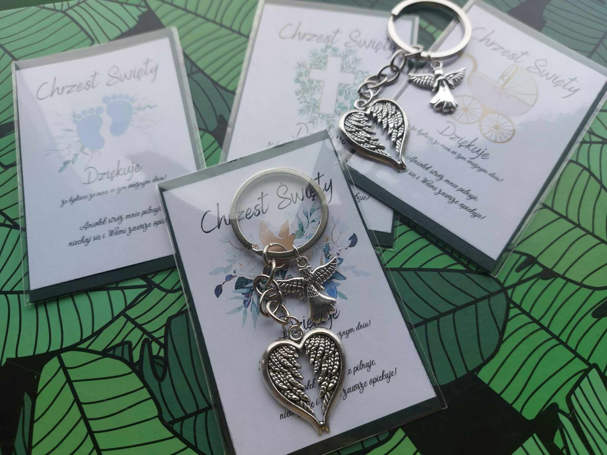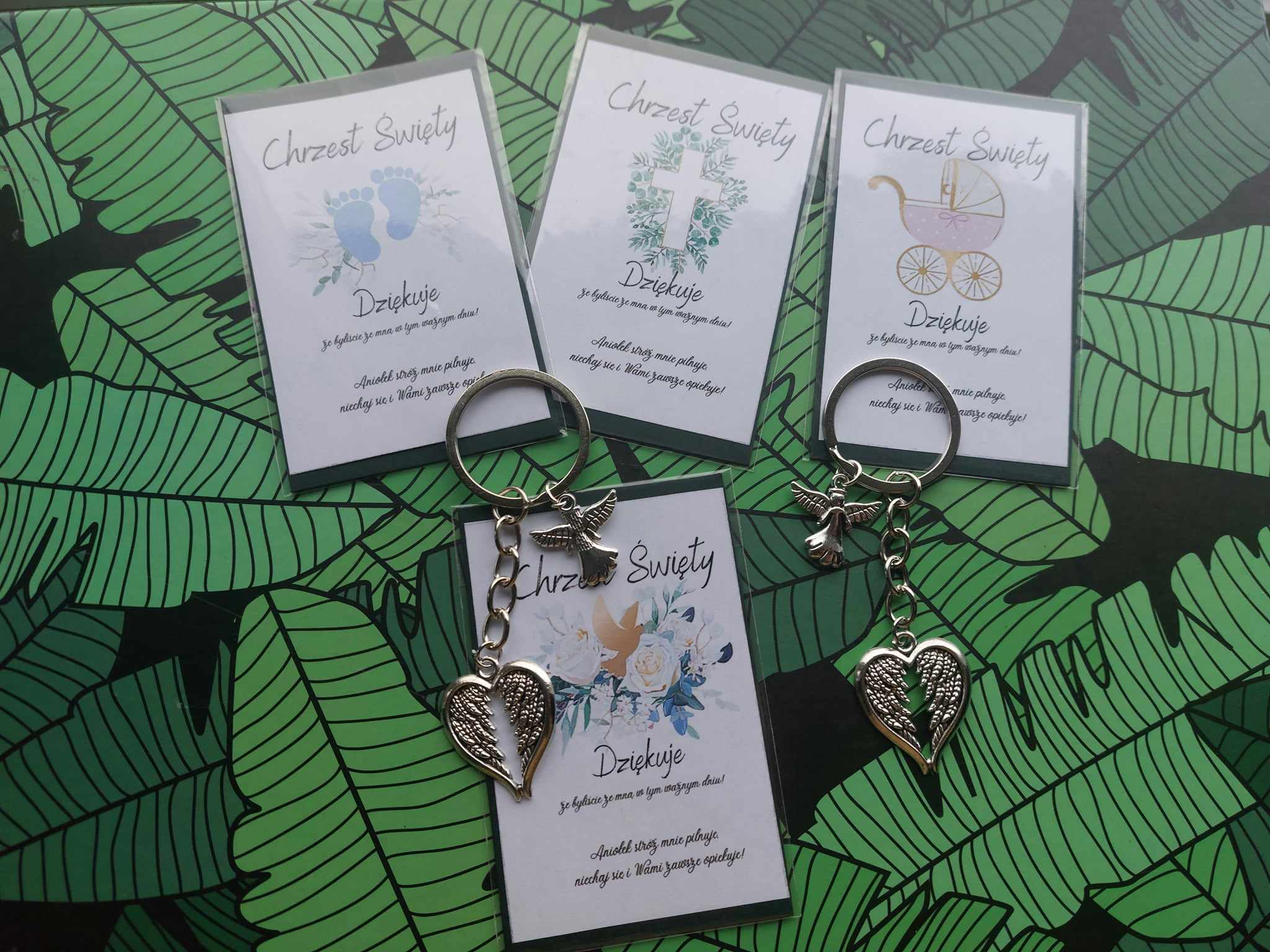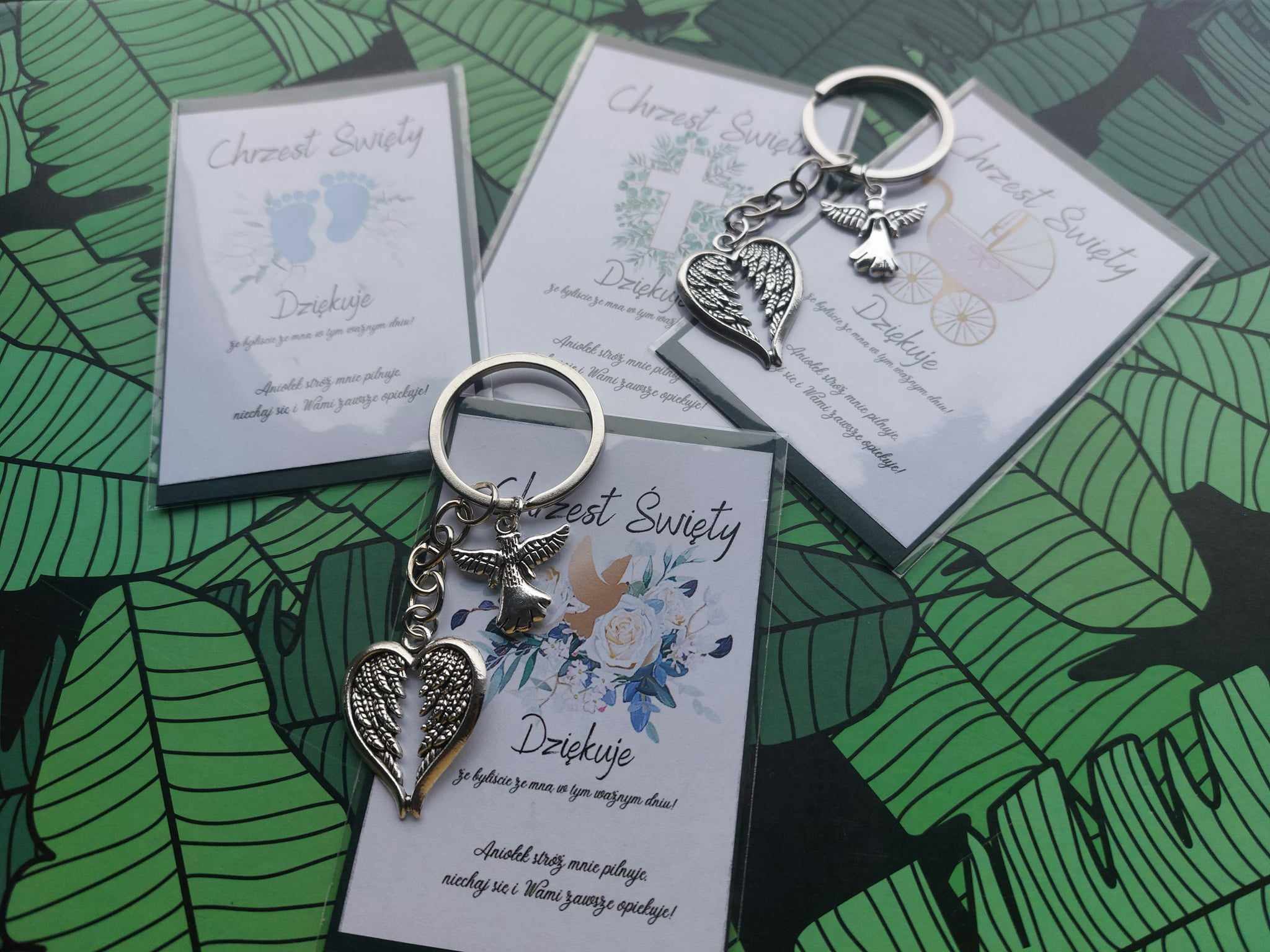 POLISH VERSION Thank you gift for guests Baptism – card & stainless steel angel keyring