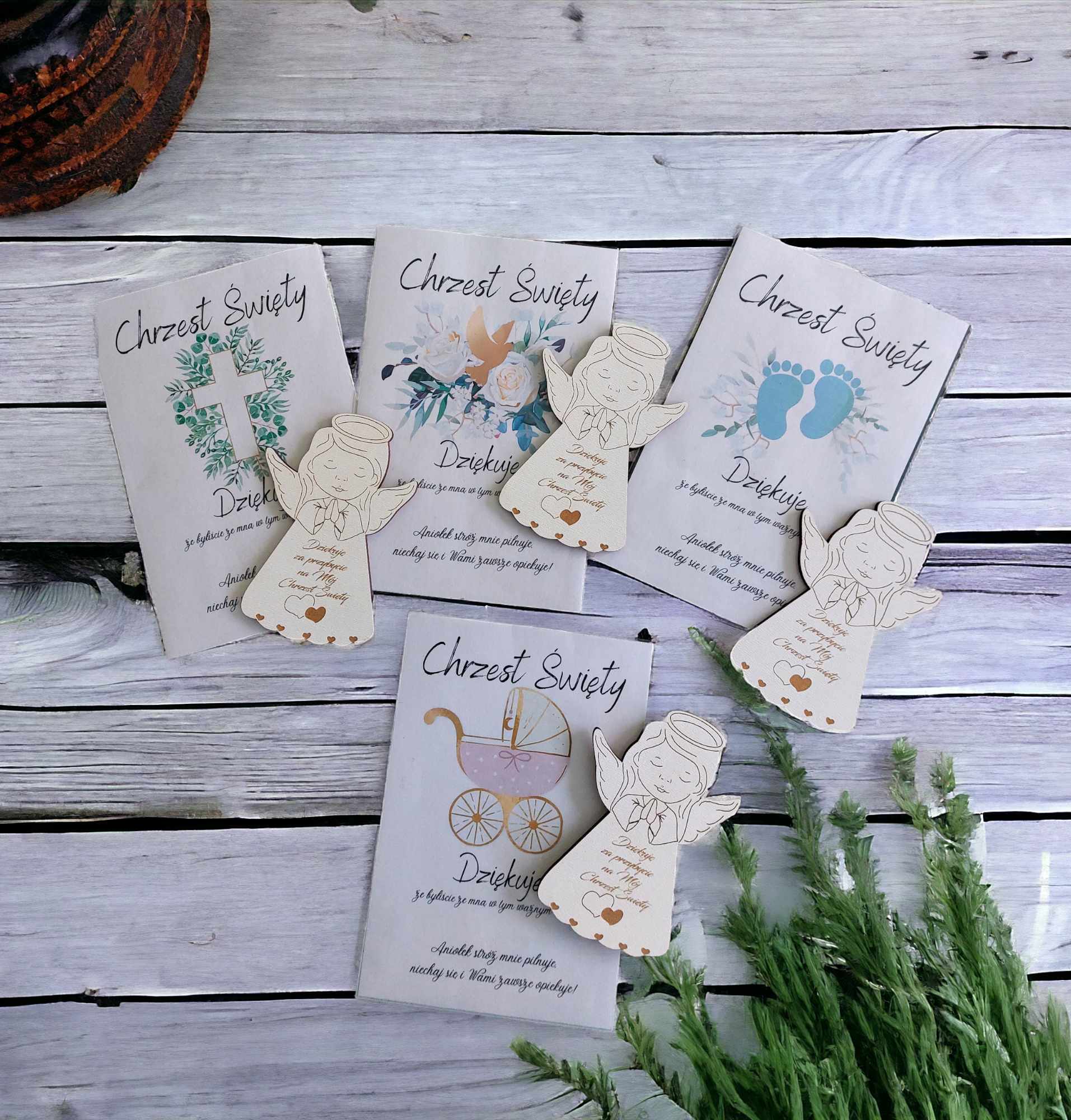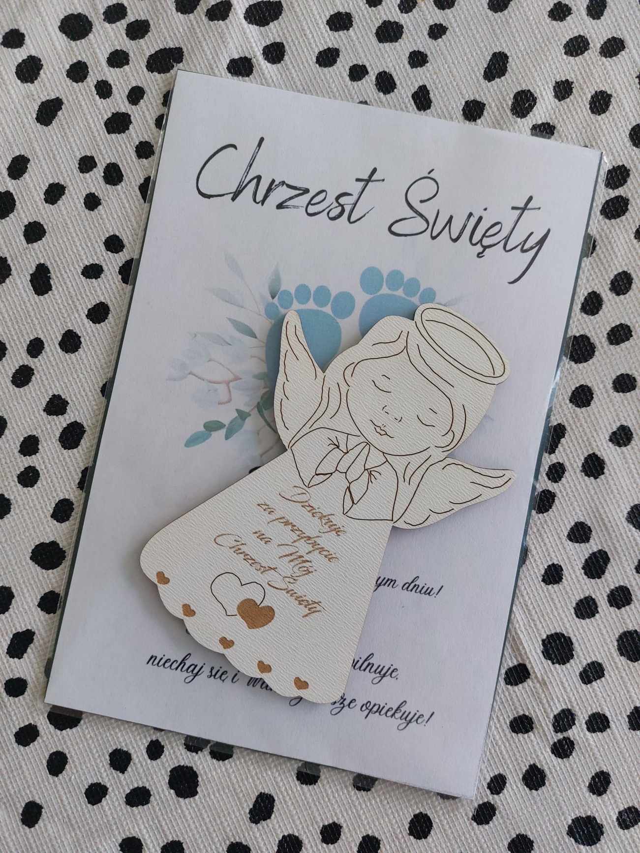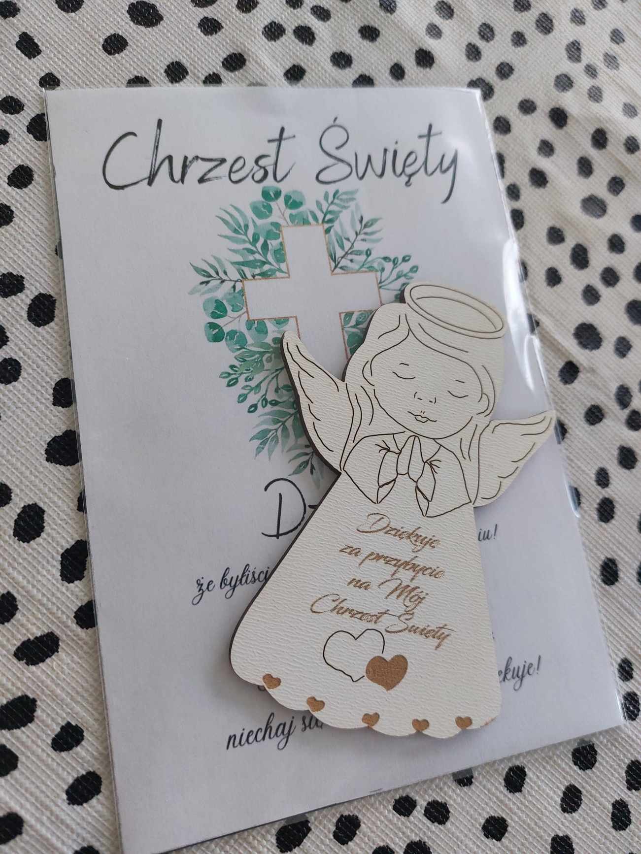 POLISH VERSION Thank you gift for guests Baptism – card & wooden angel large magnet