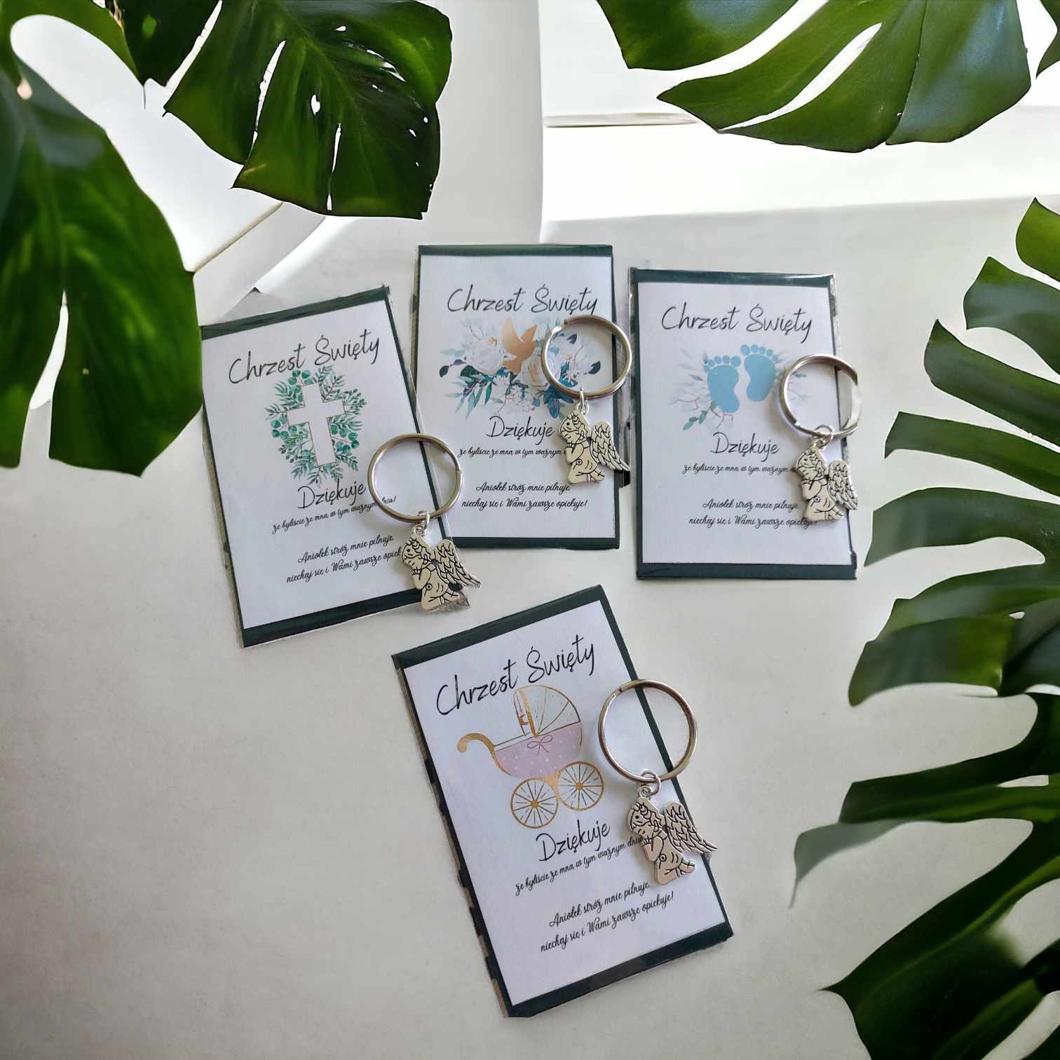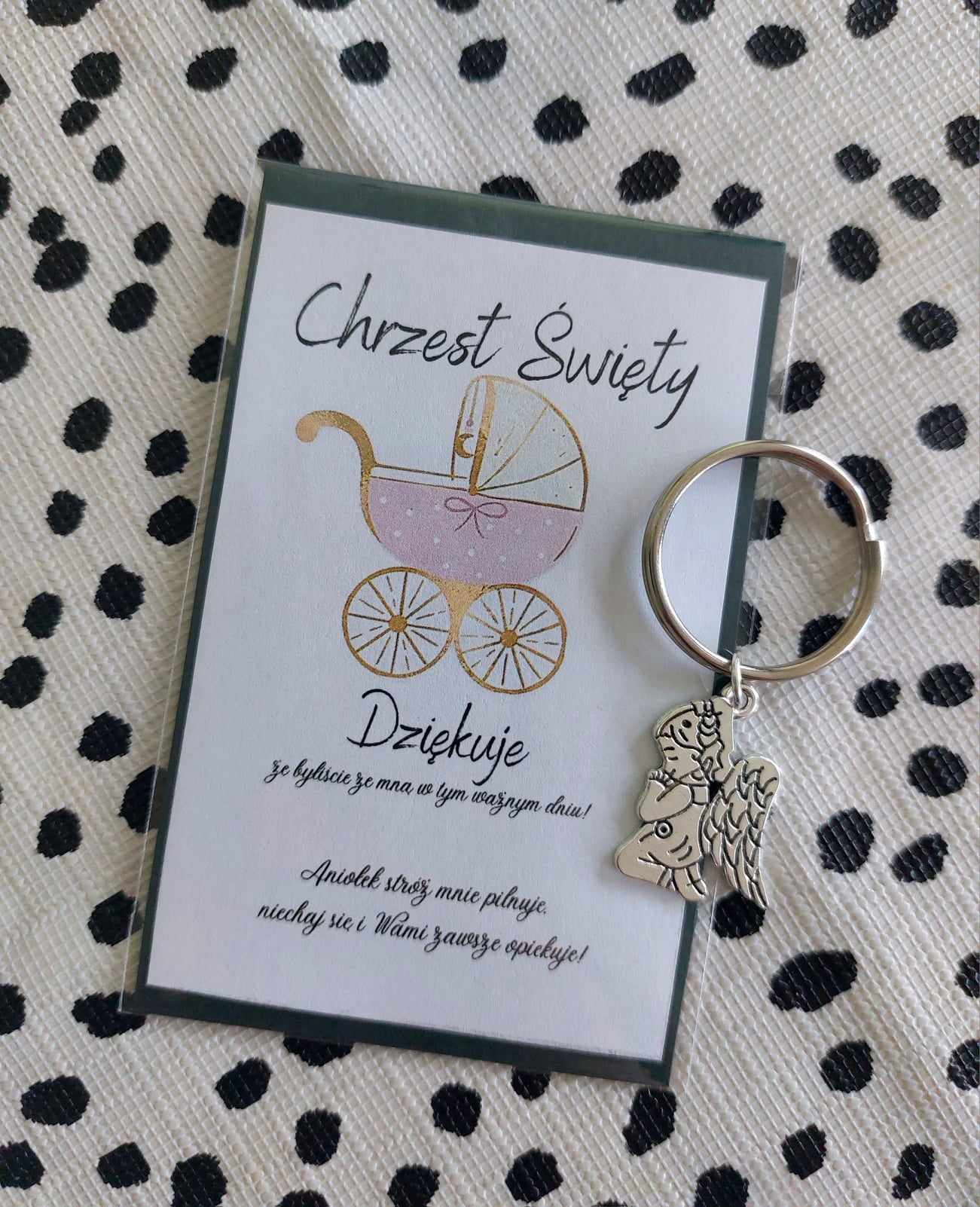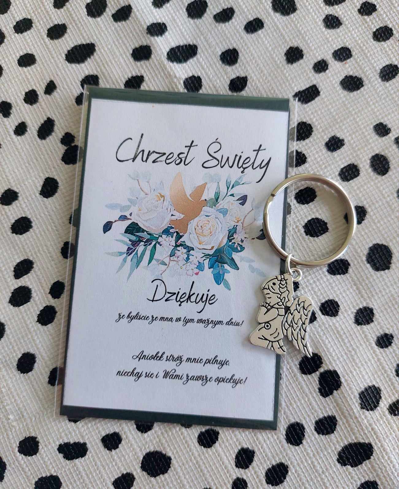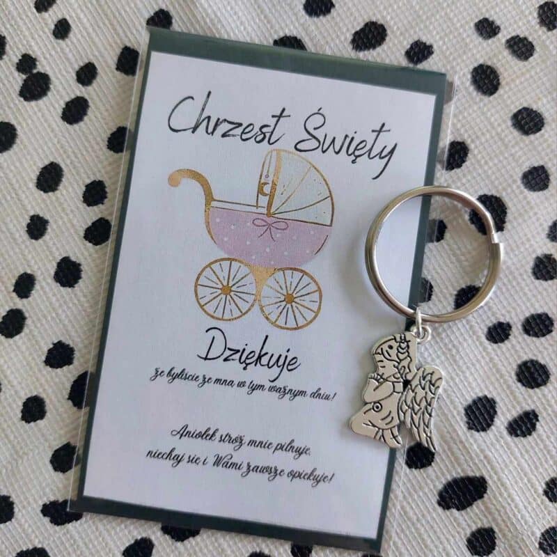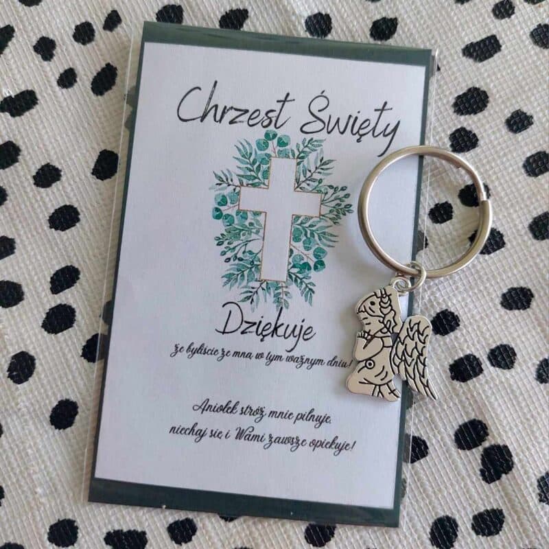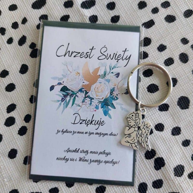 POLISH VERSION Thank you gift for guests Baptism Christening – card & angel keyring