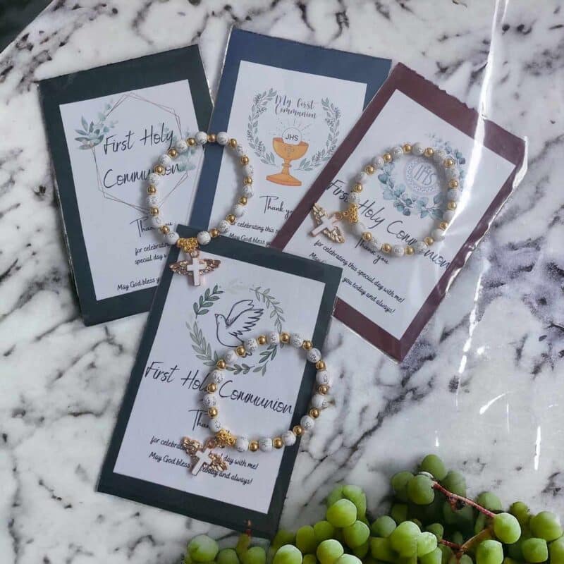 🌿Carefully made using ecological paper card with message (9x6cm) – and goldish rosary
