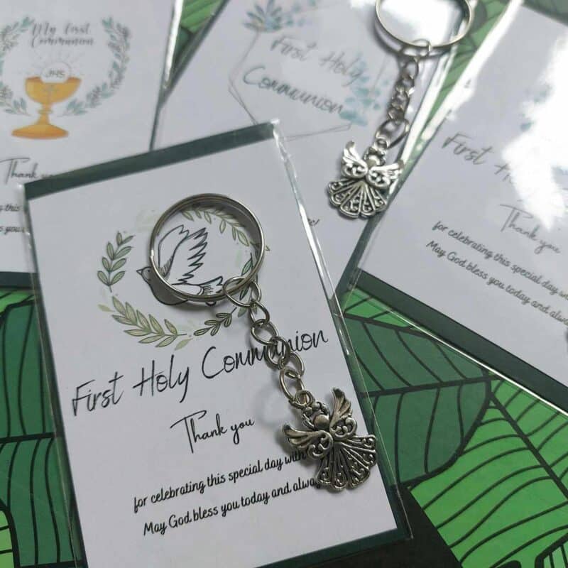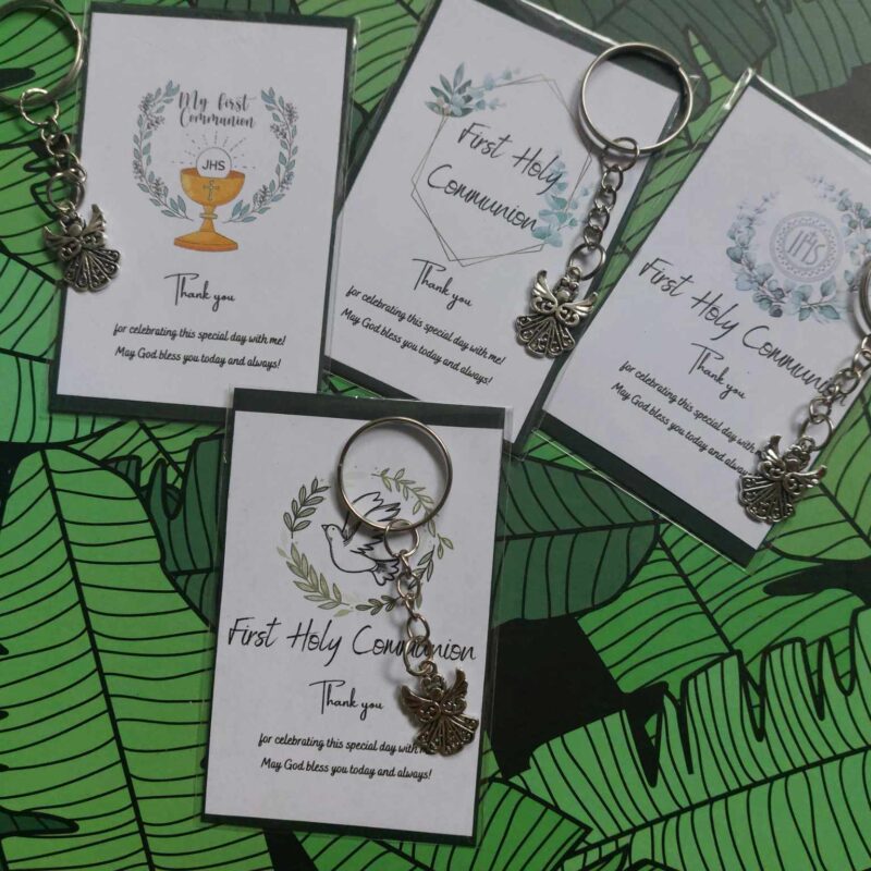 🌿Carefully made using ecological paper card with message (9x6cm) – 4 different variants and stainless steel angel keyring 3x8cm
