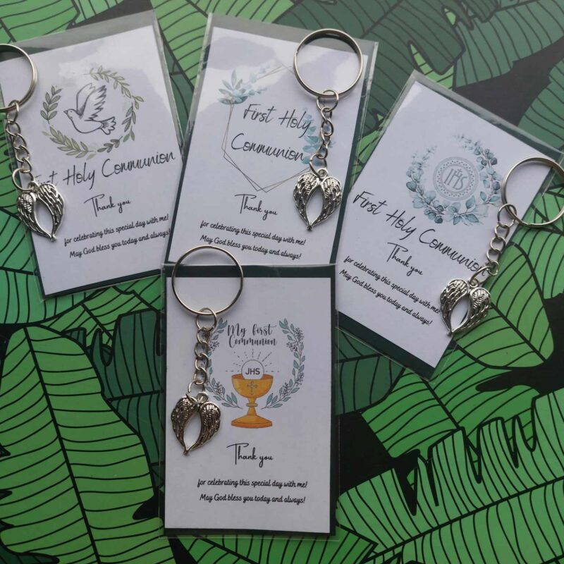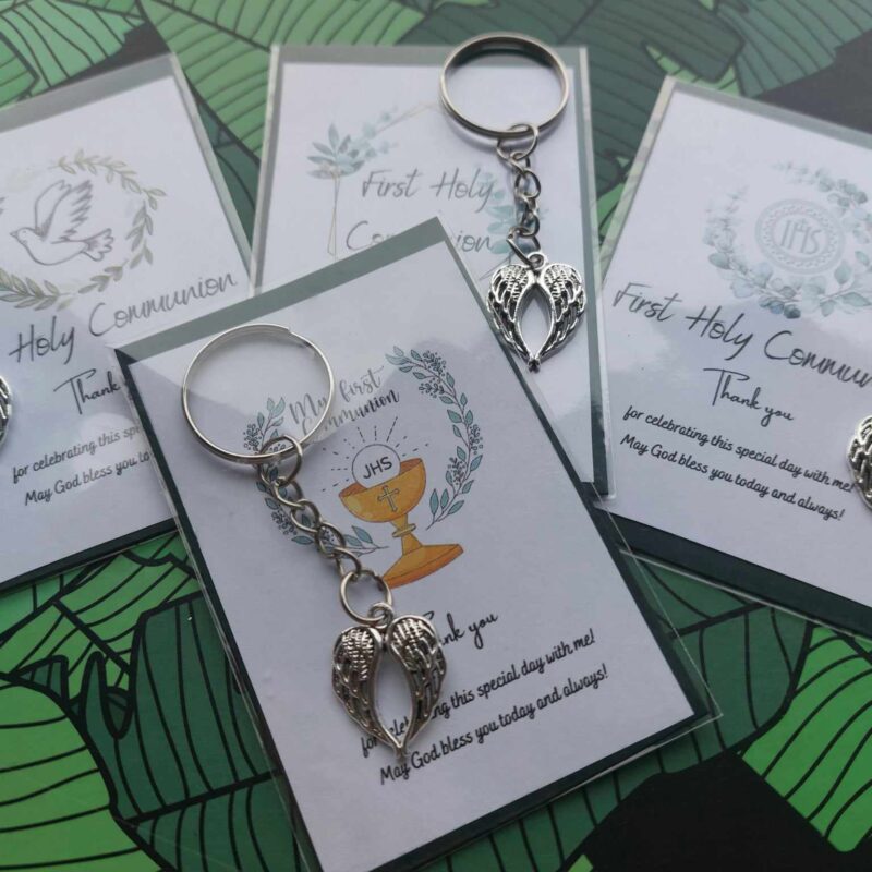 🌿Carefully made using ecological paper card with message (9x6cm) – 4 different variants and wooden, stainless steel angel’s wings keyring ( 8x2cm)