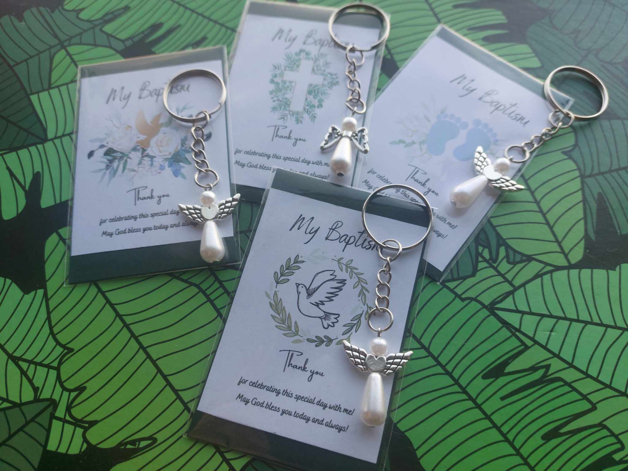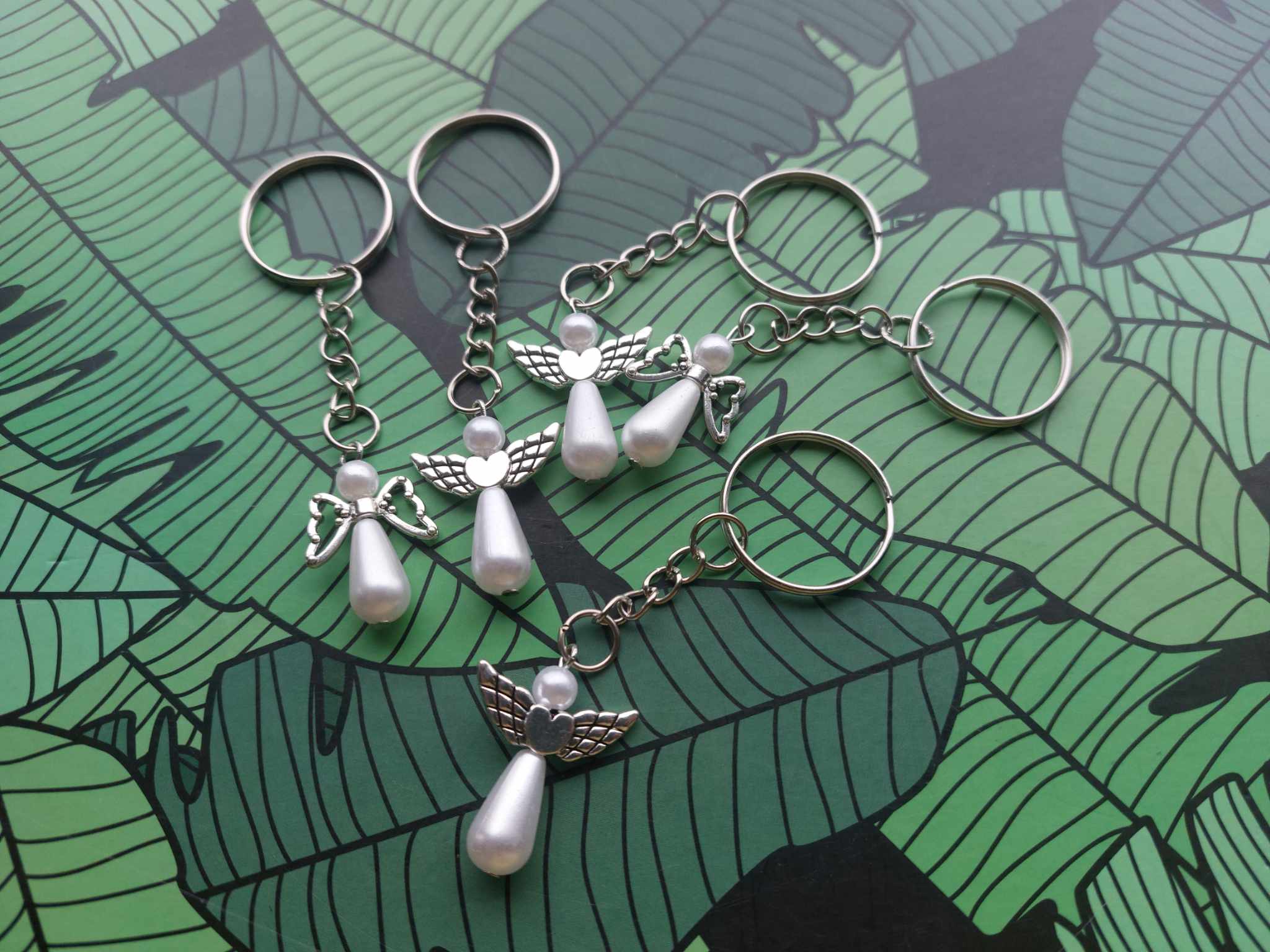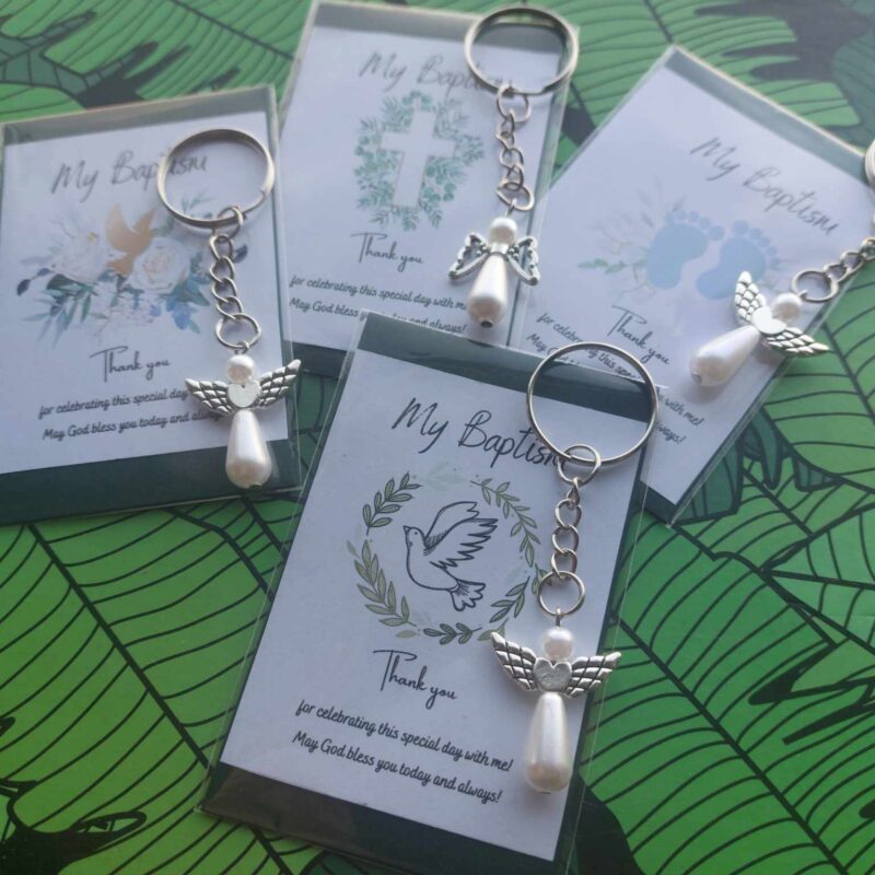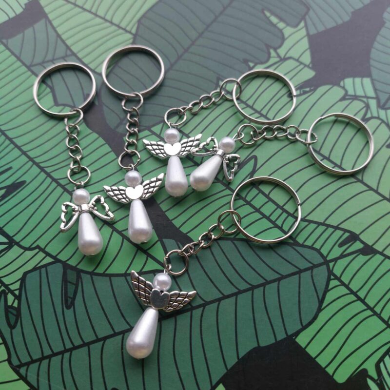 🌿Carefully made using ecological paper card with message (9x6cm) – 4 different variants and stainless steel angel with pearl keyring (8x3cm)