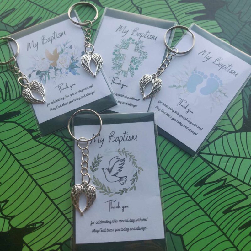 Thank you gift for guests Baptism – card & stainless steel angel’s wings keyring